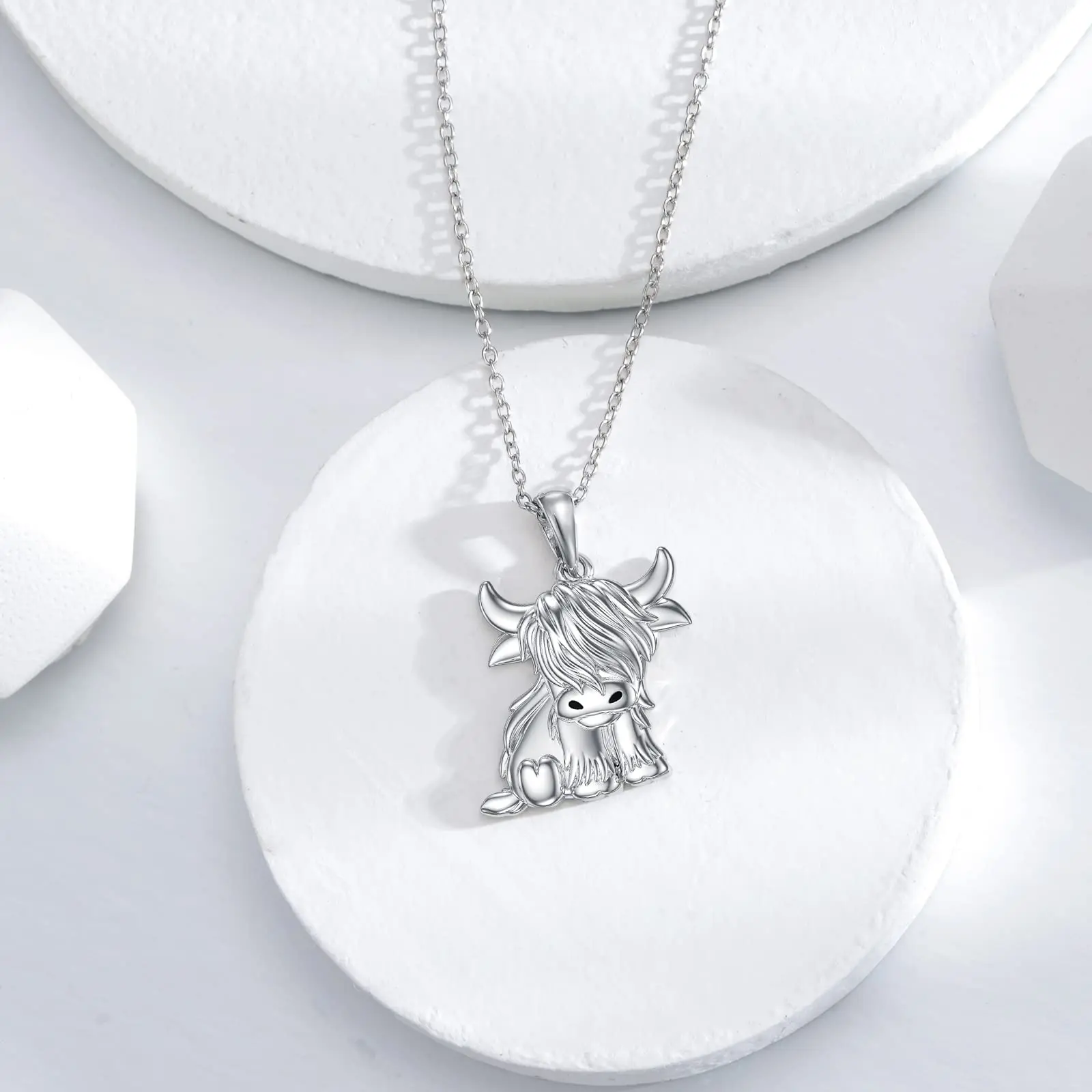Wholesale Custom 925 Sterling Silver animal Scottish highland cow necklace Jewelry
