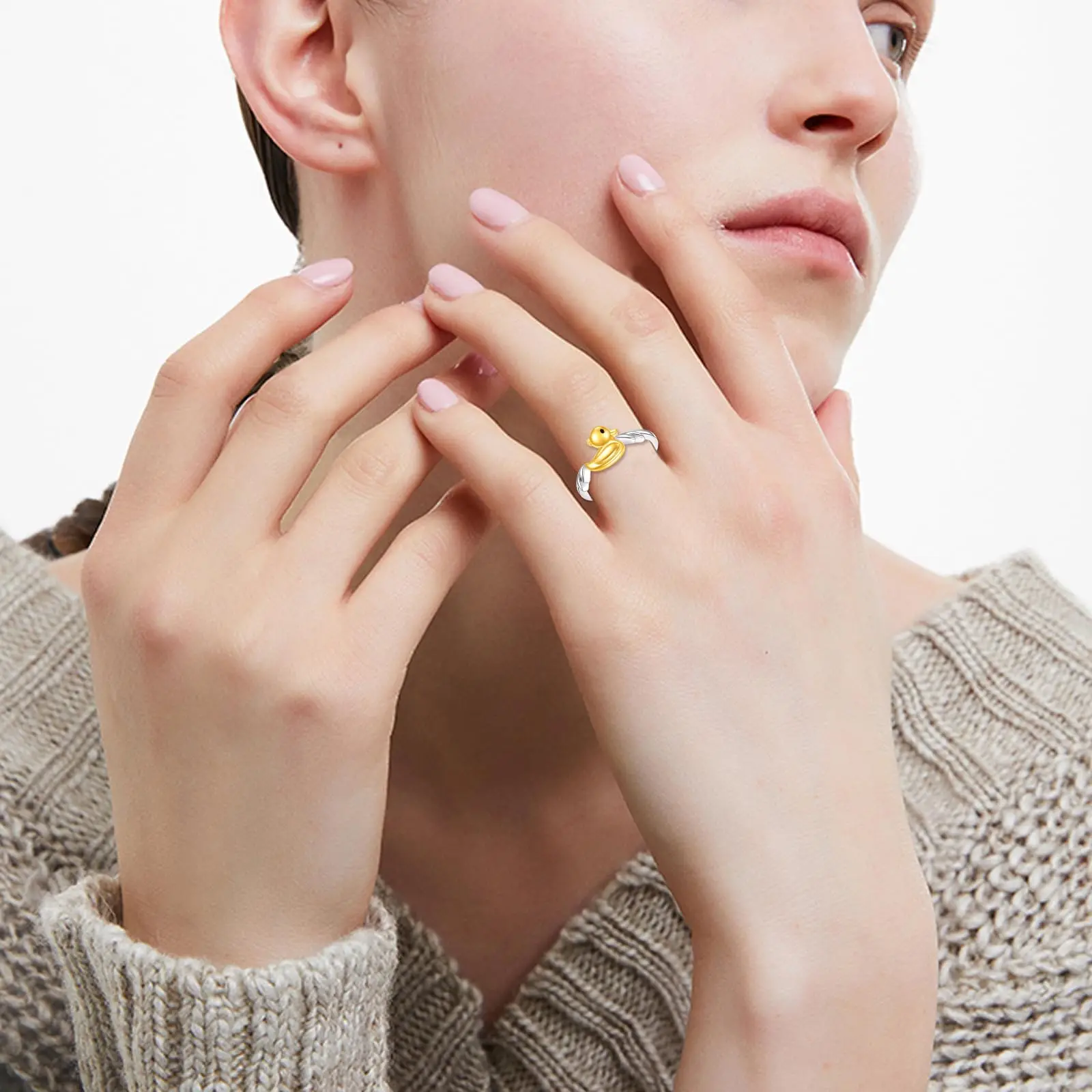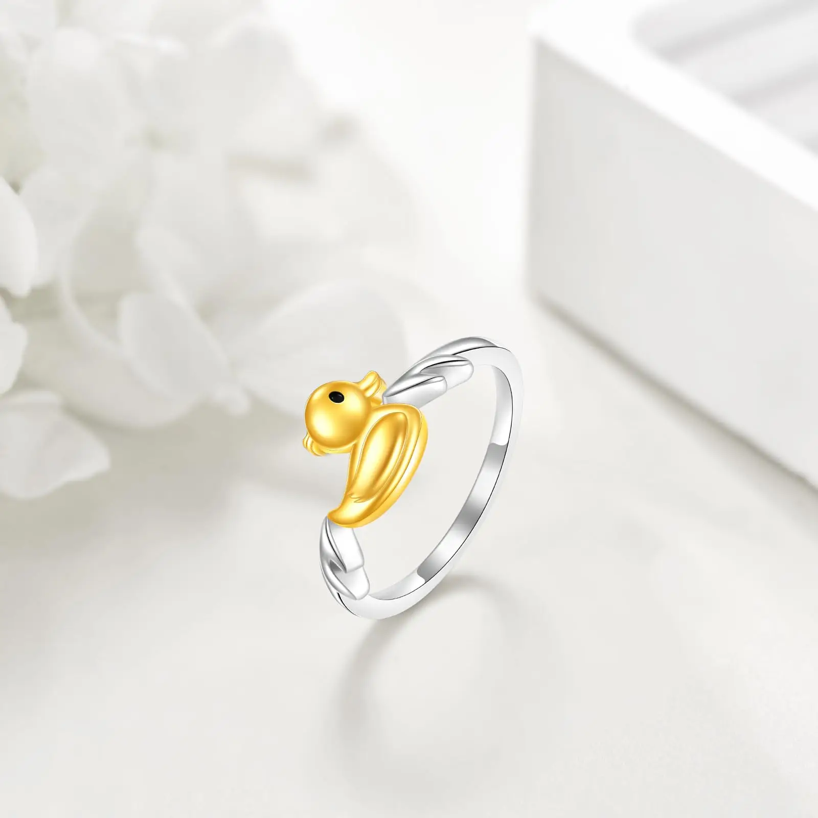 YFN 925 Sterling Silver cute farm animal duck ring for women girls