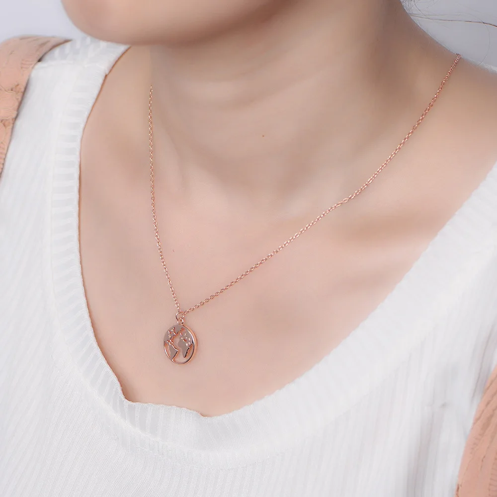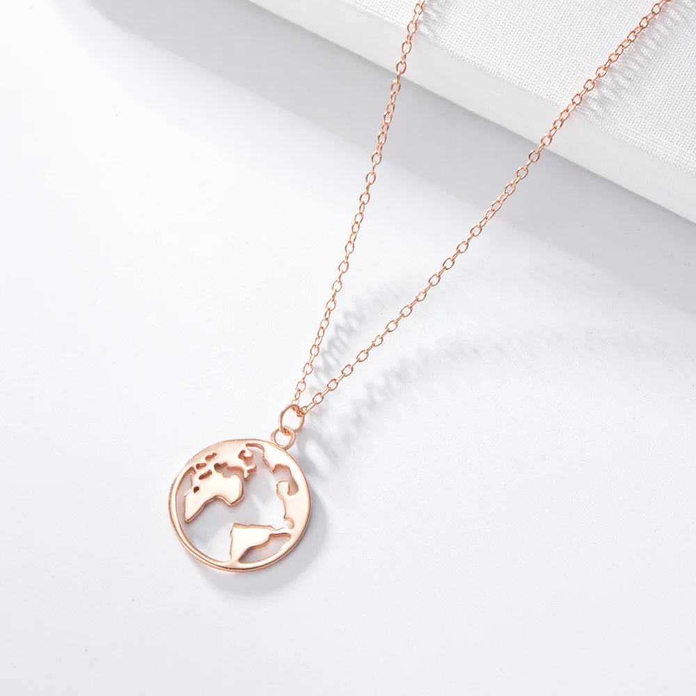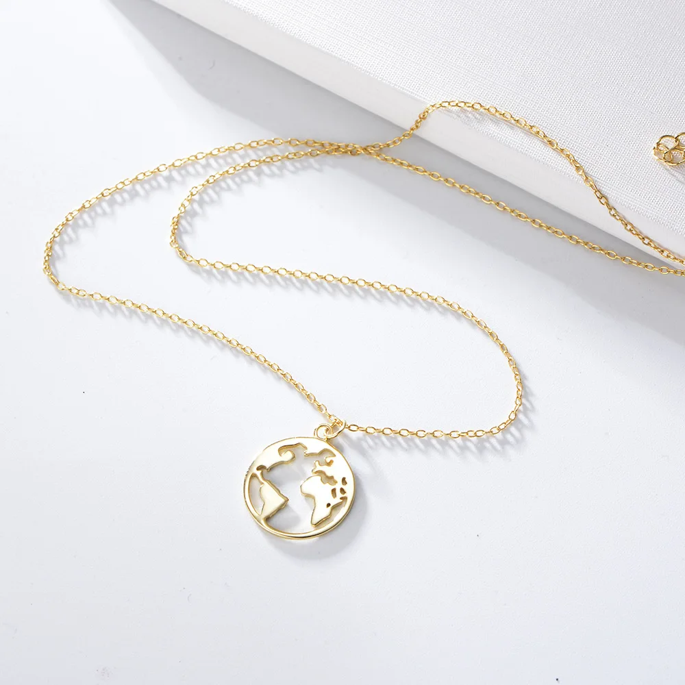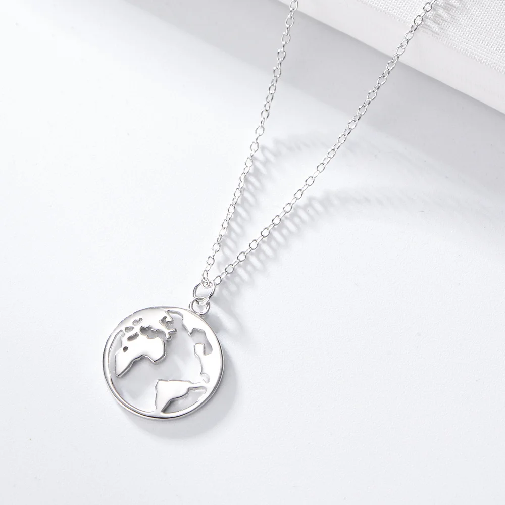 Newest Circle Minimalist 925 Sterling Silver Jewelry The Map Pendant Necklace