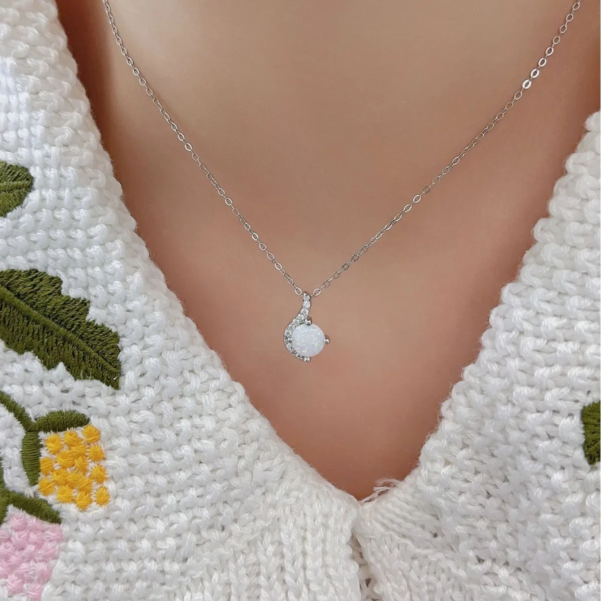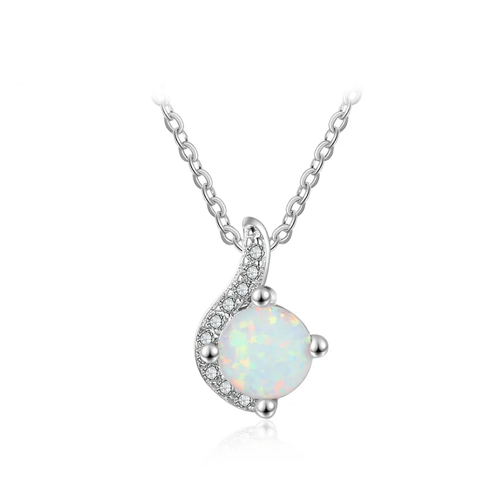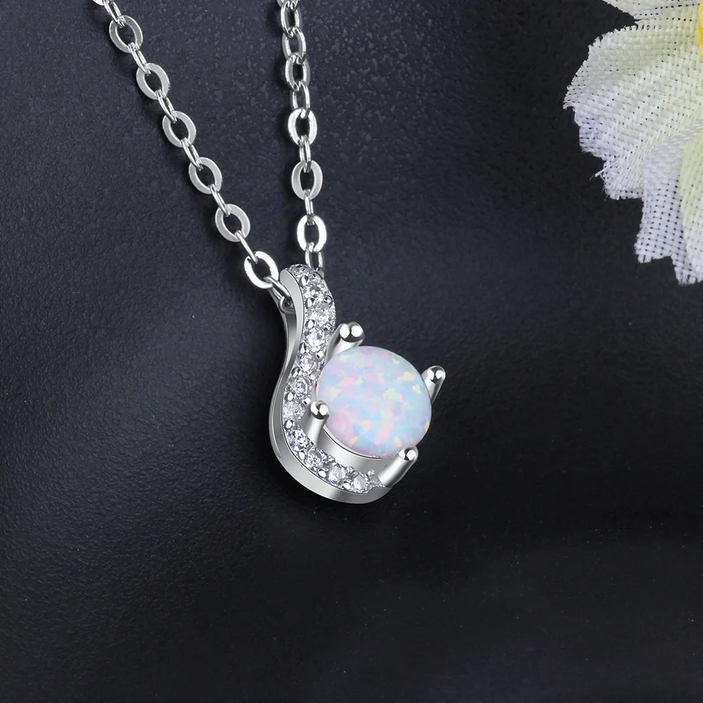 Opal Pendant with Cubic Zircon 925 Sterling Silver Jewelry Created Necklaces Women Chain Necklaces