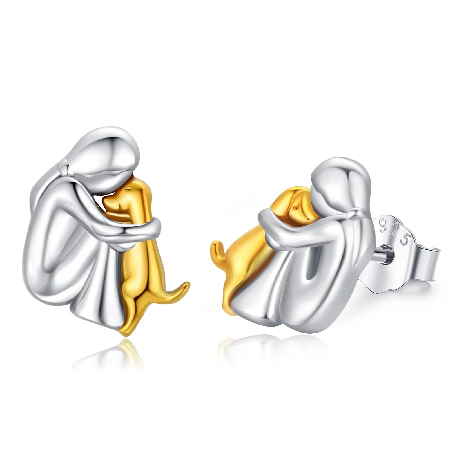 Factory Sale Jewelry 925 Sterling Silver Funny Girl and Cute Animal Dog Stud Earrings