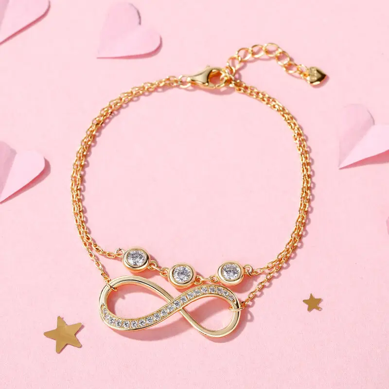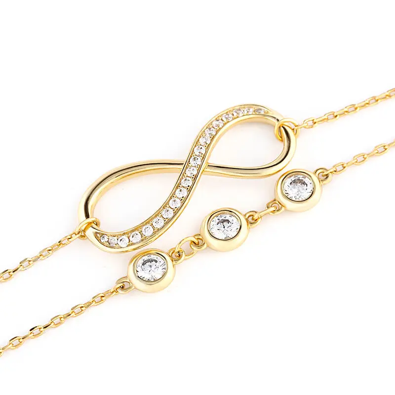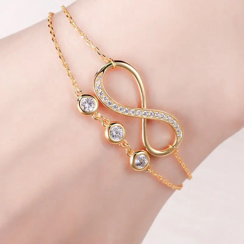 Wholesale 925 Sterling Silver Gold Plated Adjustable Birthstone Zircon Double Layer Infinity Bracelet