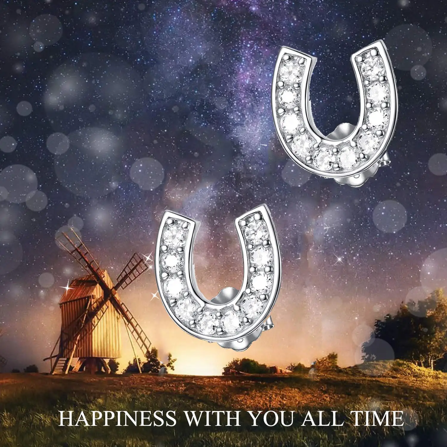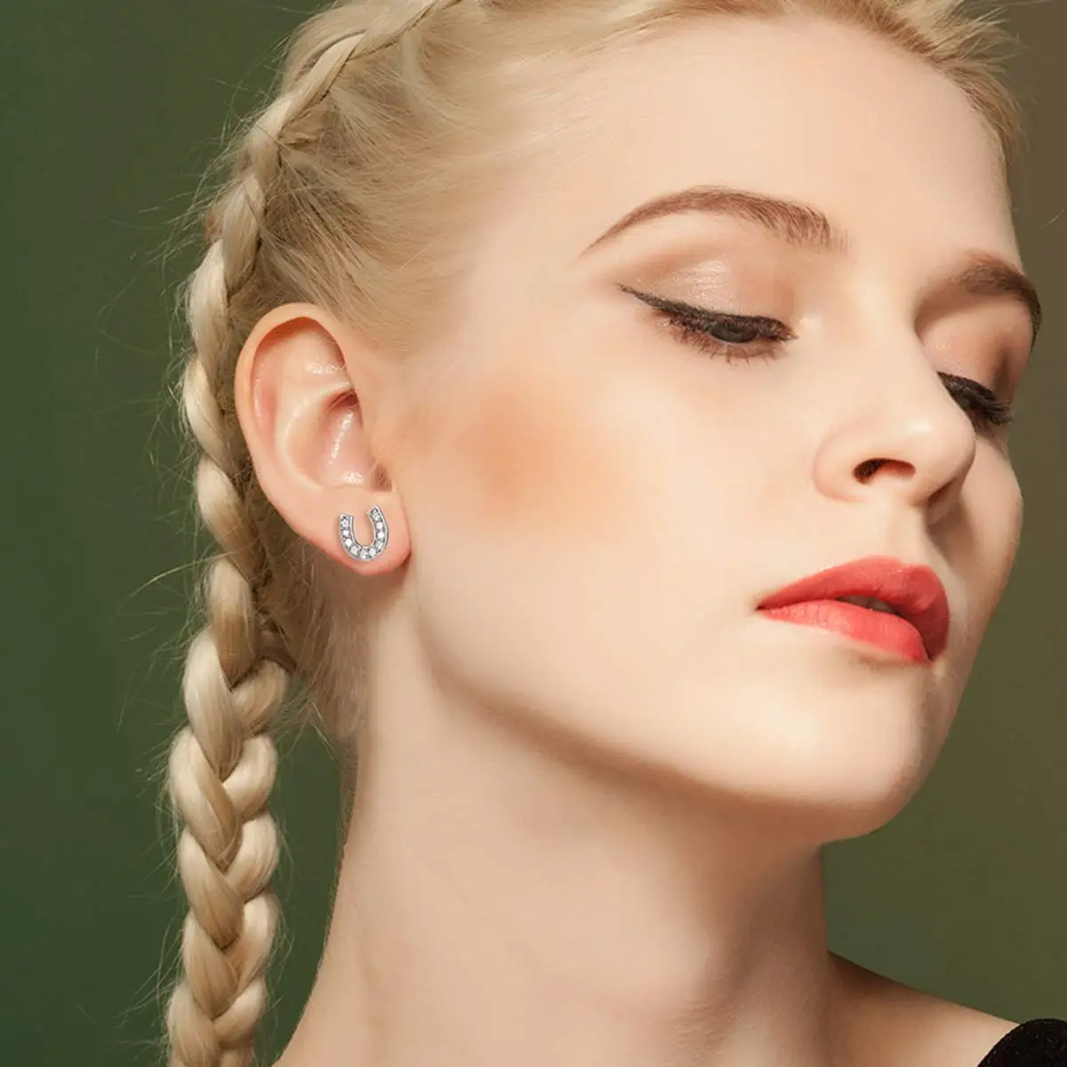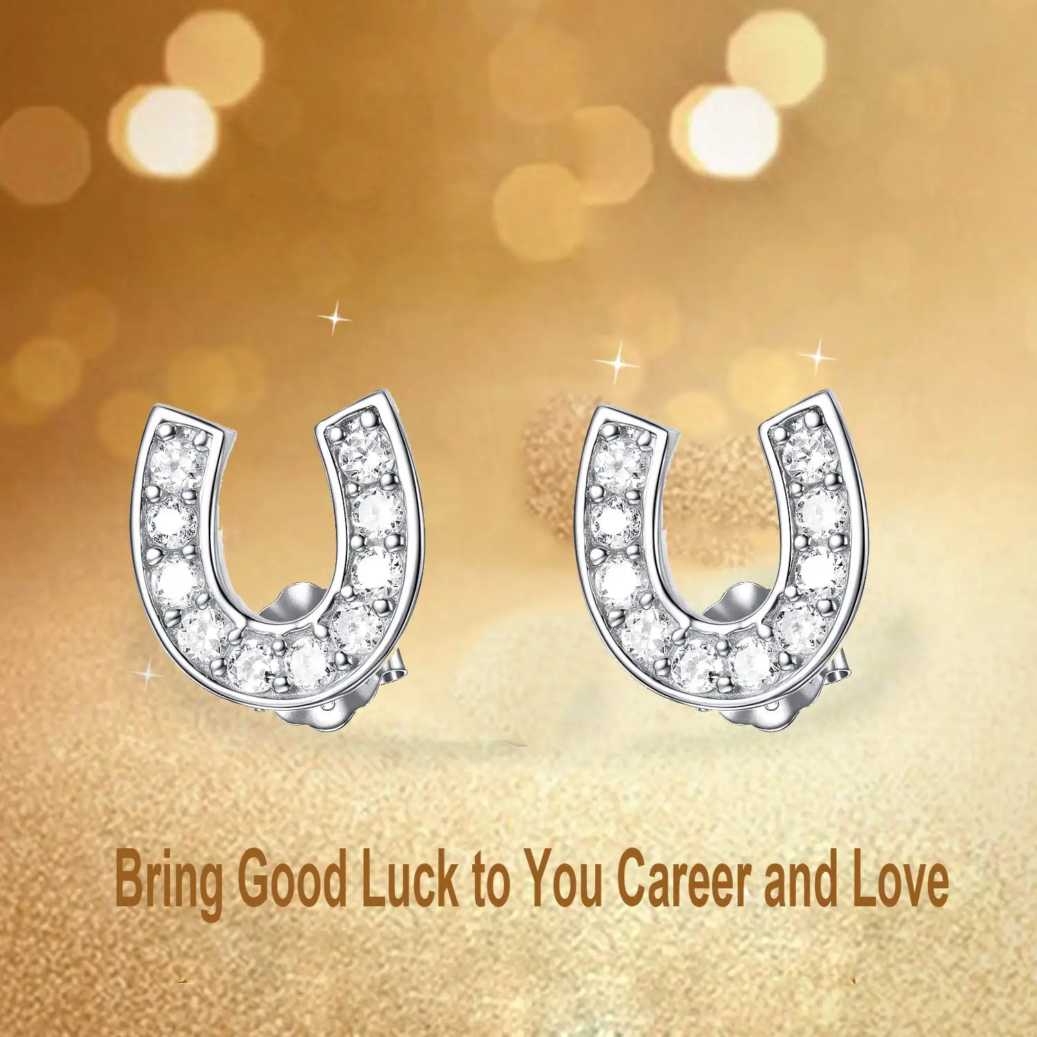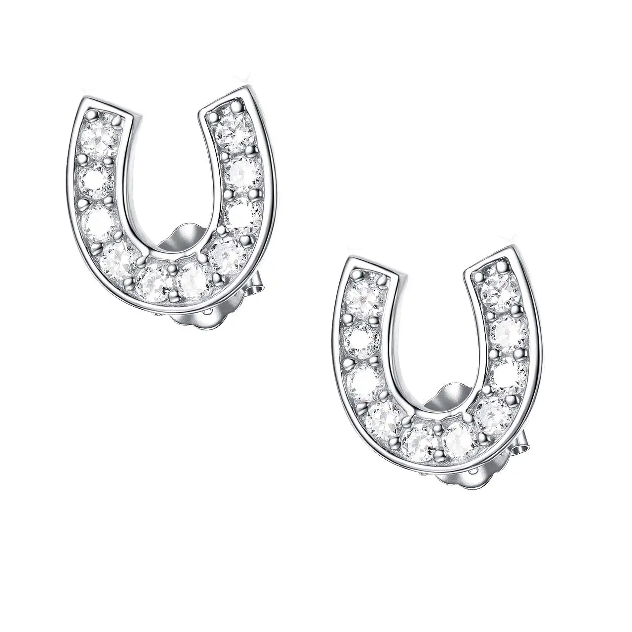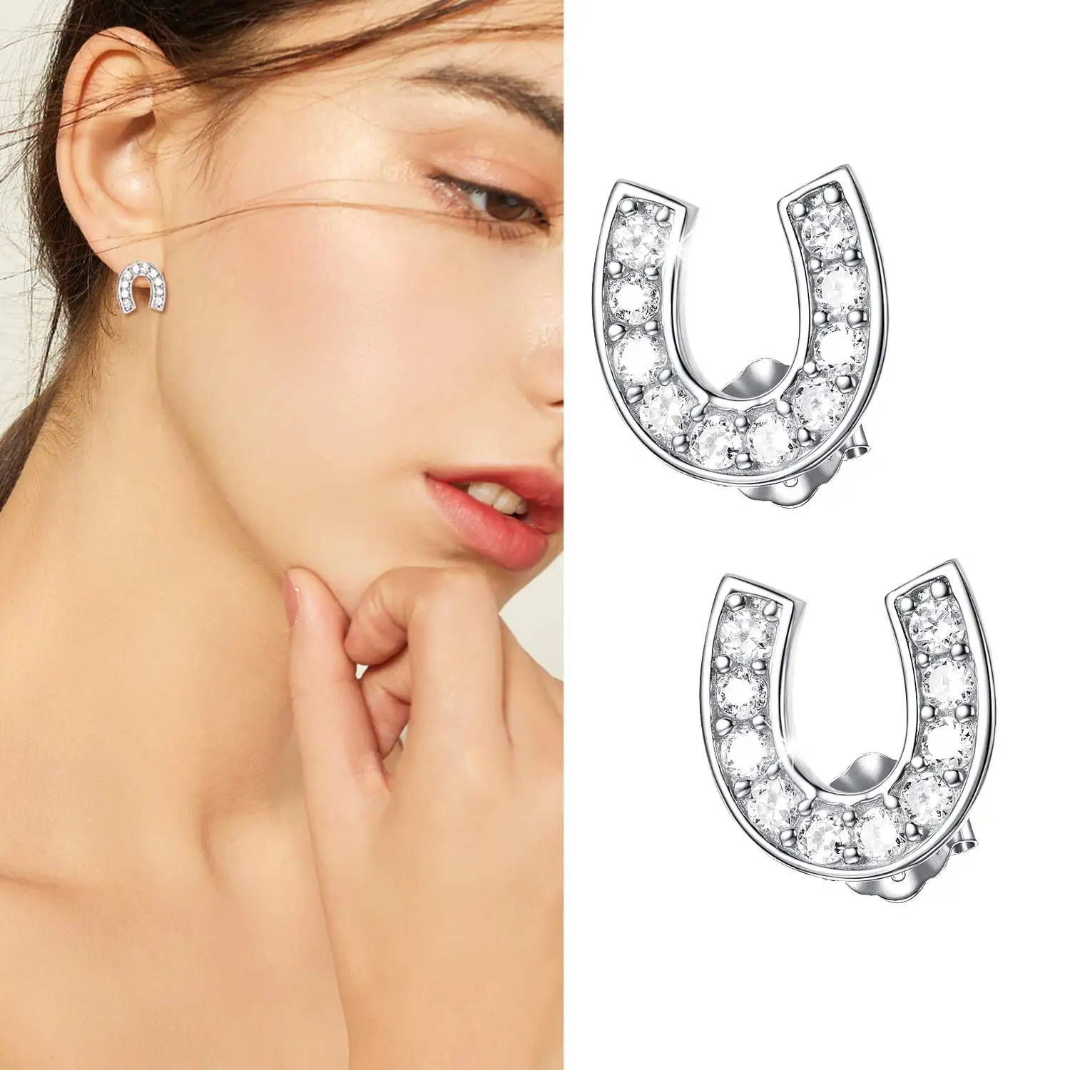 zircon horseshoe 925 Sterling Silver stud earrings for women Equestrian jewelry