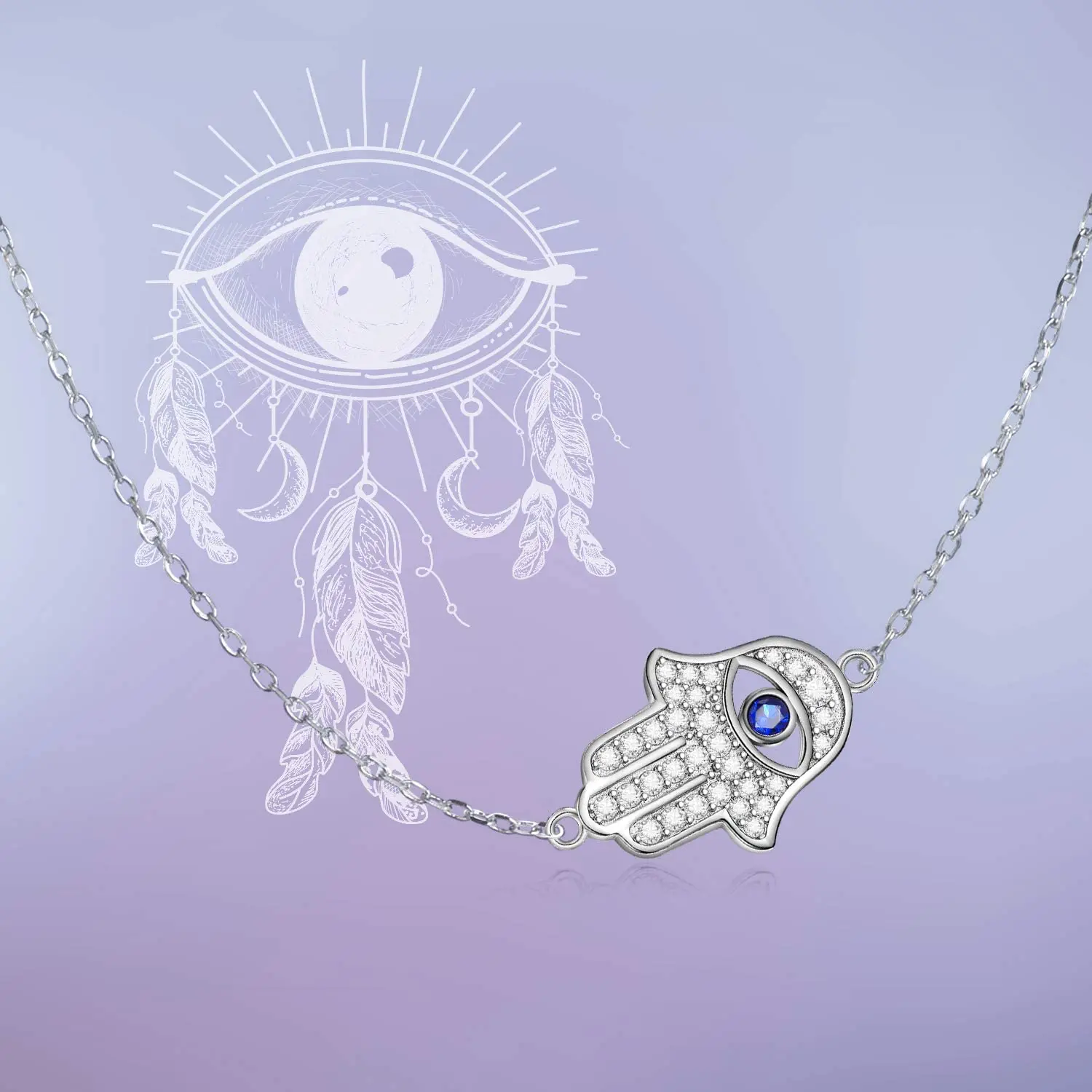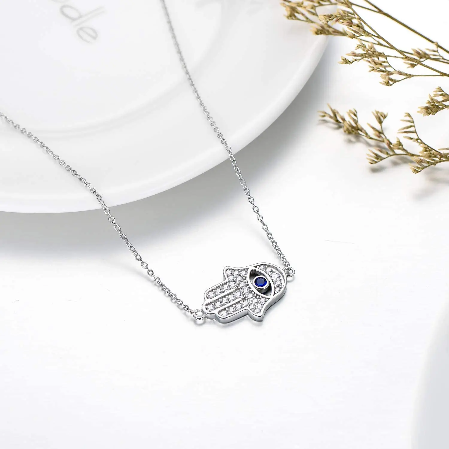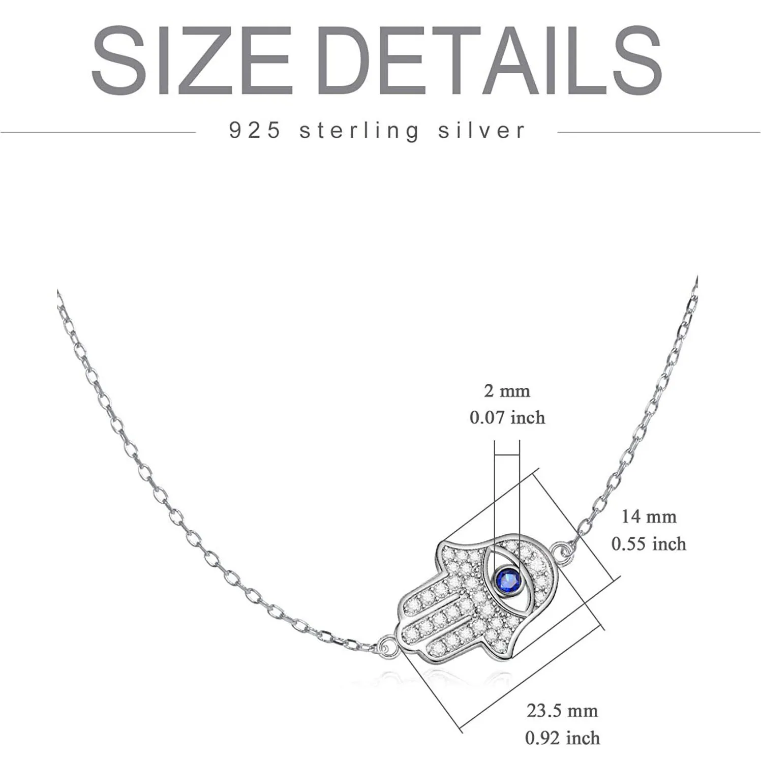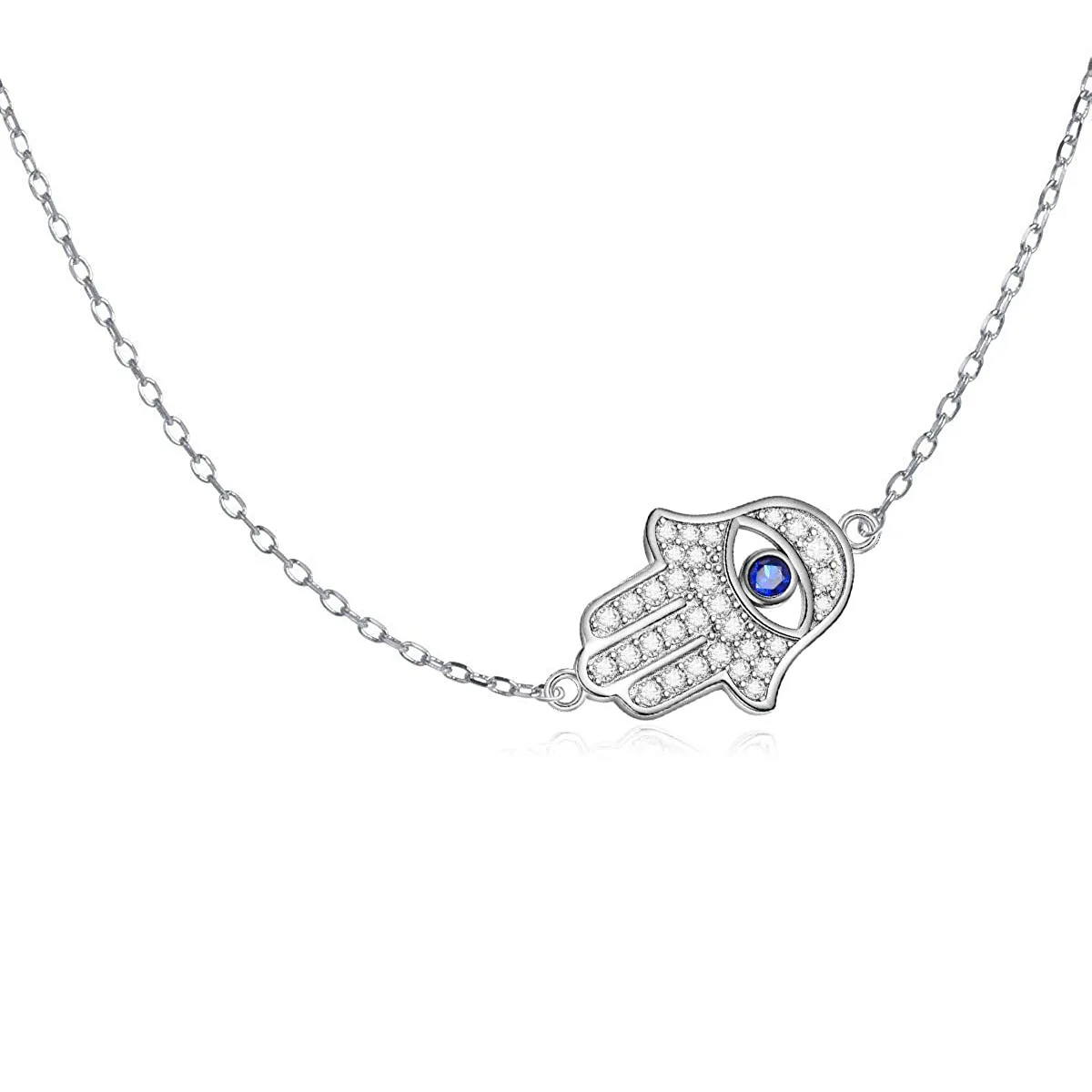 Fine Jewelry 925 Sterling Silver Fatima Eye Hamsa Hand Choker Necklace for Women