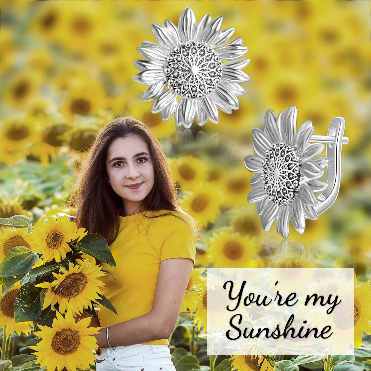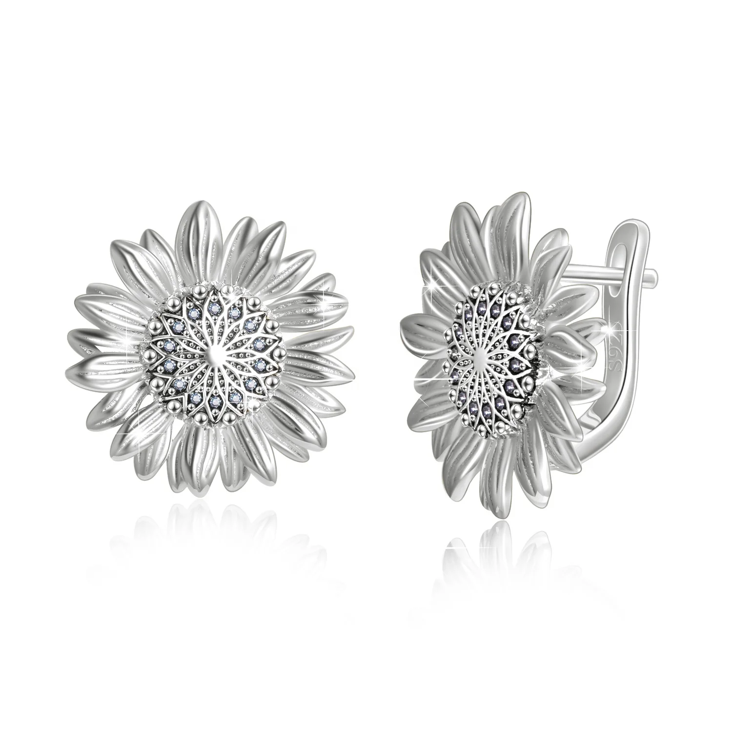 Birthday Gift Jewelry 925 Sterling Silver Sunflower Hoop Stud Earrings for Women