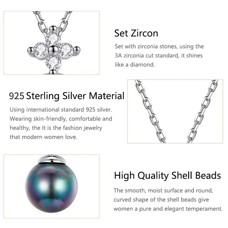 Material | 925 Silver + Zirconia + White Gold Plated + Shell Beads |