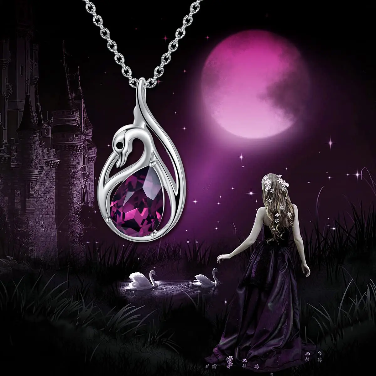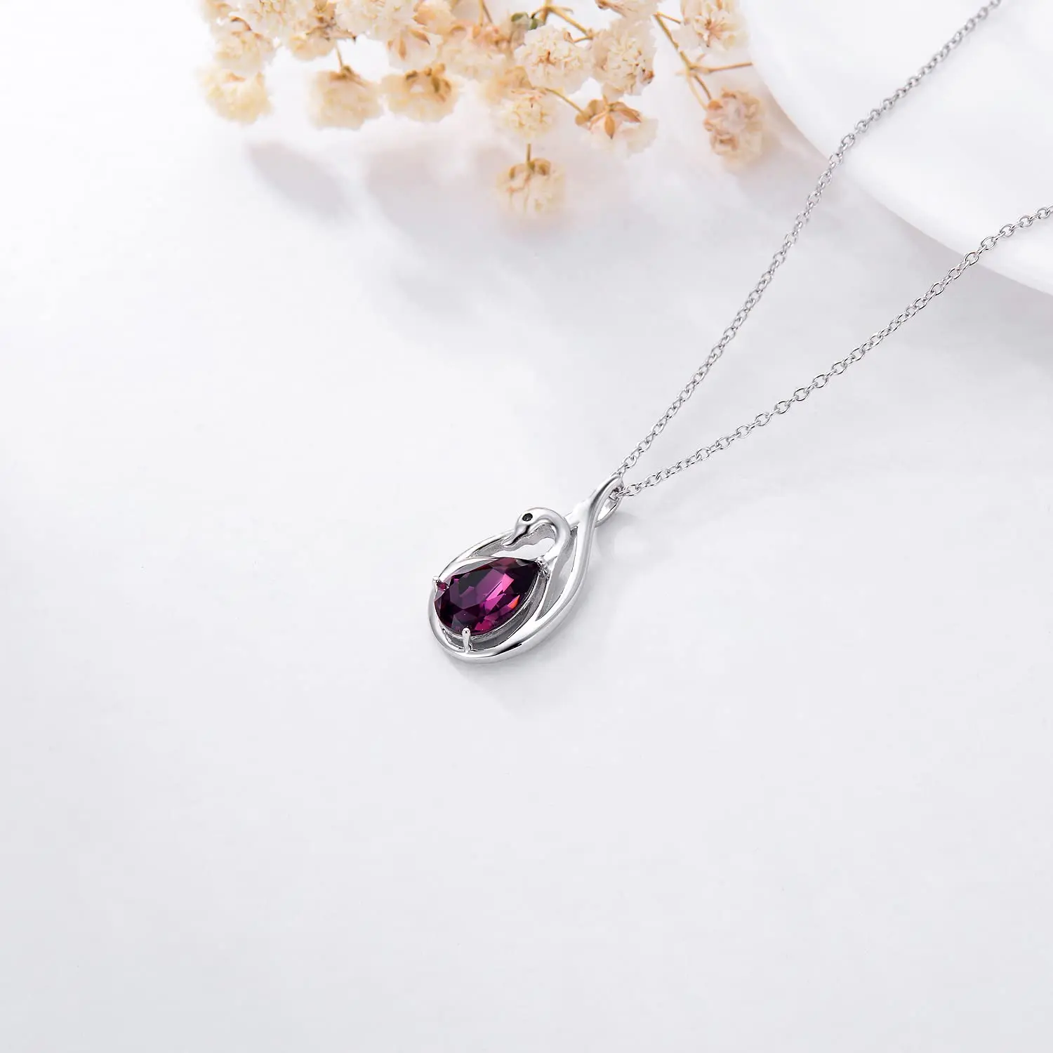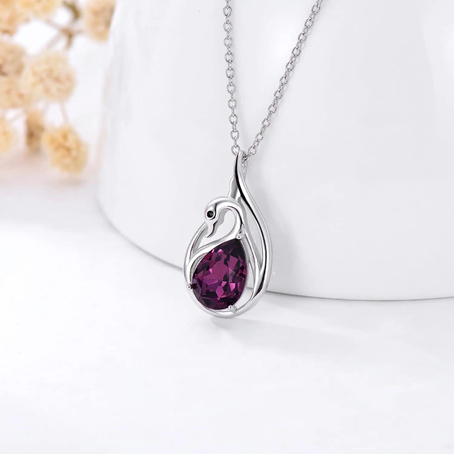 925 Sterling Silver rhodium plating cubric zircon beauty black swan pendant necklace