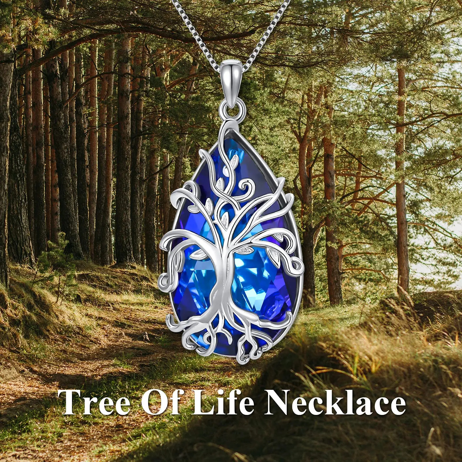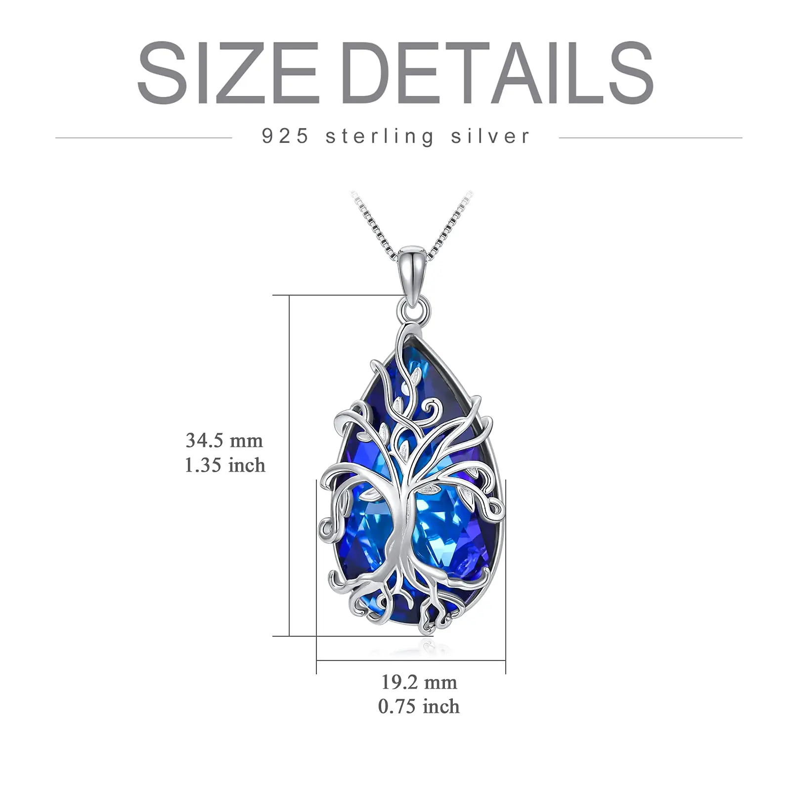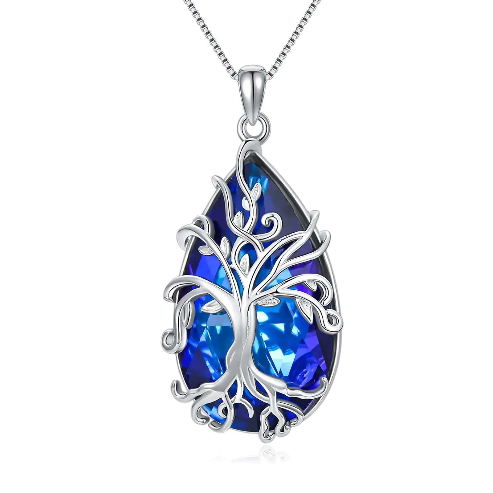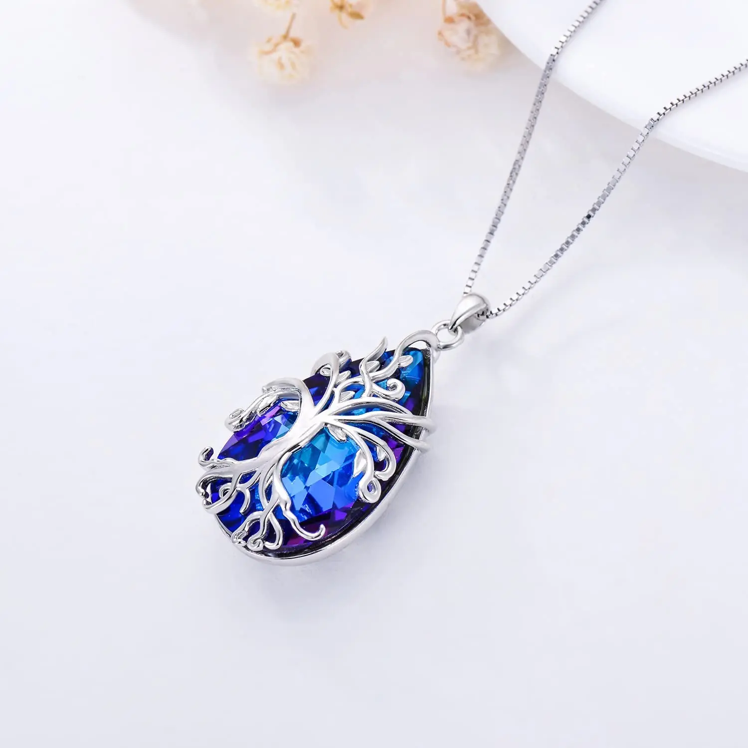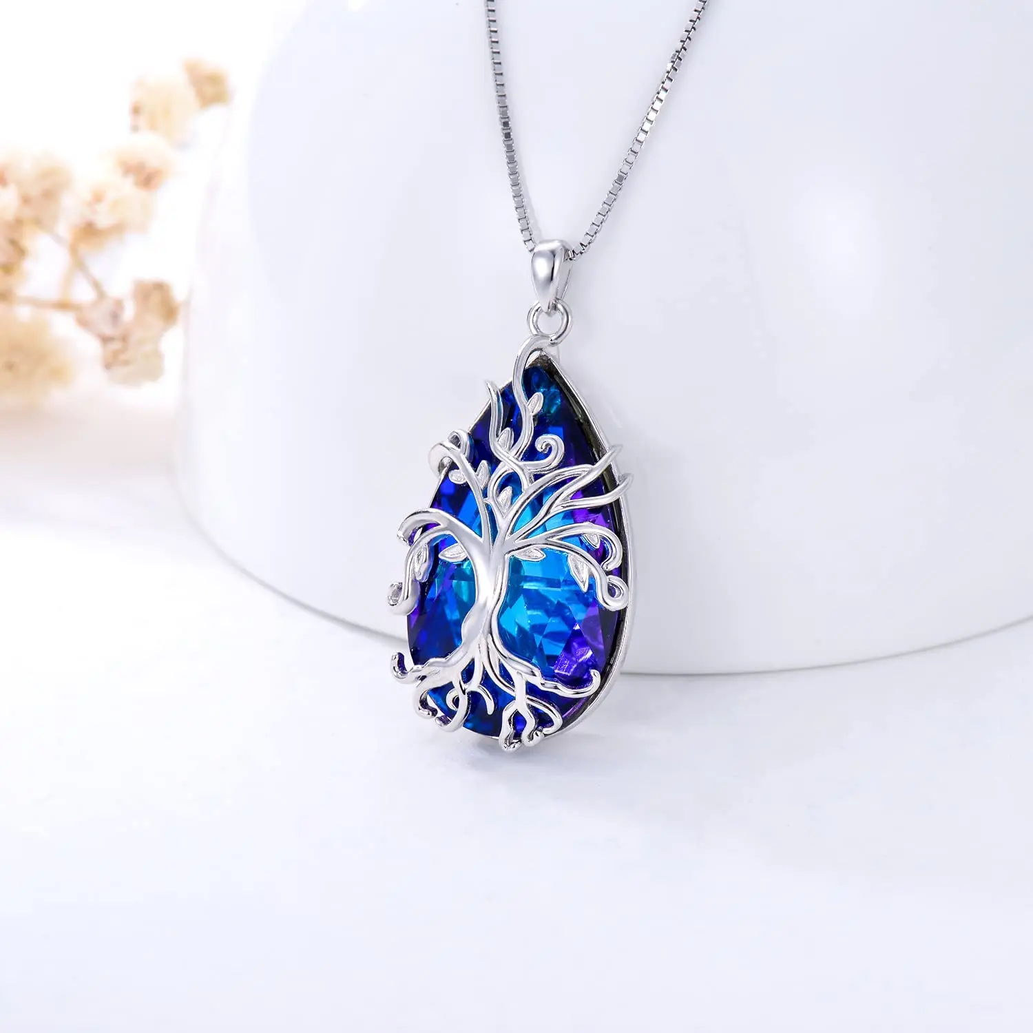 925 Sterling Silver Delicate Tree of Life blue crystal necklace for Mom Wife Girlfriend