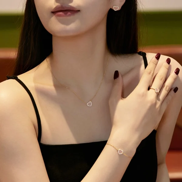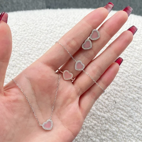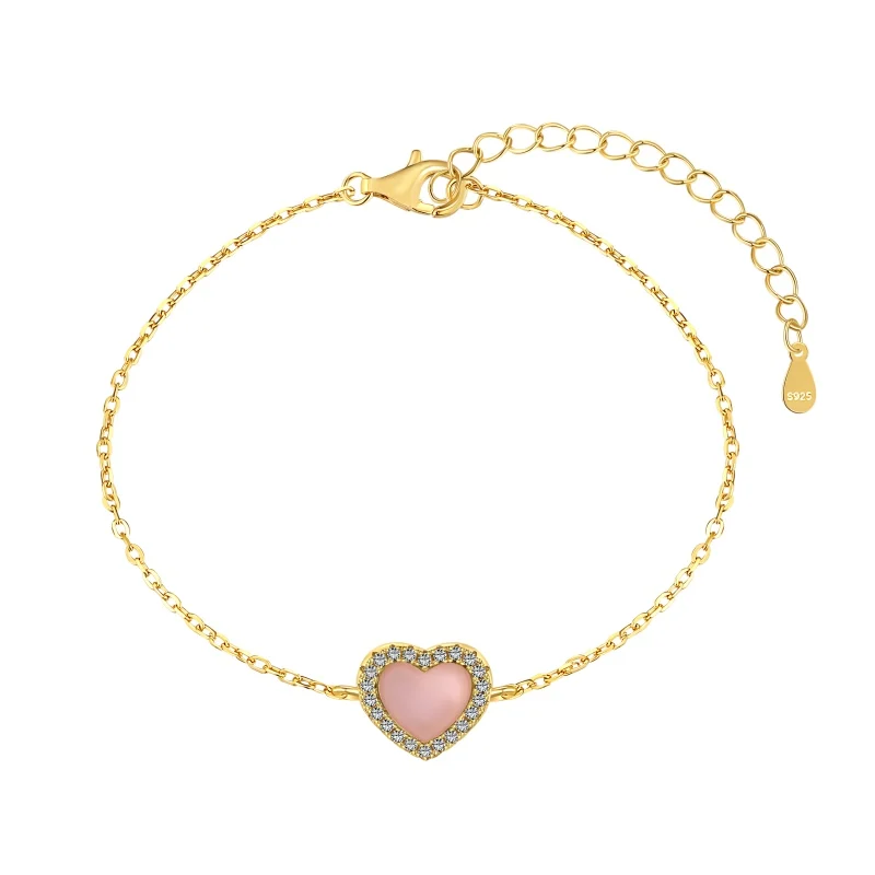 YFN Jewelry 925 Sterling Silver Gold Plated Pink Heart Stone Women Adjustable Bracelet