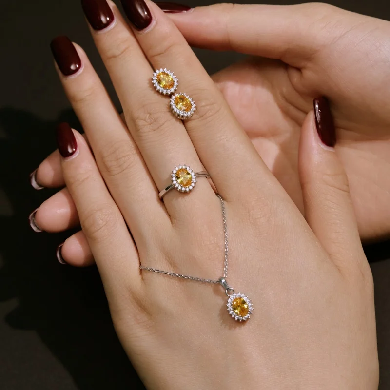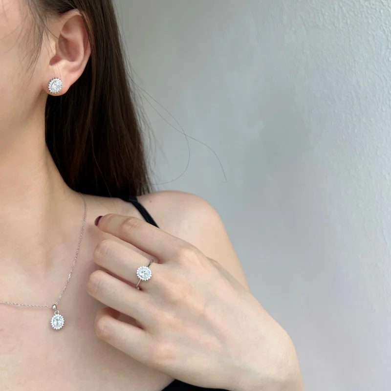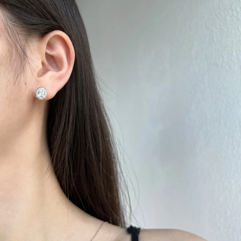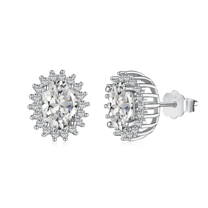 High Quality Fine Jewelry 925 Sterling Silver Diamond Oval Sun Stud Earrings For Women