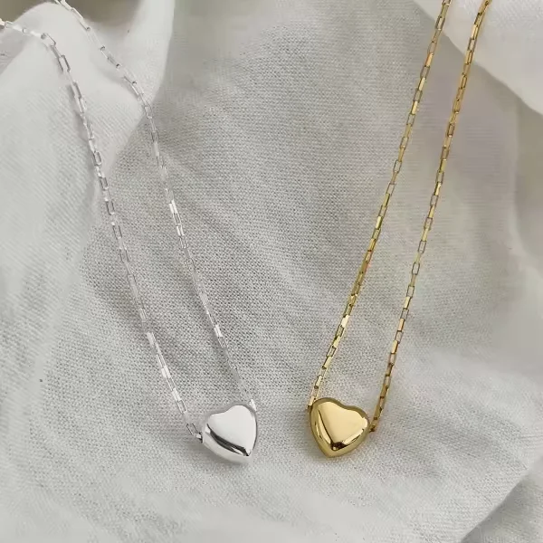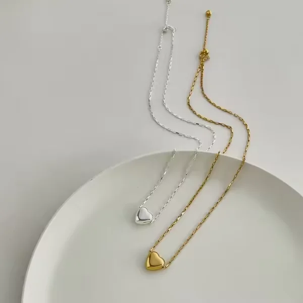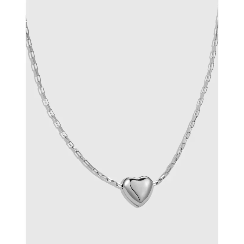Minimalist Design 925 Sterling Silver Rhodium Plated Heart Pendant Necklace