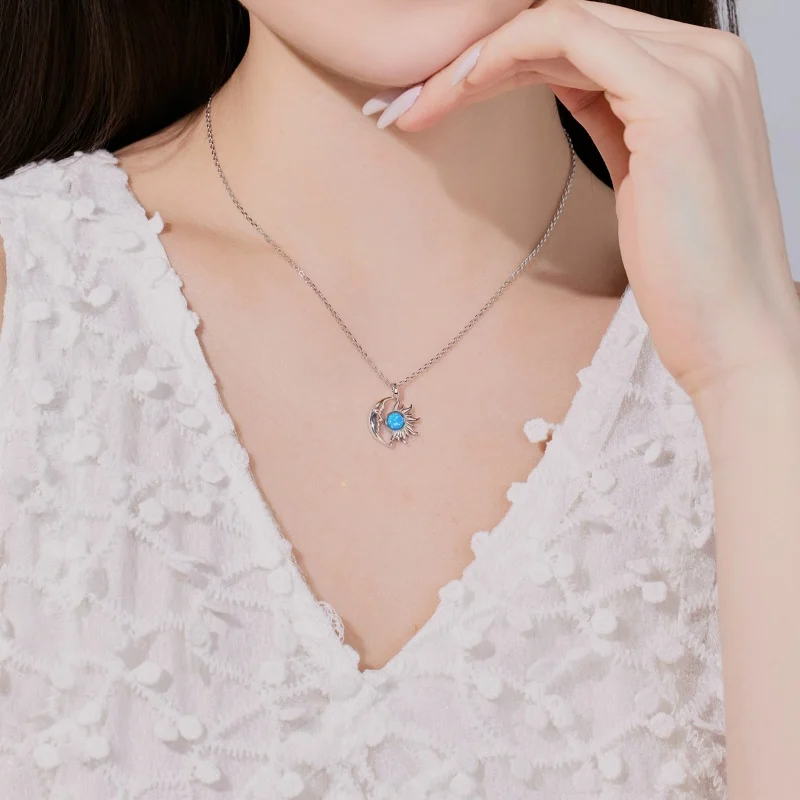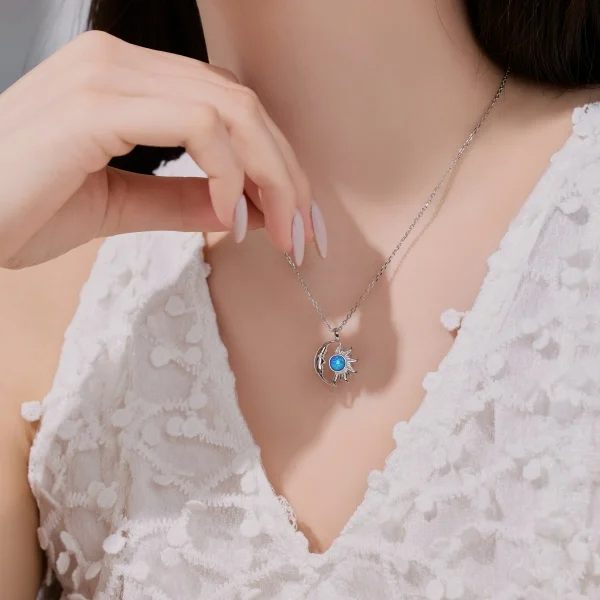 New Arrival 925 Sterling Silver Gold Plated Moon And Sun White Opal Necklace For Women