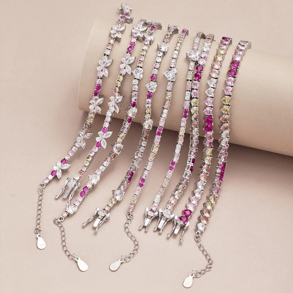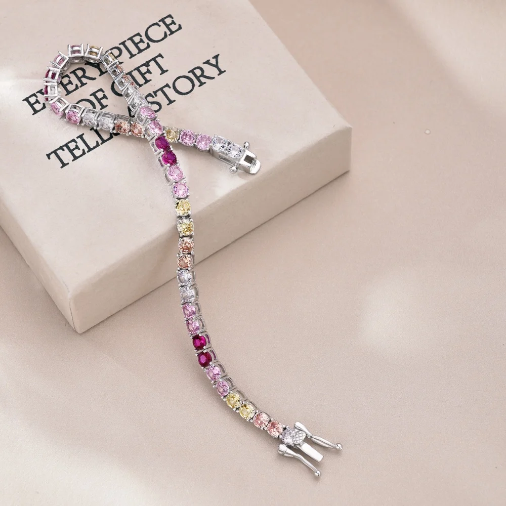 High Quality Women Fine Jewelry 925 Sterling Silver 3.5mm Colorful Round Zircon Tennis Bracelet