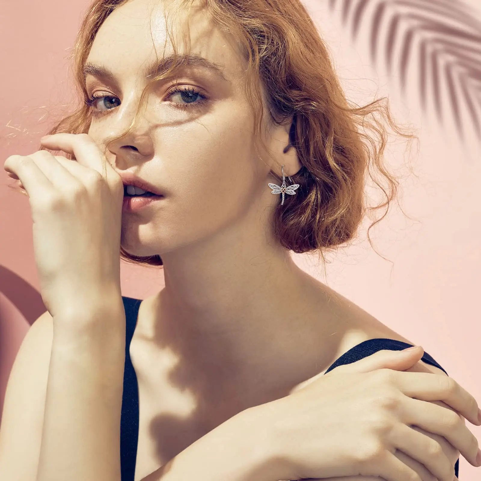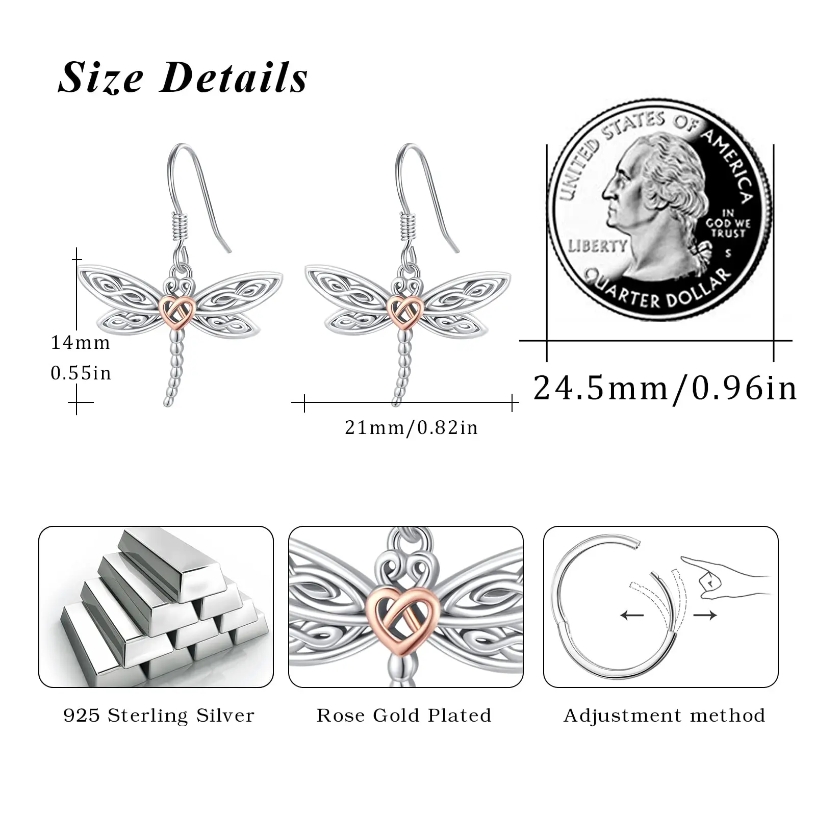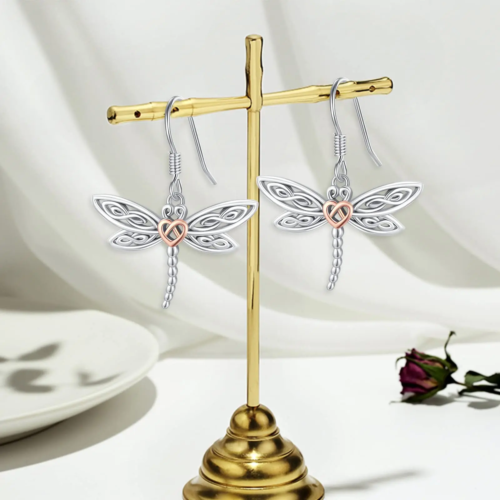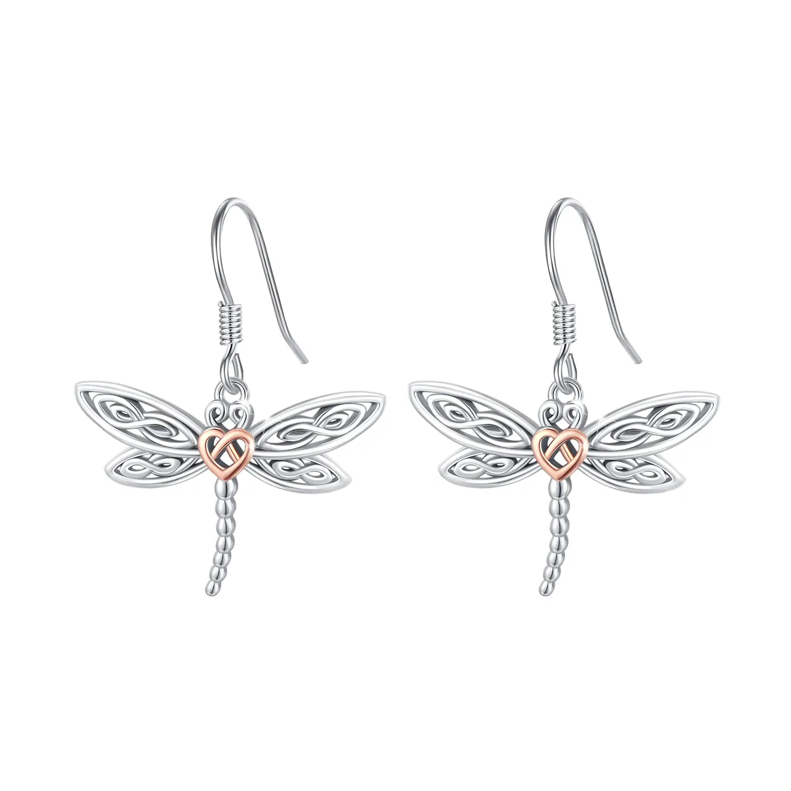 Hot Sale 925 Sterling Silver Two Tone Hollow Dragonfly Hook Pendant Earrings For Women
