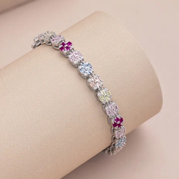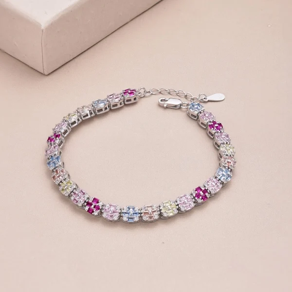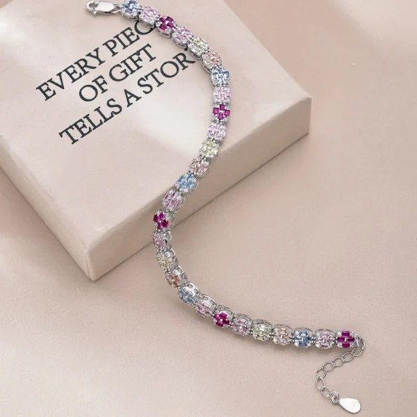 Fine Jewelry 925 Sterling Silver Adjustable Rainbow Claw Zircon Women Tennis Bracelet