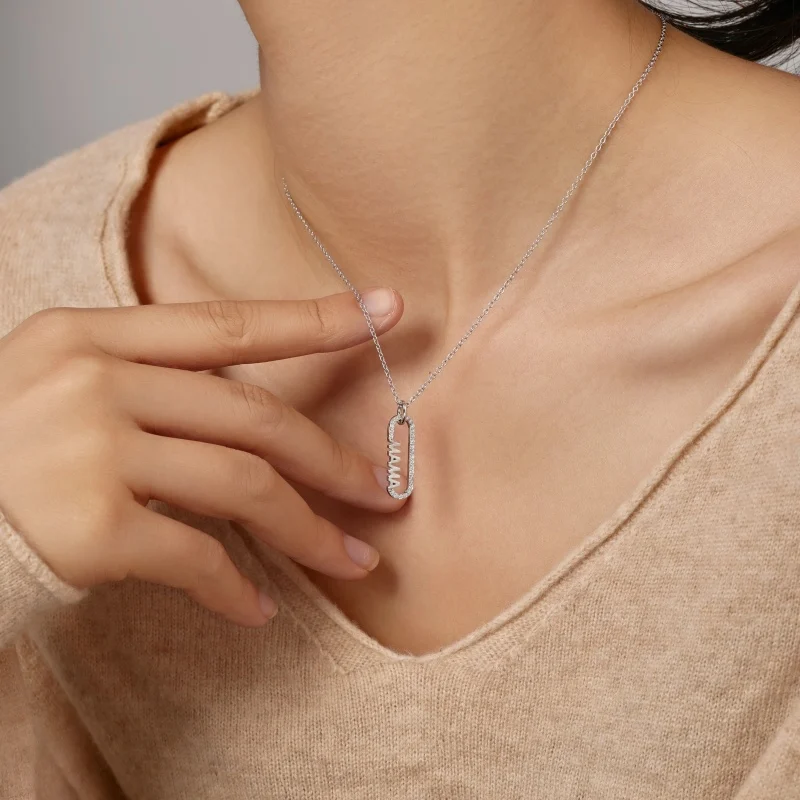 Mother's Day Jewelry Design 925 Sterling Silver Mama Letter Oval Shape Necklace For Mom