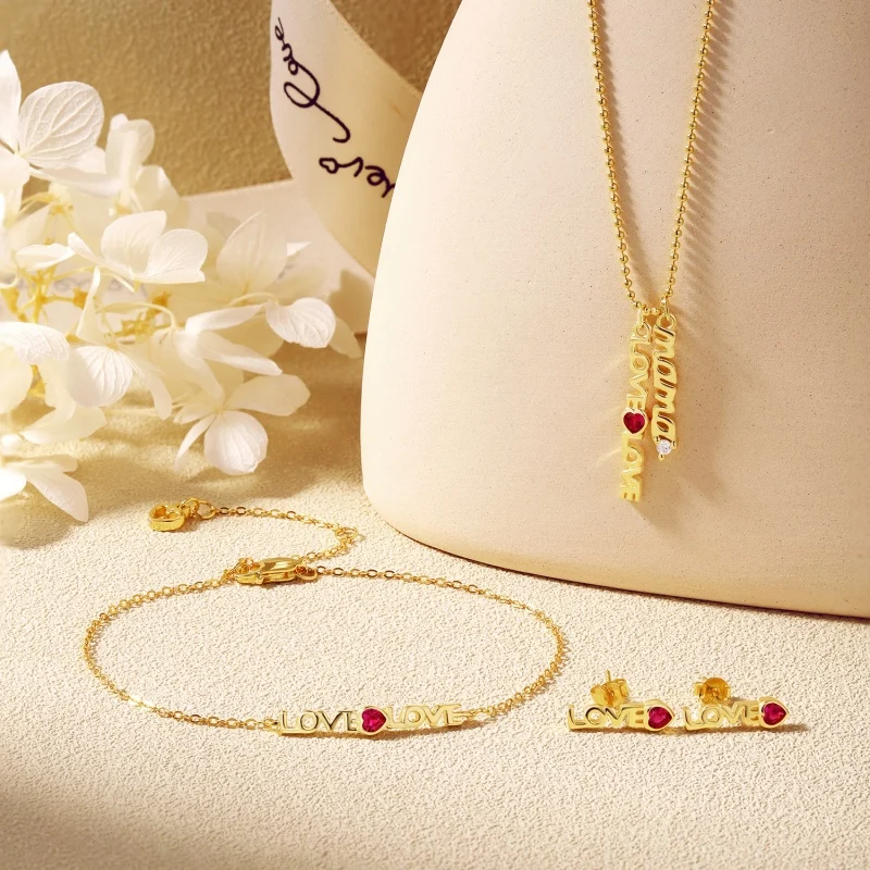 Mother Day Jewelry 925 Sterling Silver Gold Plated Custom Love Heart Zircon Bracelet