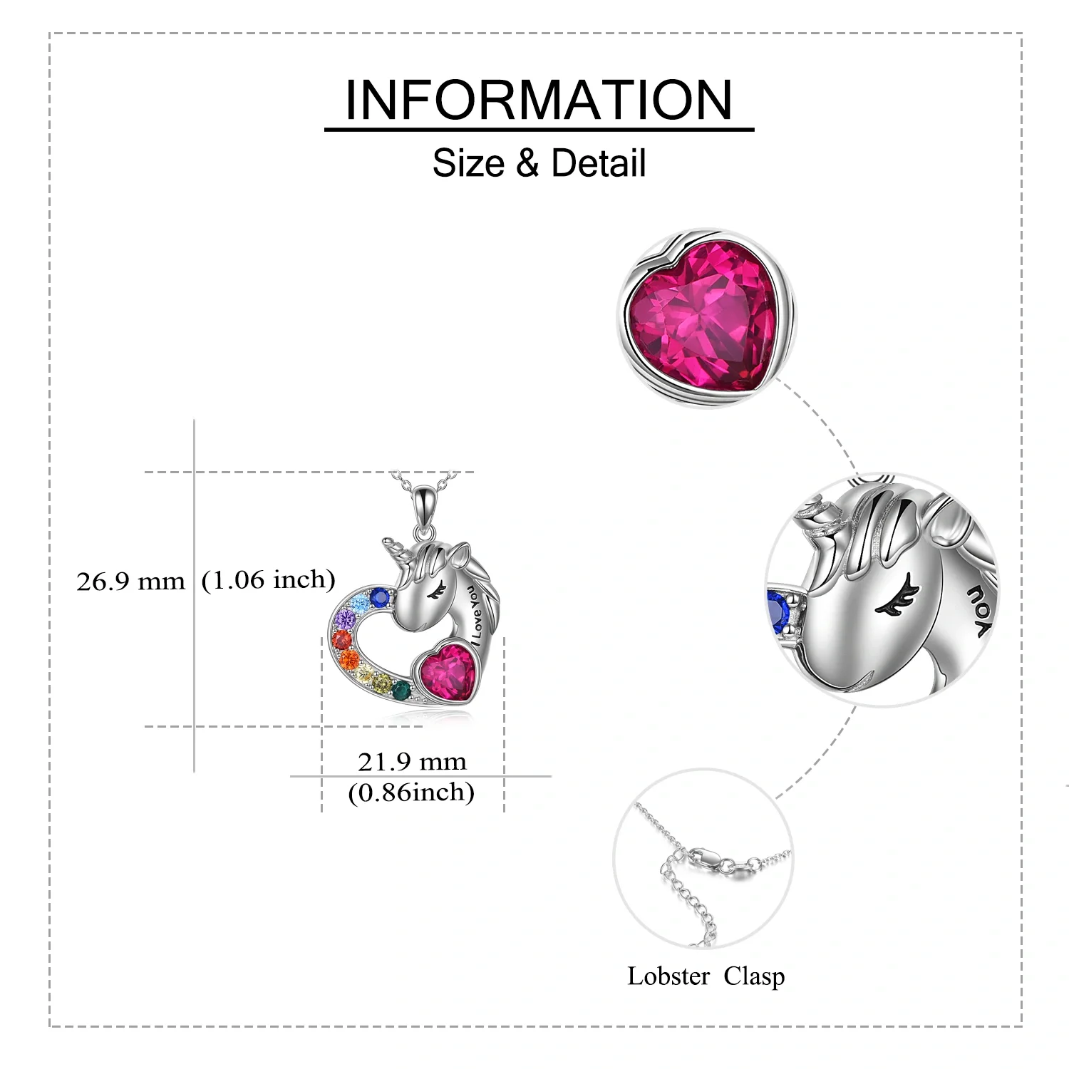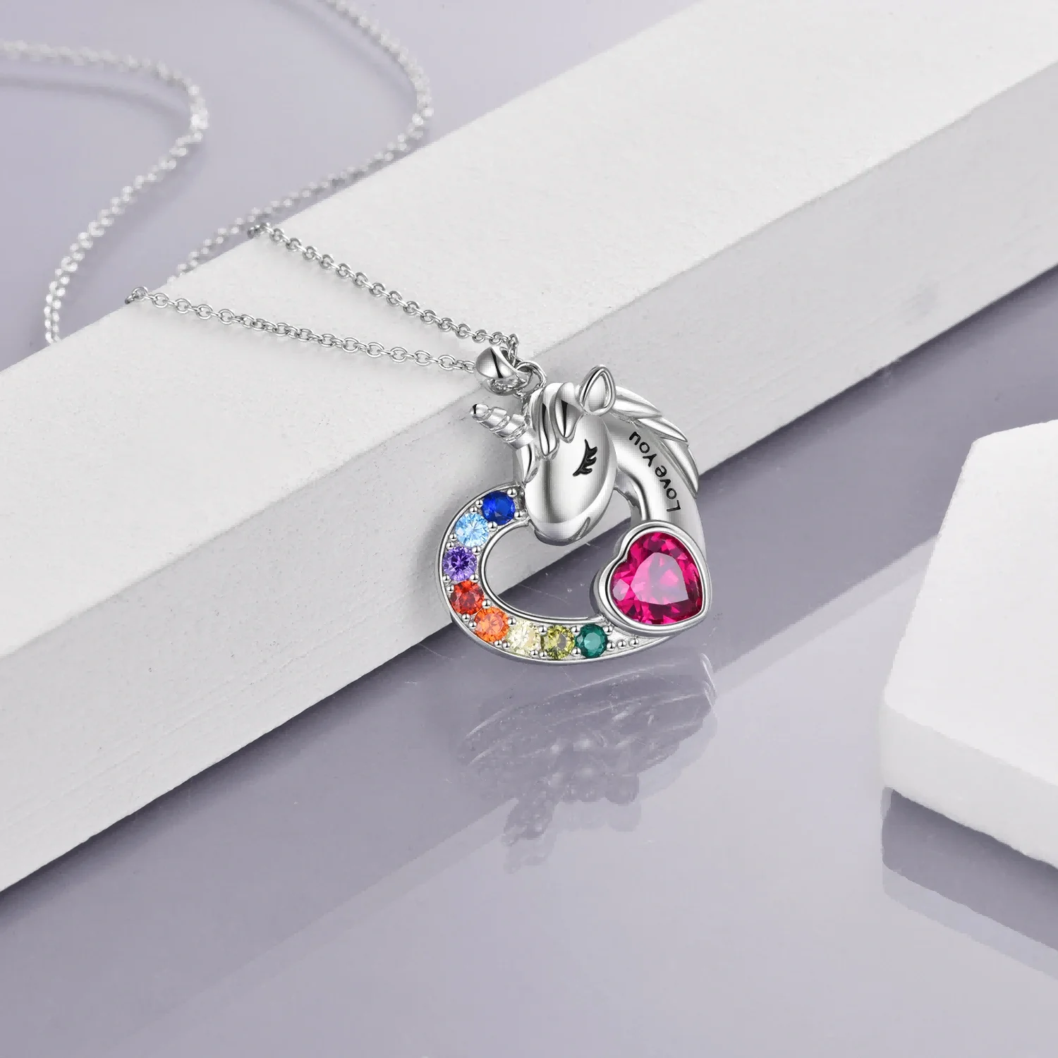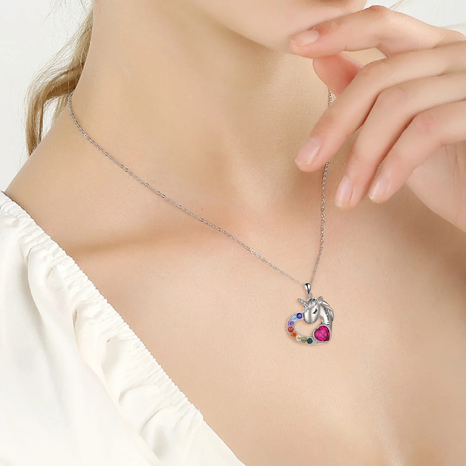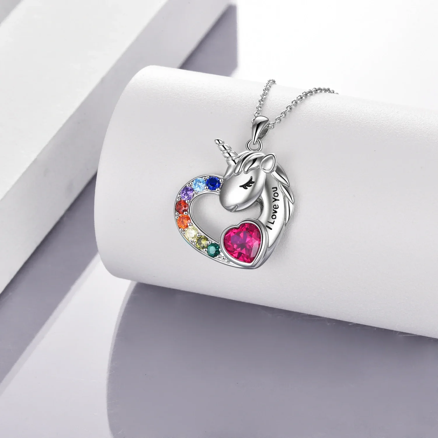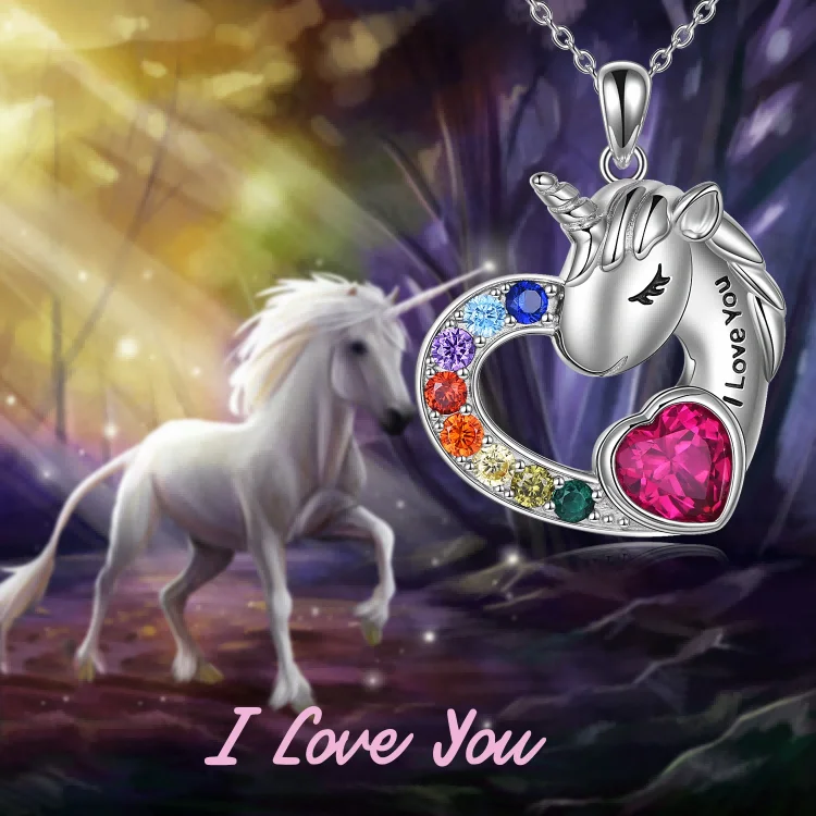 Fine Jewelry 925 Sterling Silver Cubic Zircon Engraved Fairy Tale Unicorn Heart Necklace For Women
