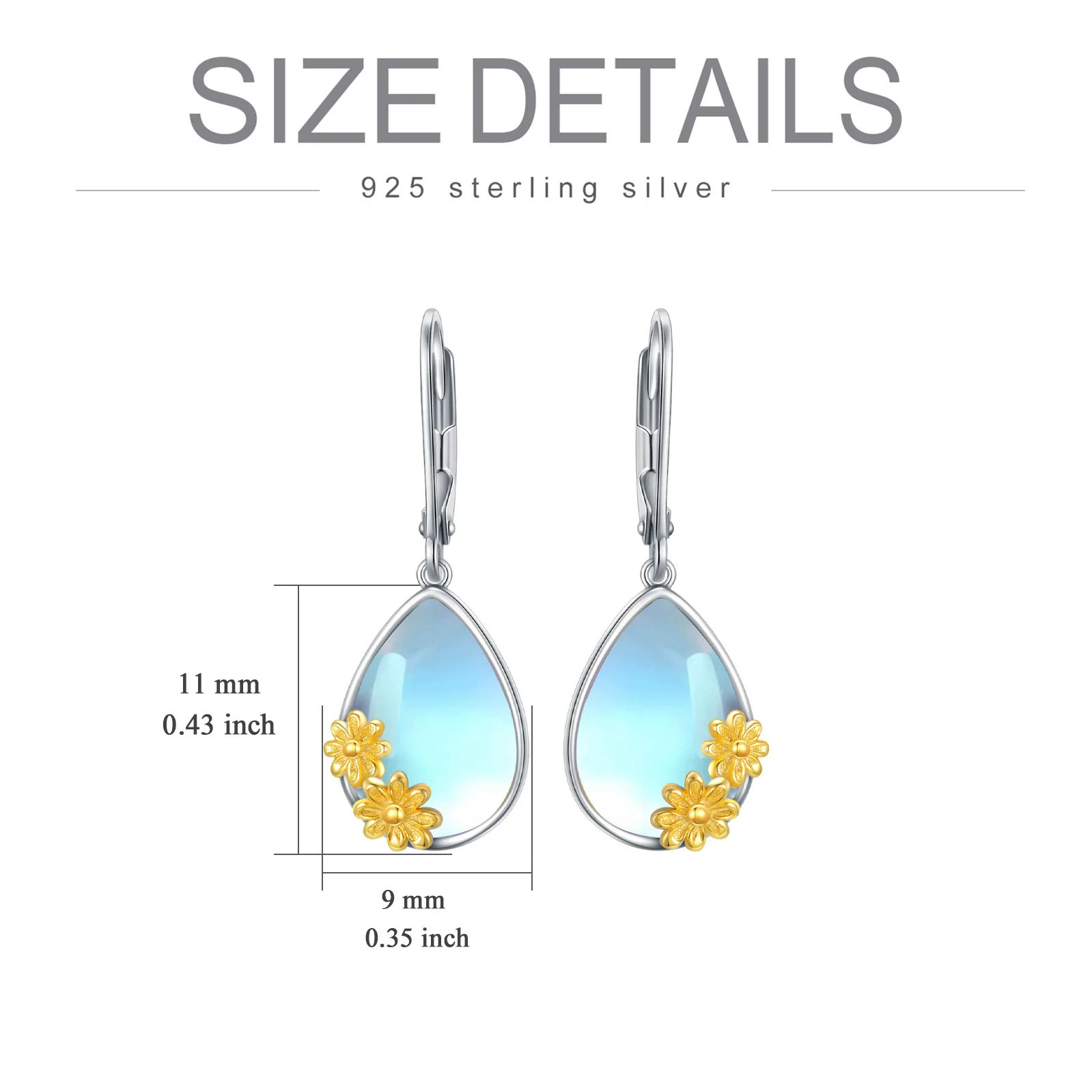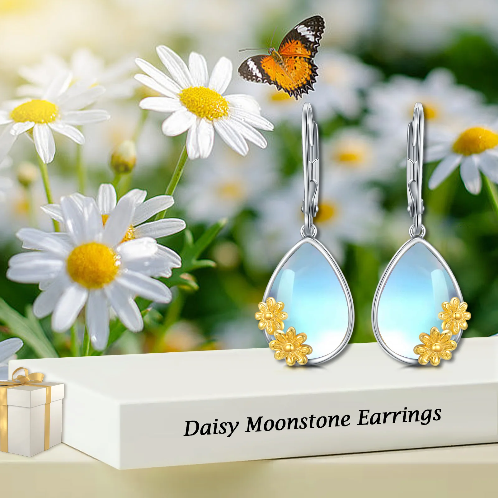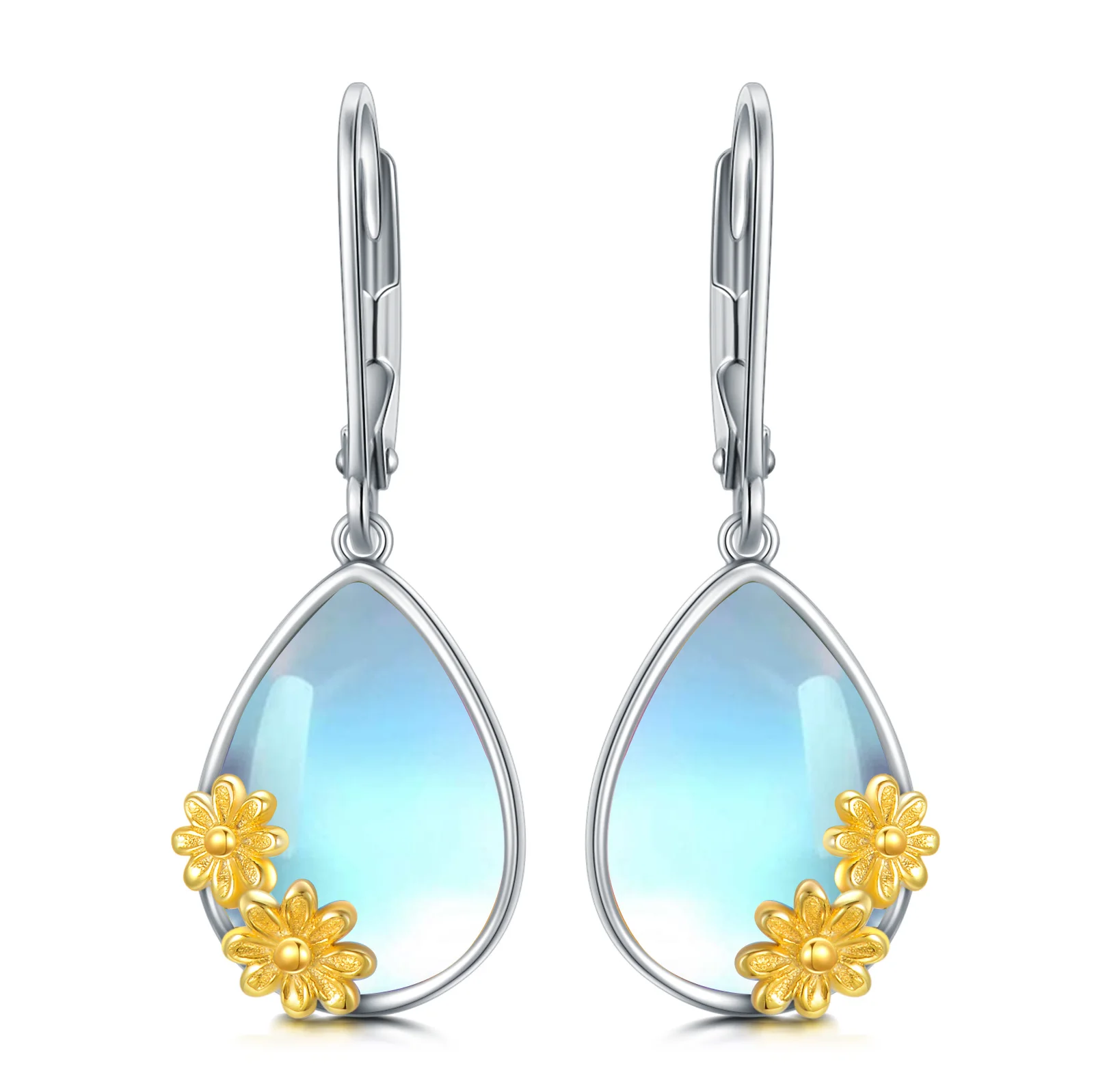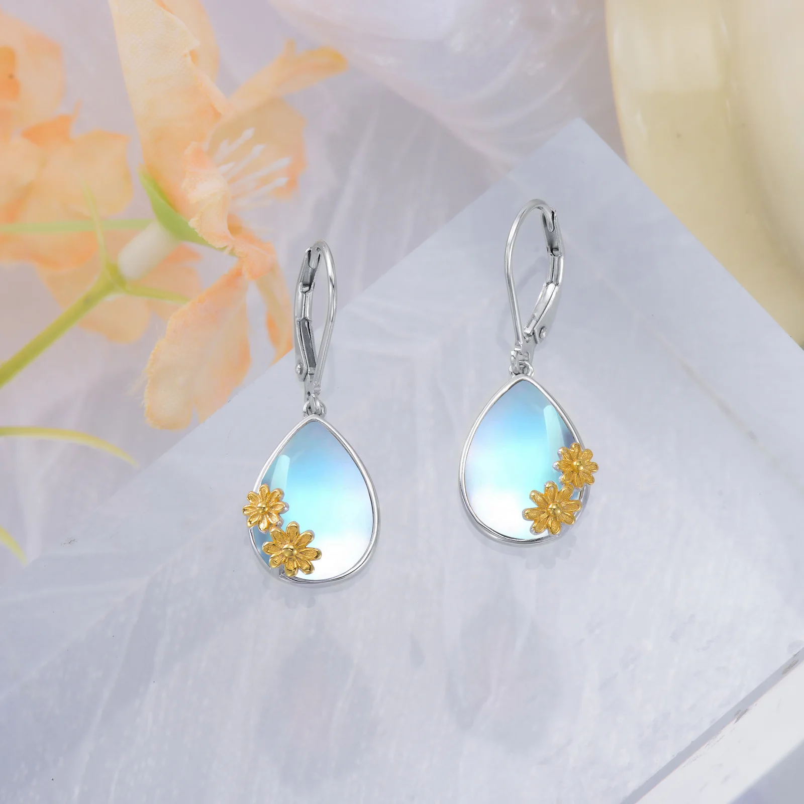 Factory Sale 925 Sterling Silver Two Tone Drop Moonstone Daisy Women Earrings