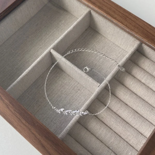 Women Simple Design 925 Sterling Silver Rhodium Plated Leaf Shape Bracelet
