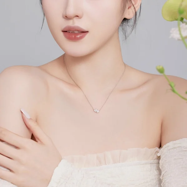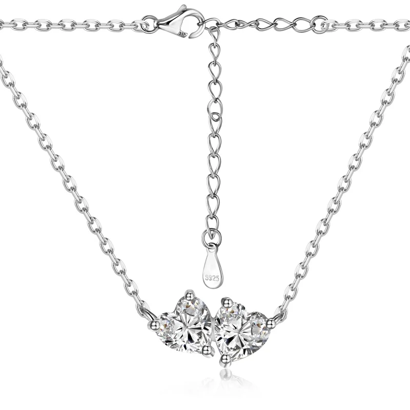 925 Sterling Silver Rhodium Plated Twin White Crystal Heart Necklace for Women