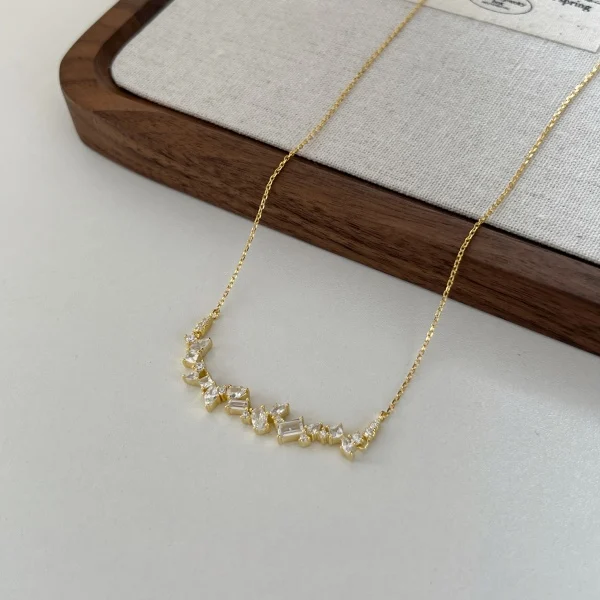 Hot Sale 925 Sterling Silver Prong Setting Geometric Irregular Combined Cubic Zircon Necklace