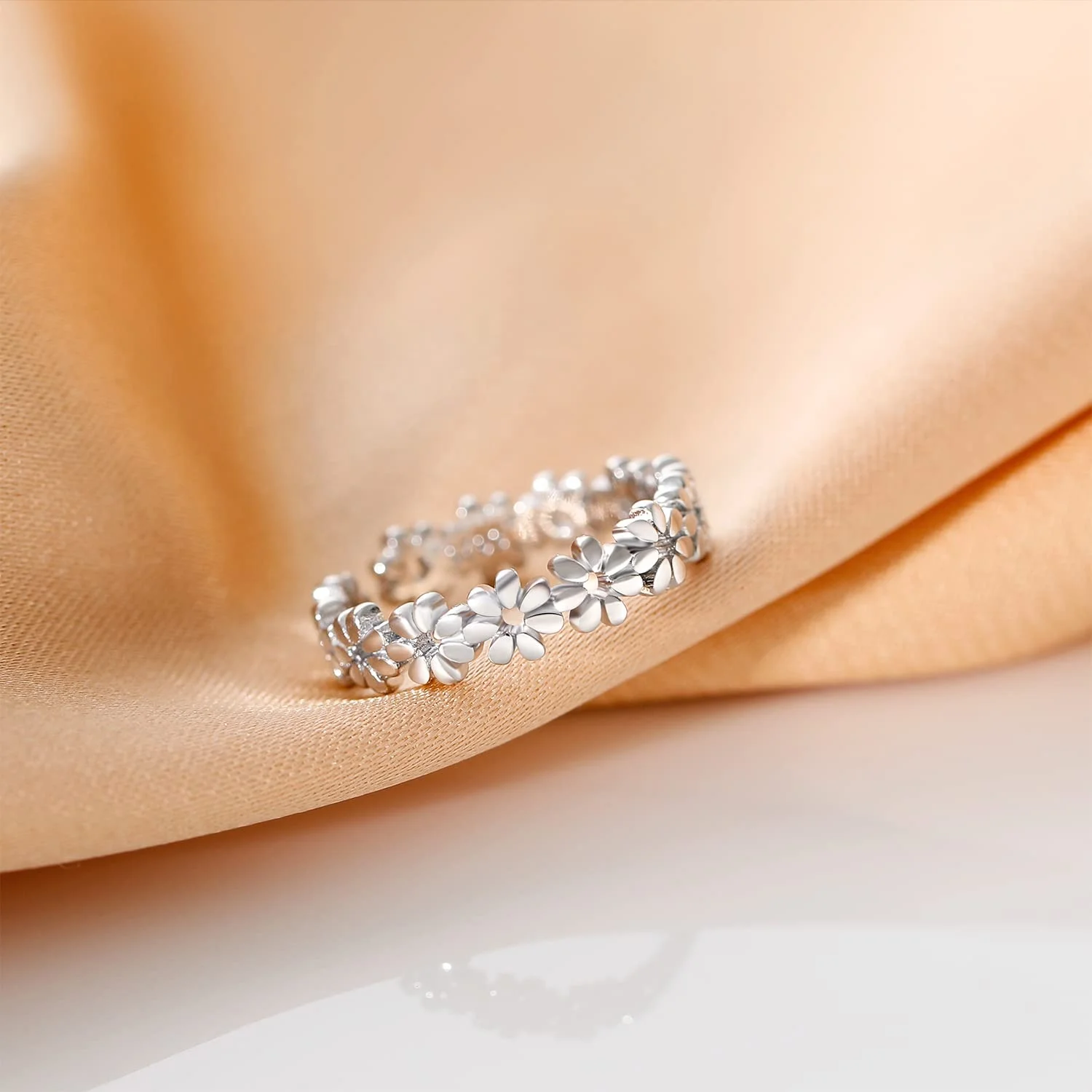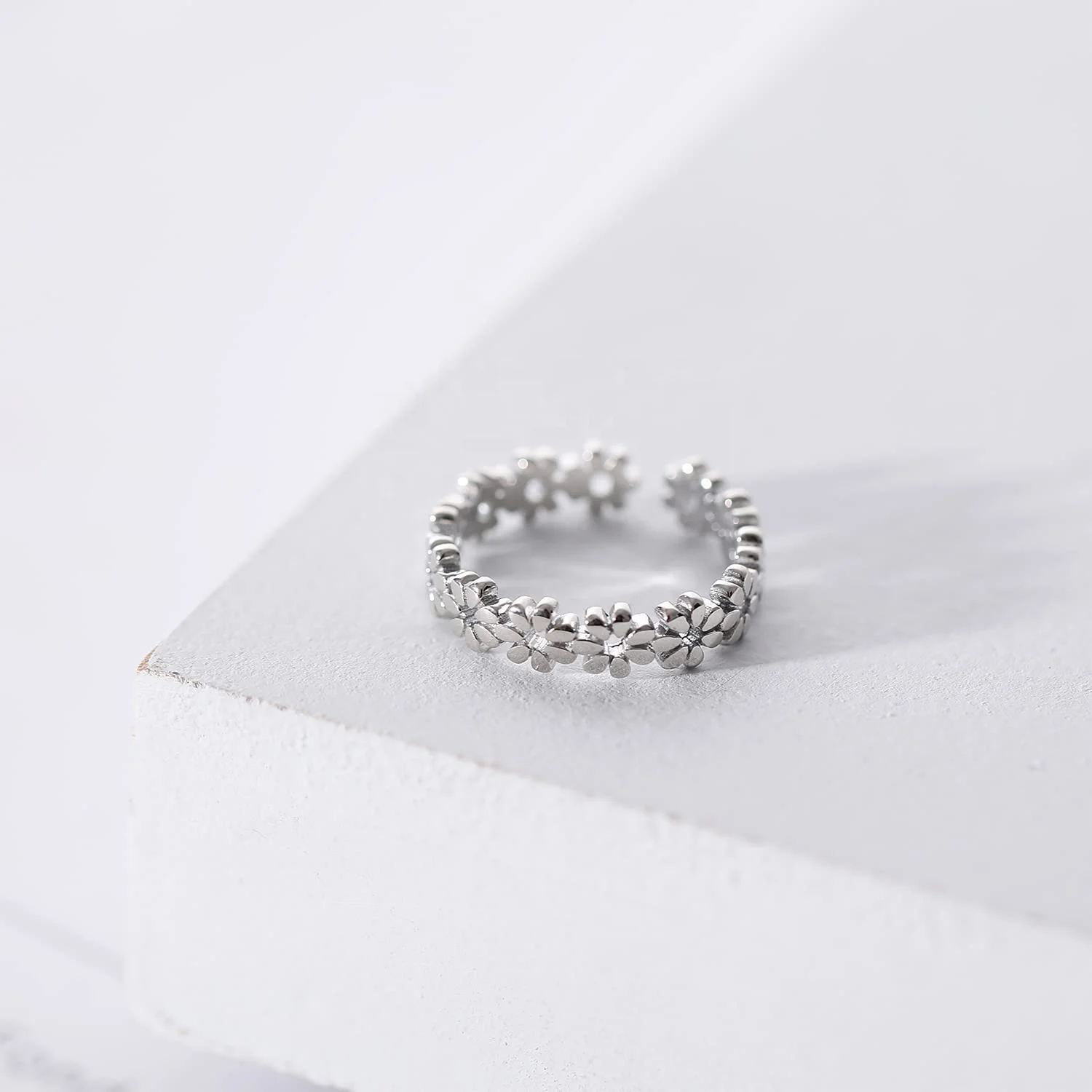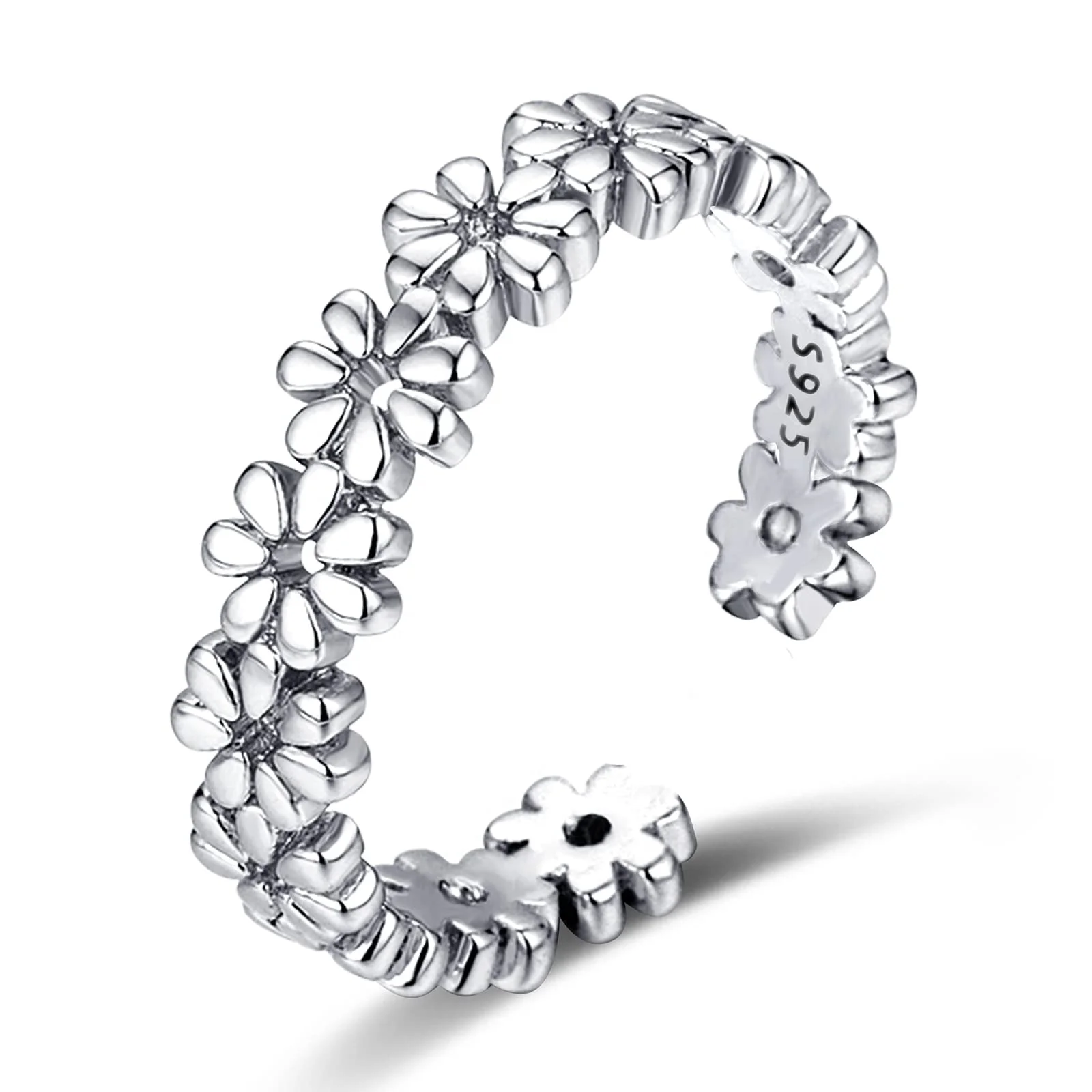 Factory Sale 925 Sterling Silver Rhodium Plated Adjustable Flower Open Toe Ring For Women