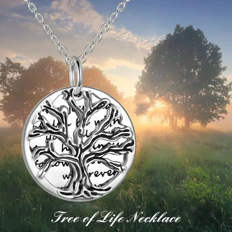Best Wishes to Friend Jewelry 925 Sterling Silver Disc Tree of Life Necklace for Women