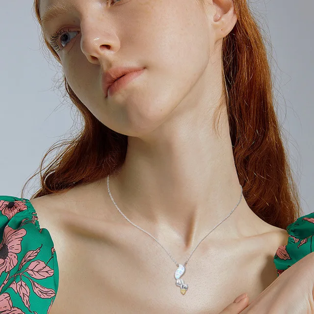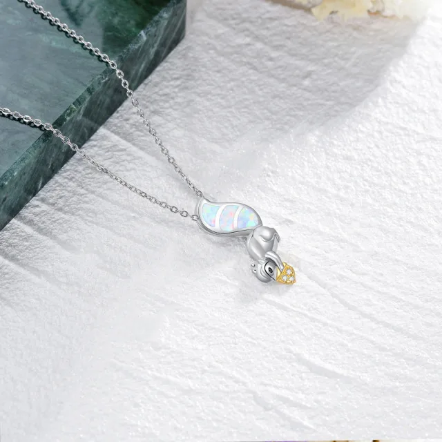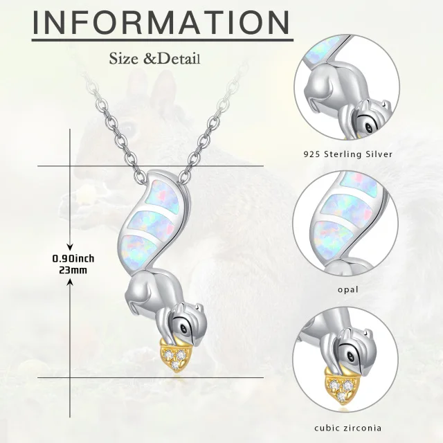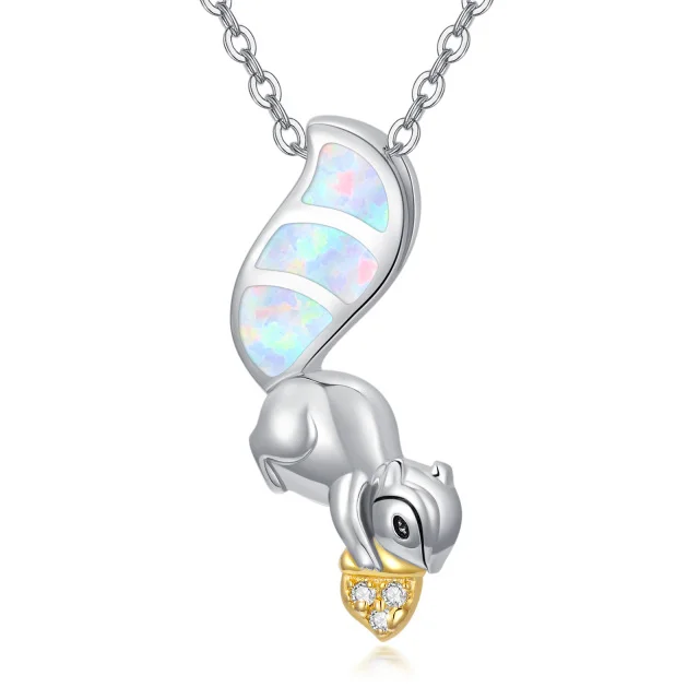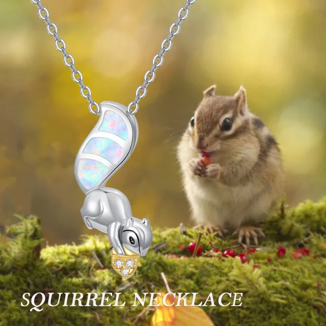 Animal Jewelry 925 Sterling Silver Cubic Zirconia Two Tone Cute Squirrel Opal Pendant Necklace