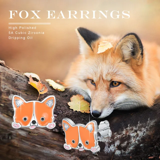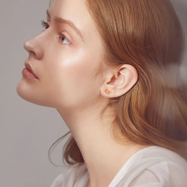 Hypoallergenic Custom 925 Sterling Silver Cute Animal Enamel Fox Stud Earrings For Children