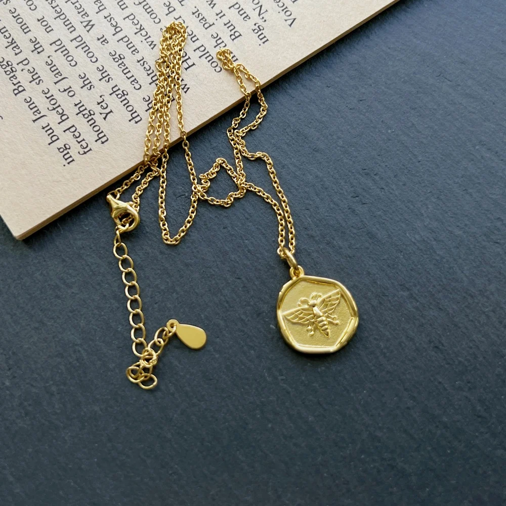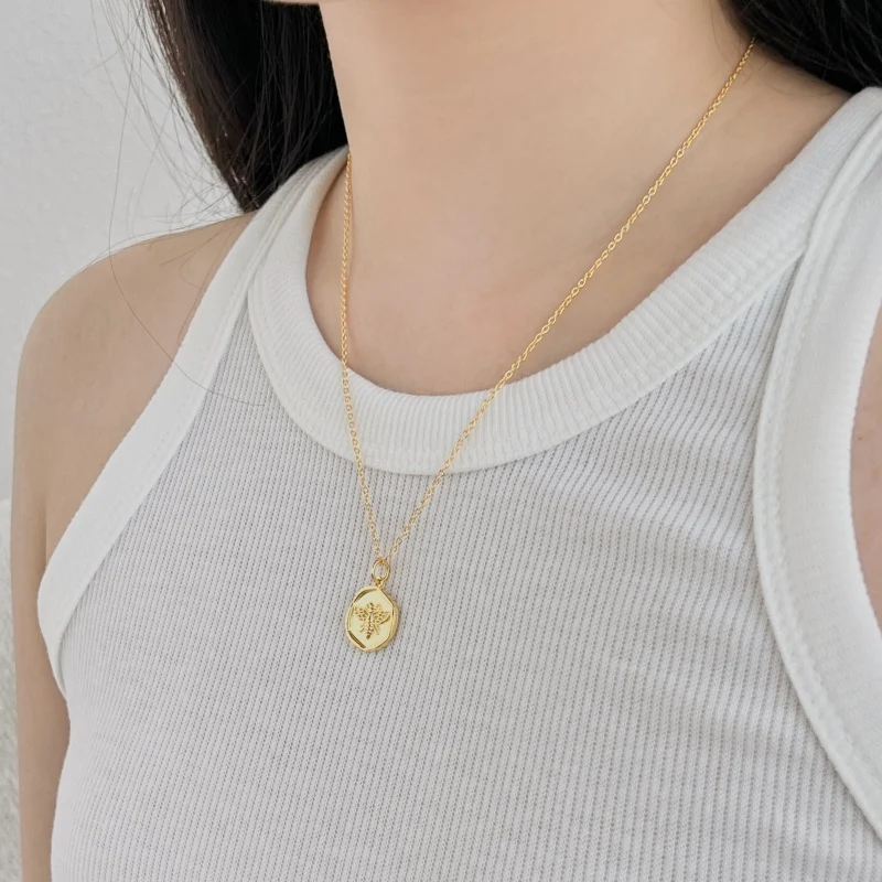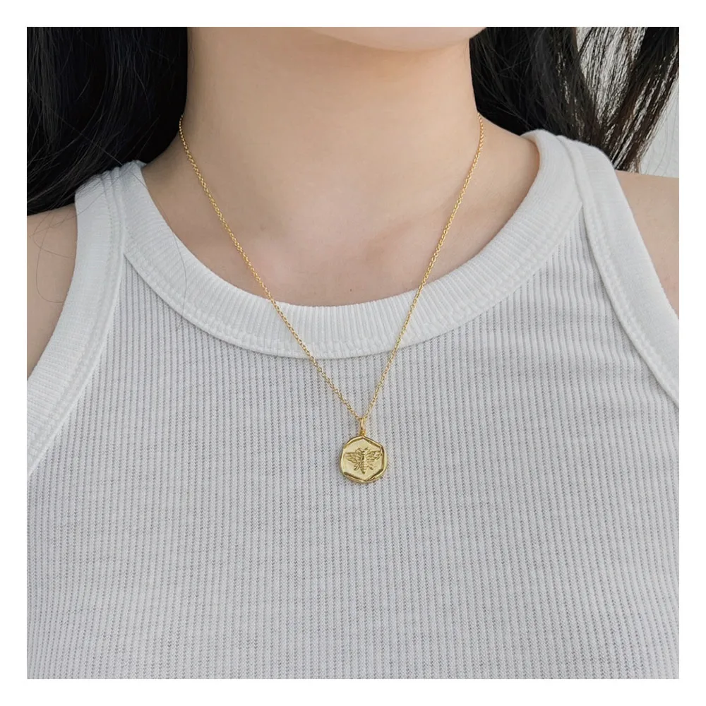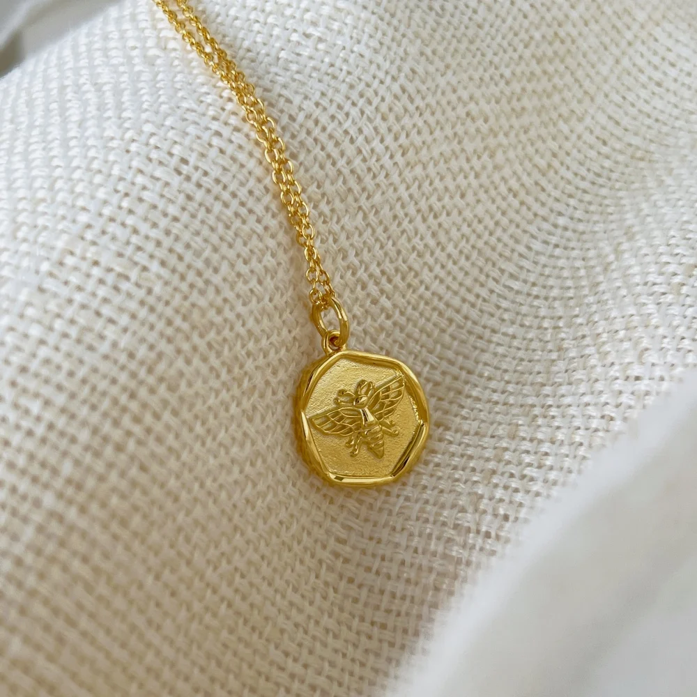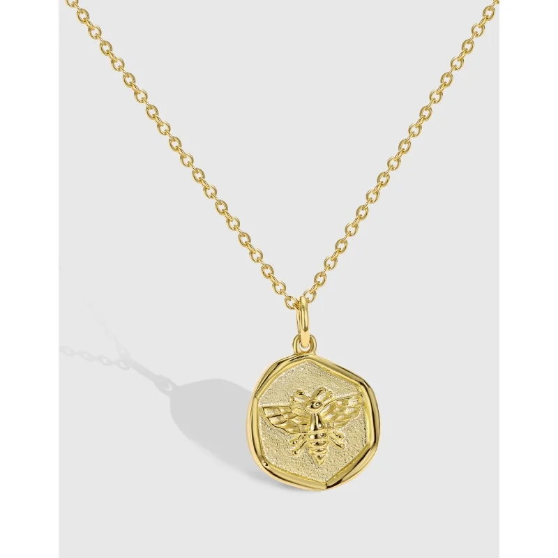 Minimalist Design 925 Sterling Silver Gold Plated Hexagon Irregular Bee Pendant Necklace For Women