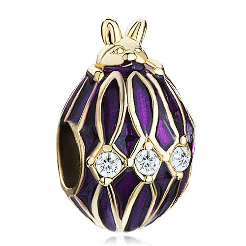925 Sterling Silver Gold Plated Purple Drip Gum Rabbit Crystal Faberge Egg Bead Charms