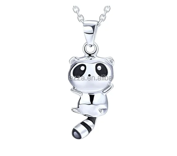 Factory Personalized 925 Sterling Silver Black Enamel Panda Bear Pendant Charm Animal Lovely Necklace