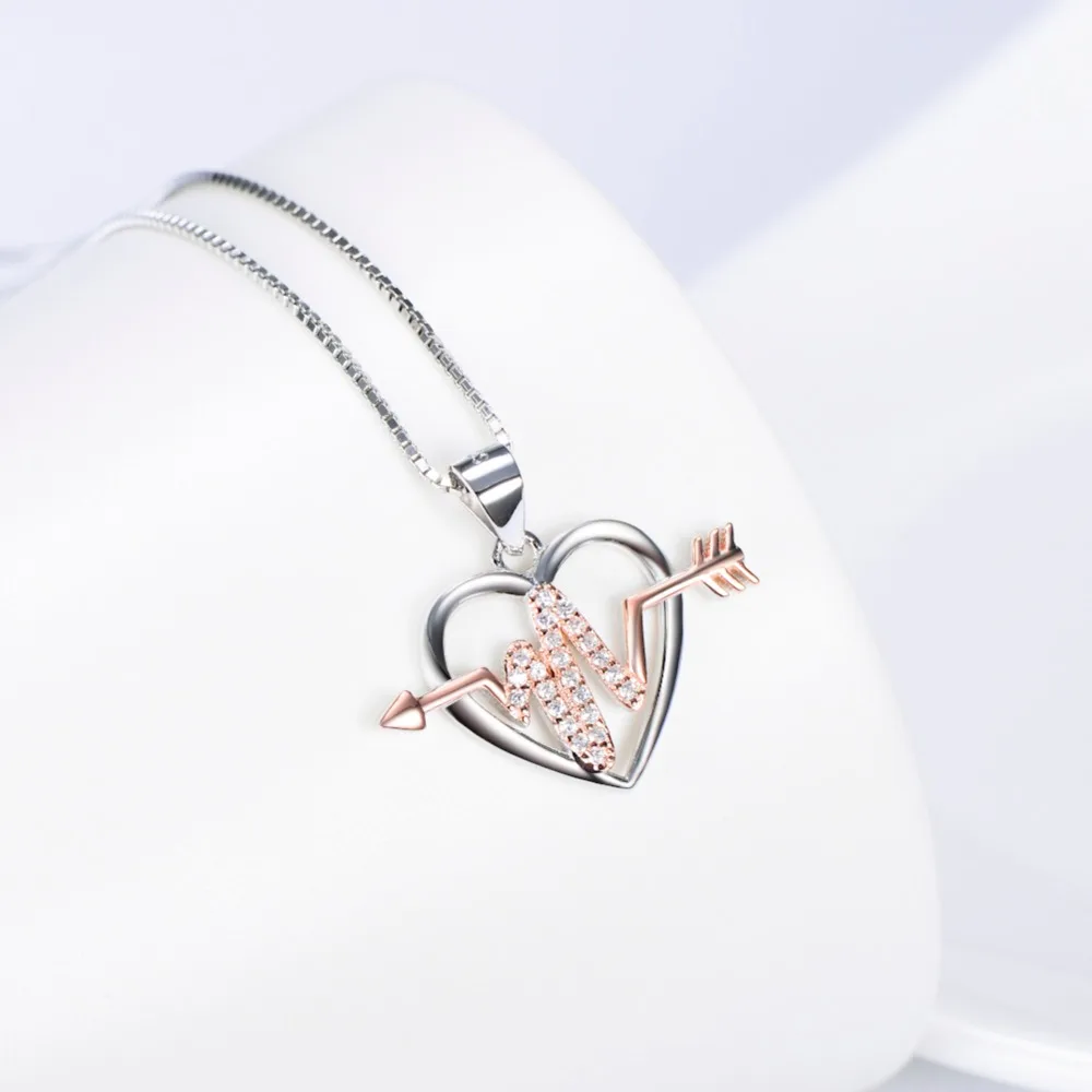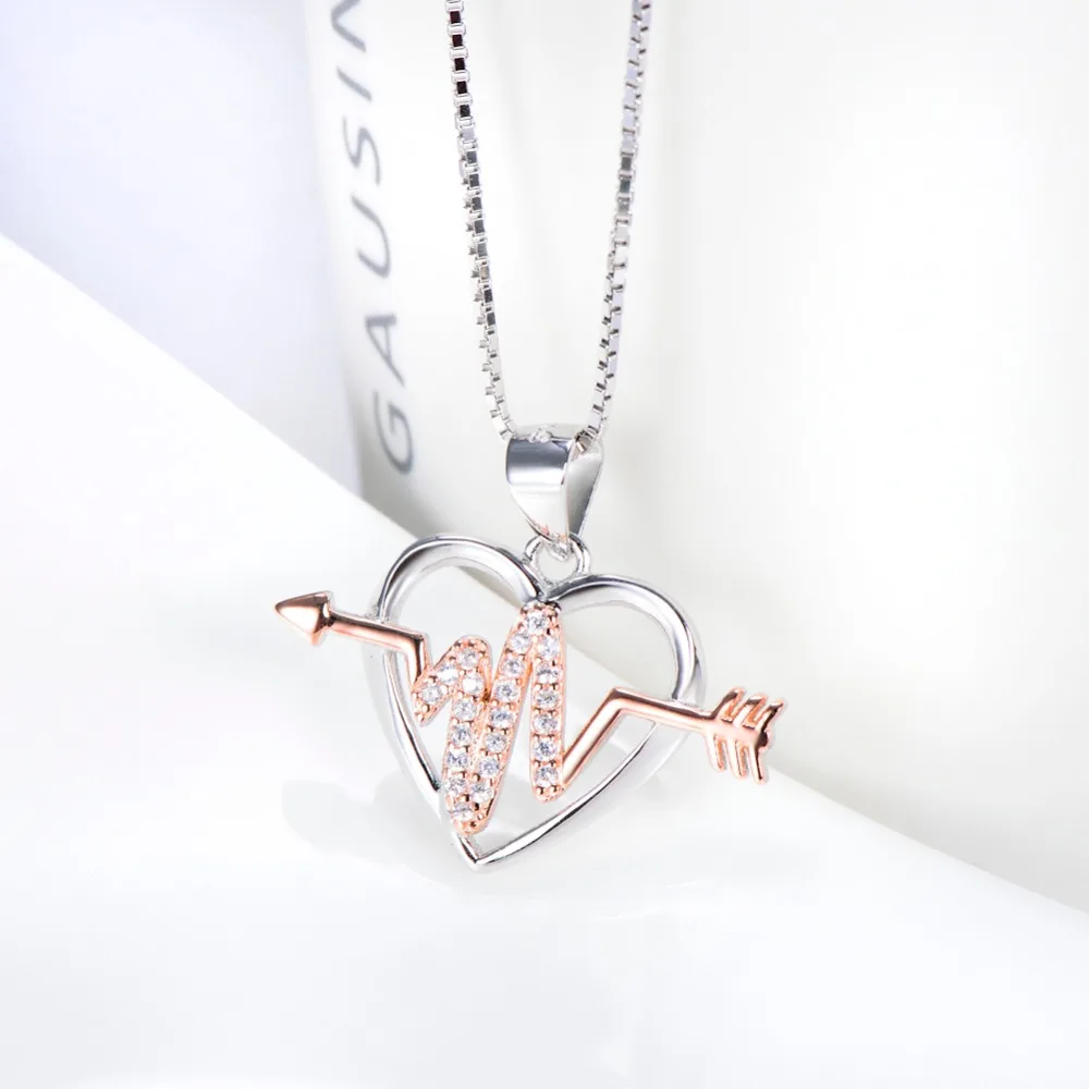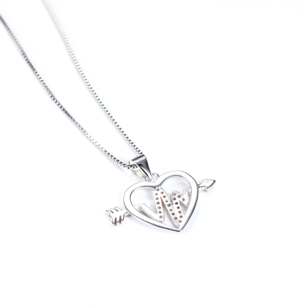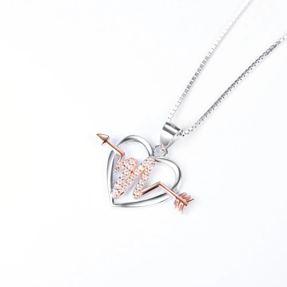 Fine Jewelry Custom 925 Sterling Silver Arrow Heart Heartbeat Pendant Women Necklace