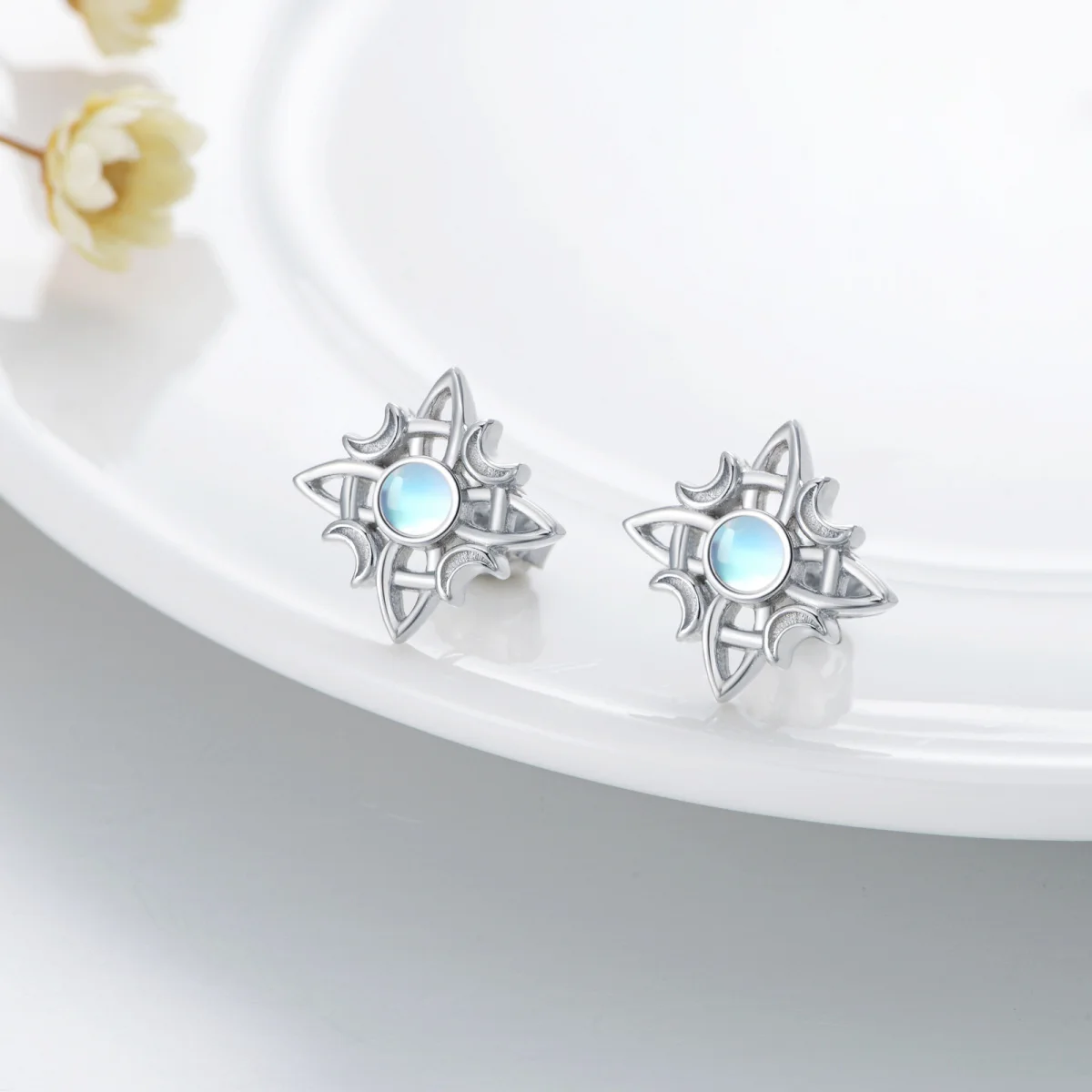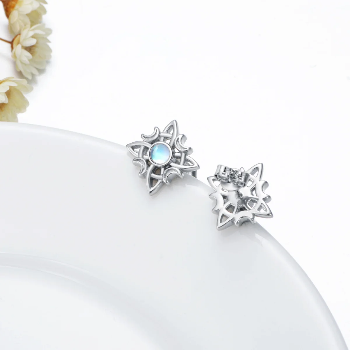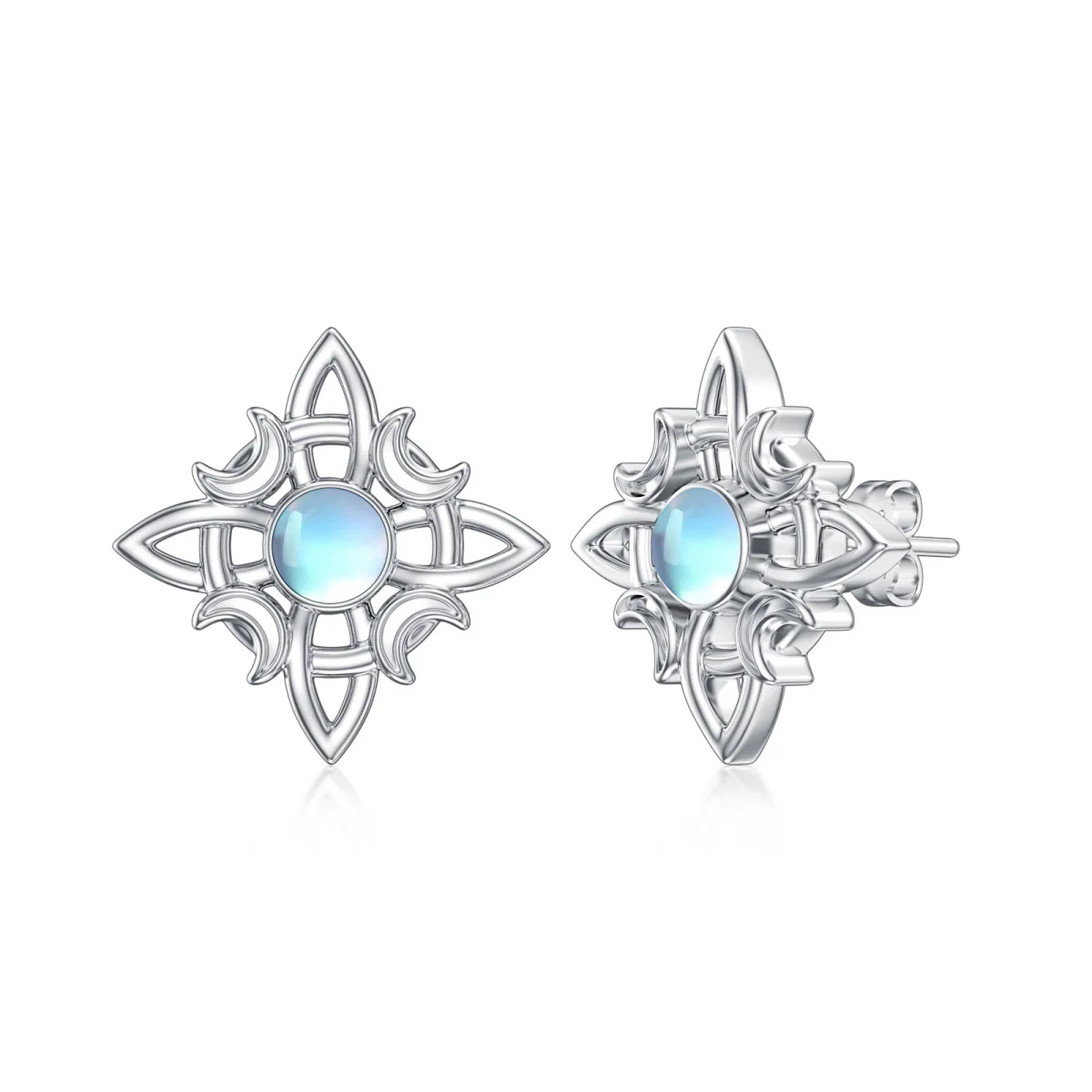 Moonstone Star Witch Knot 925 Sterling Silver Stud Earrings