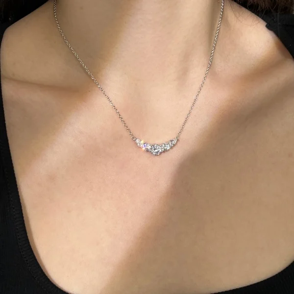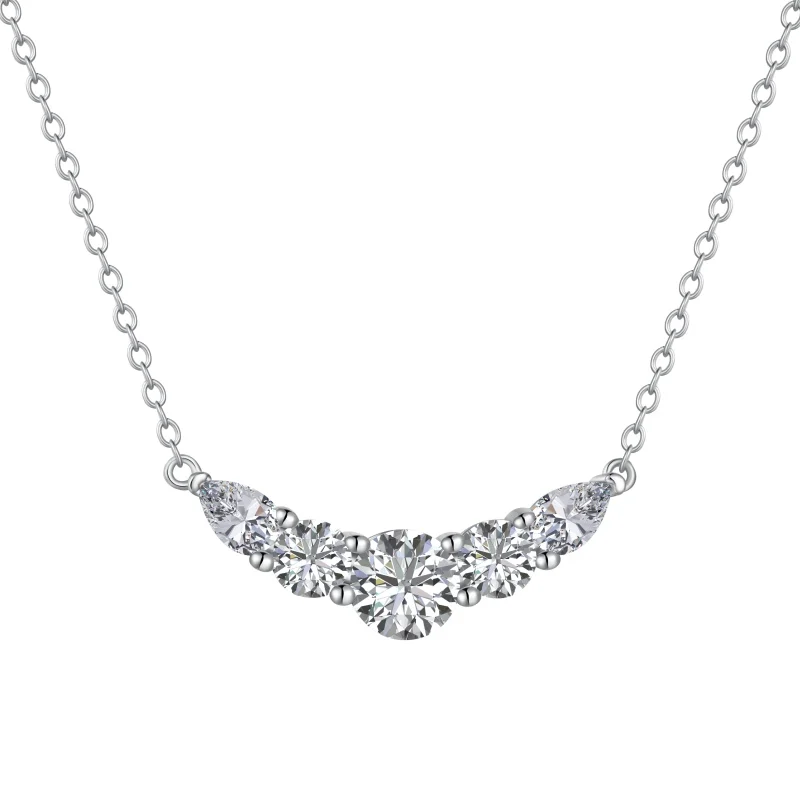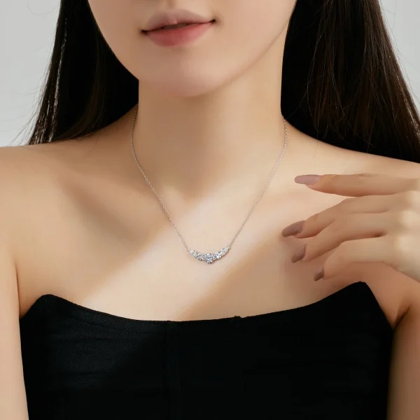 Fine Jewelry 925 Sterling Silver Cubic Zircon White Crescent Moon Pendant Necklace for Women