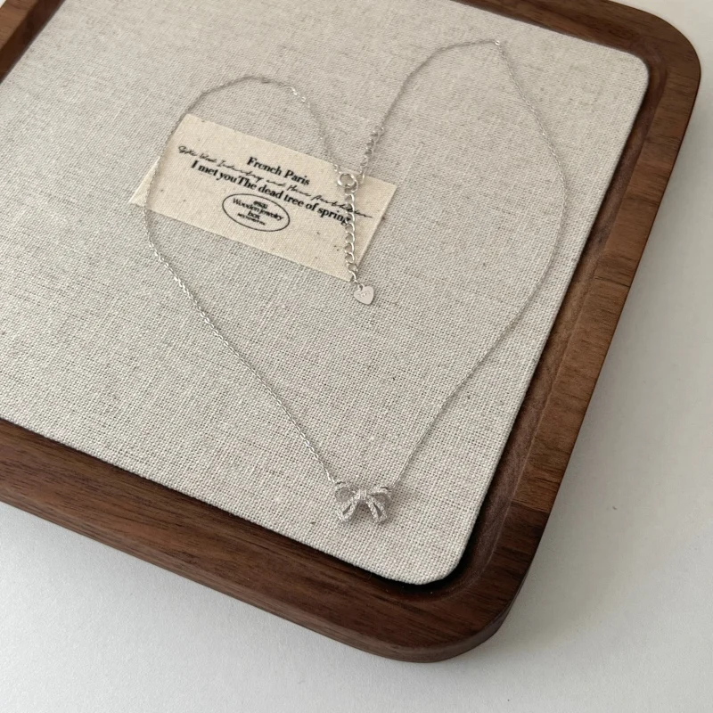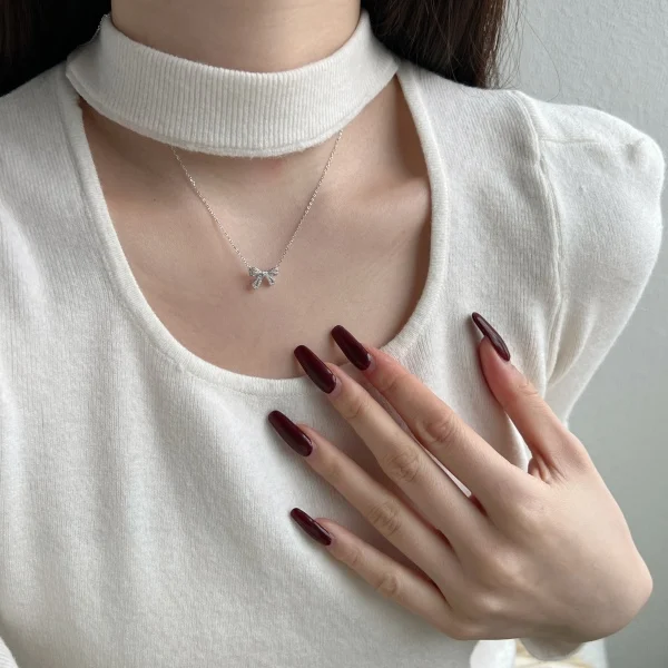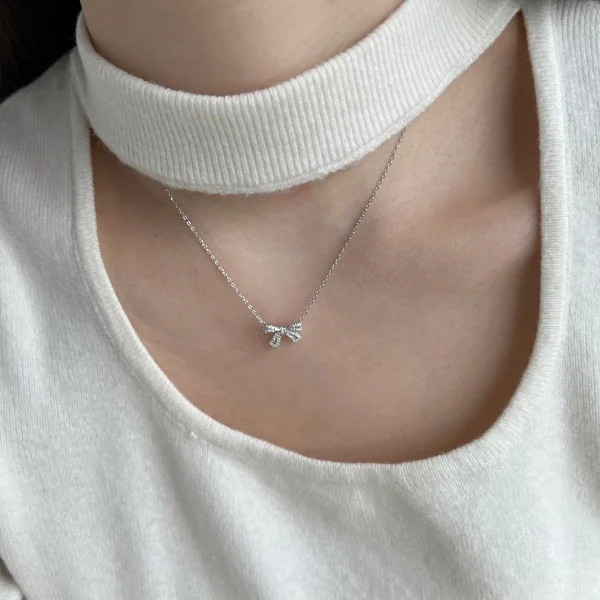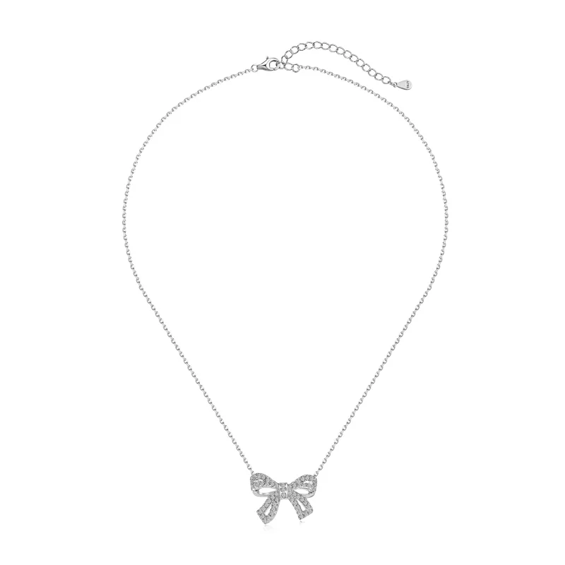 Hot Sale 925 Sterling Silver Rhodium Plated Cubic Zircon Ribbon Bow Knot Necklace for Women