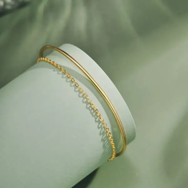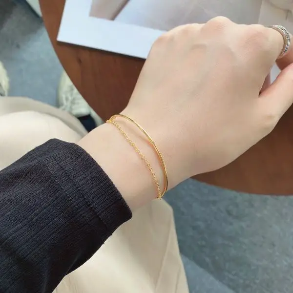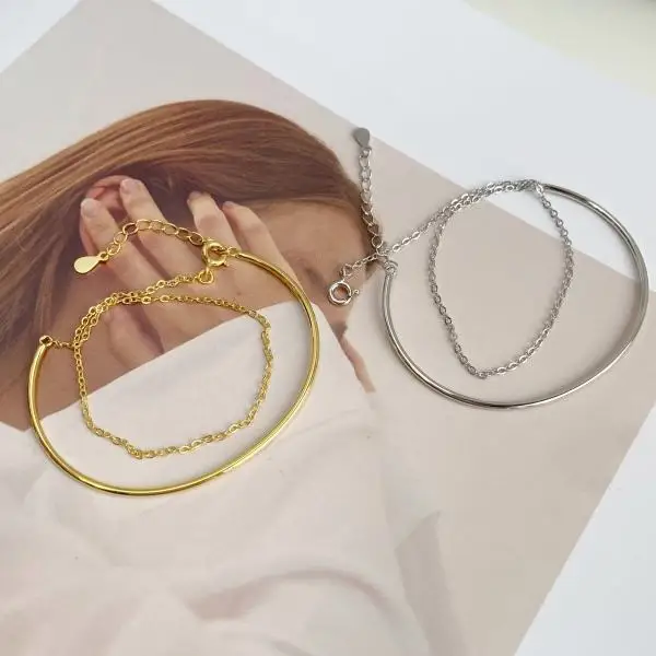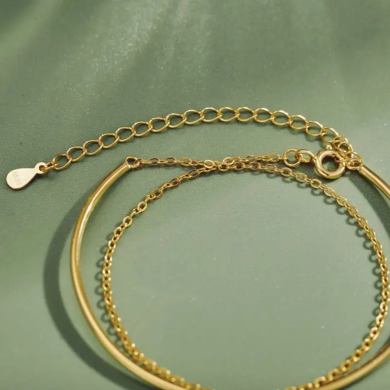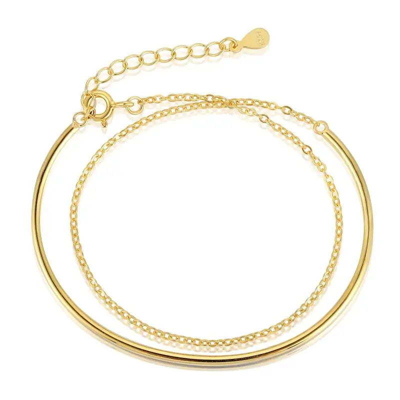 Minimalist Design 925 Sterling Silver Gold Plated Double Layer Chain Cuff Bracelet