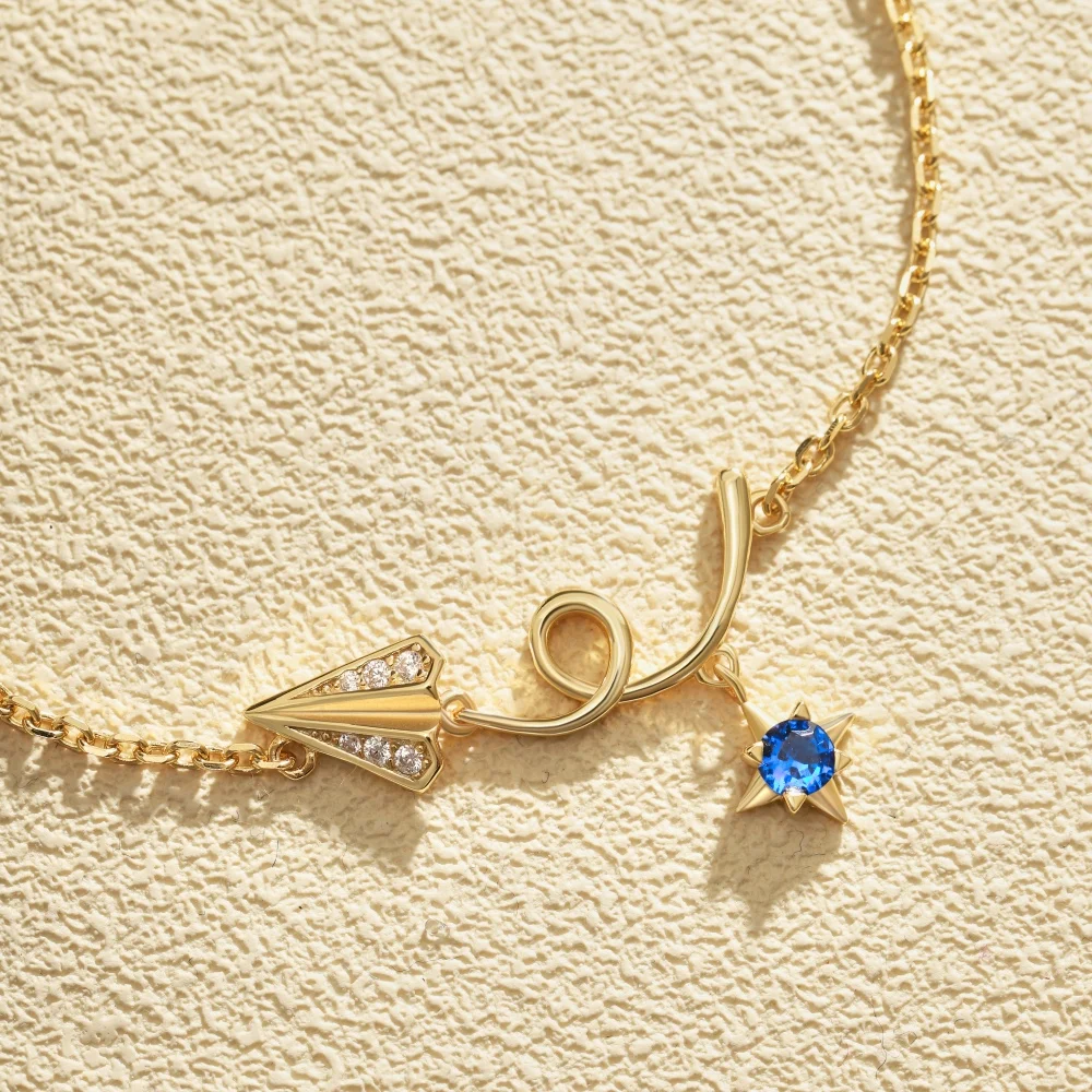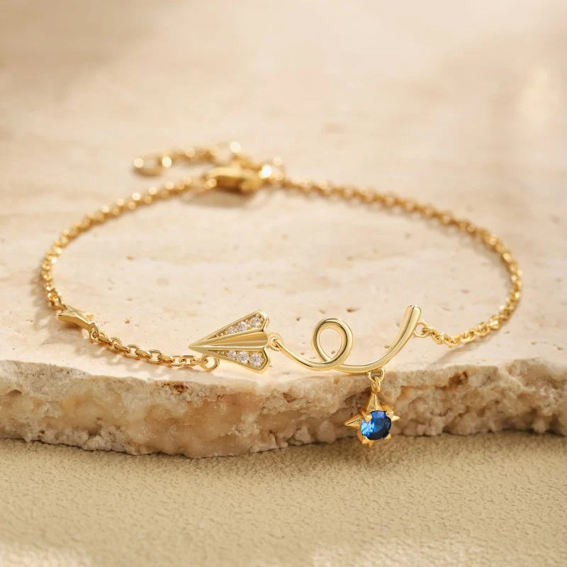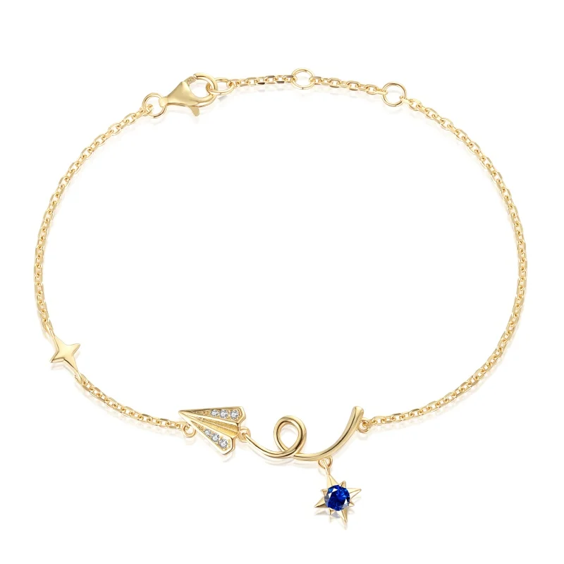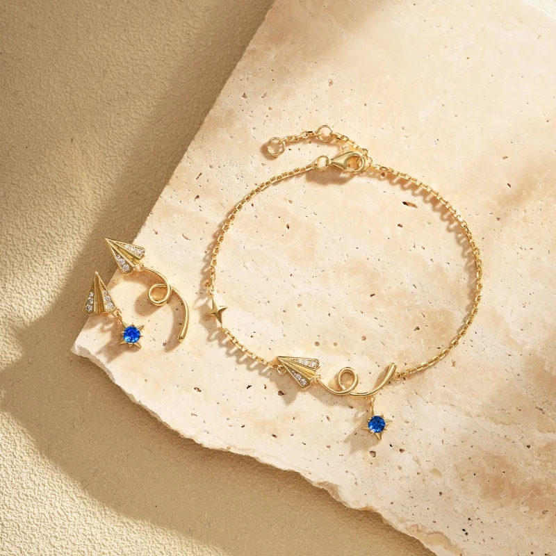 Factory Sale 925 Sterling Silver Gold Plated Zircon Sky Paper Plane Bracelet For Women