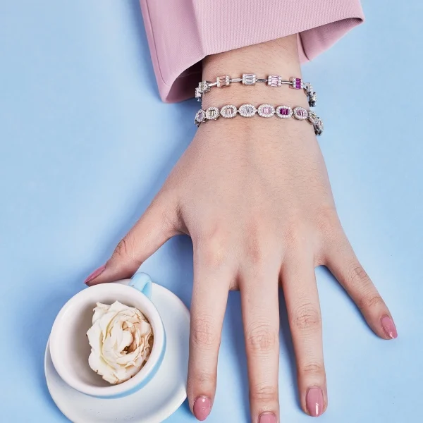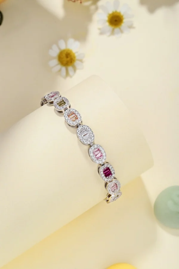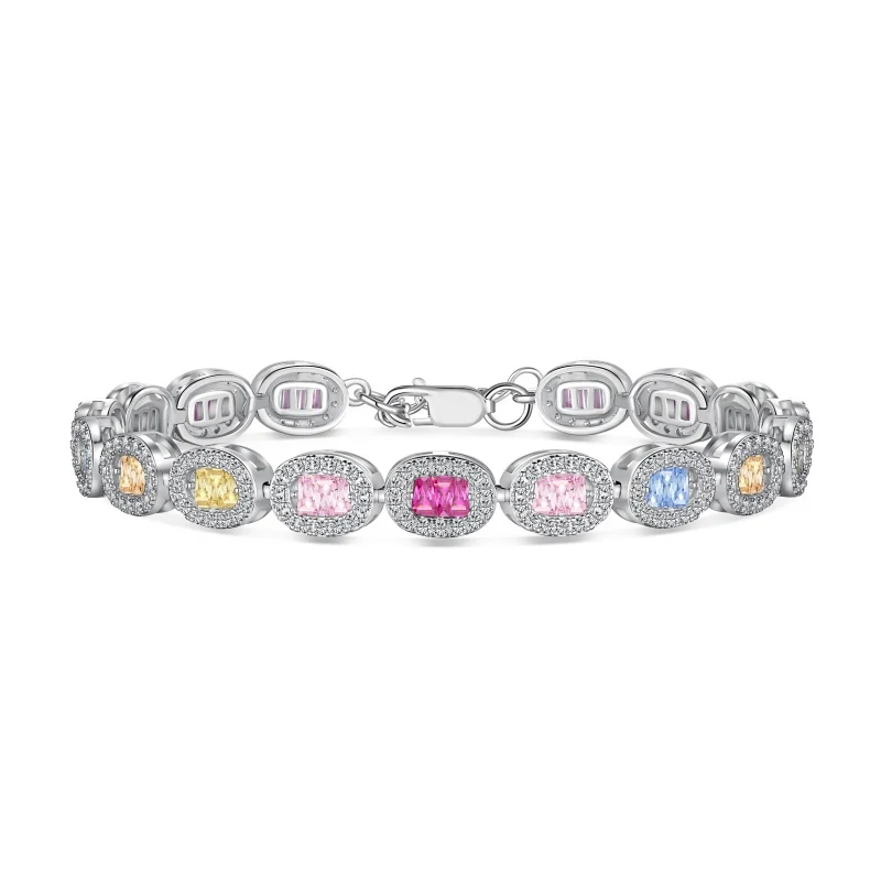 Fine Luxury Jewelry 925 Sterling Silver Colorful Zircon Oval Shape Tennis Bracelets For Women