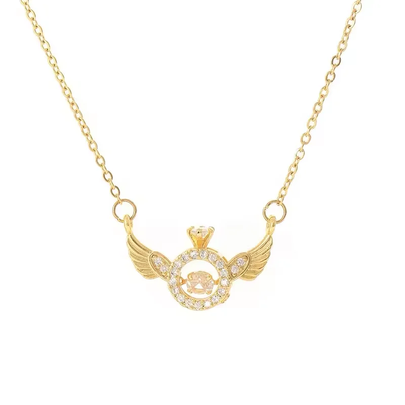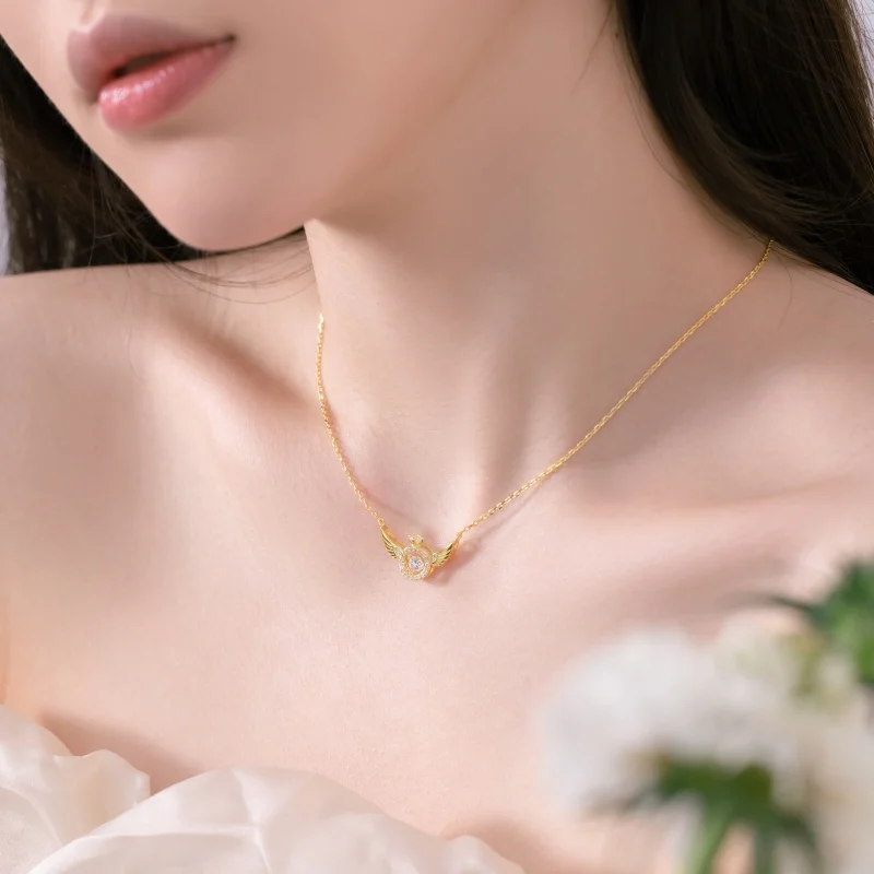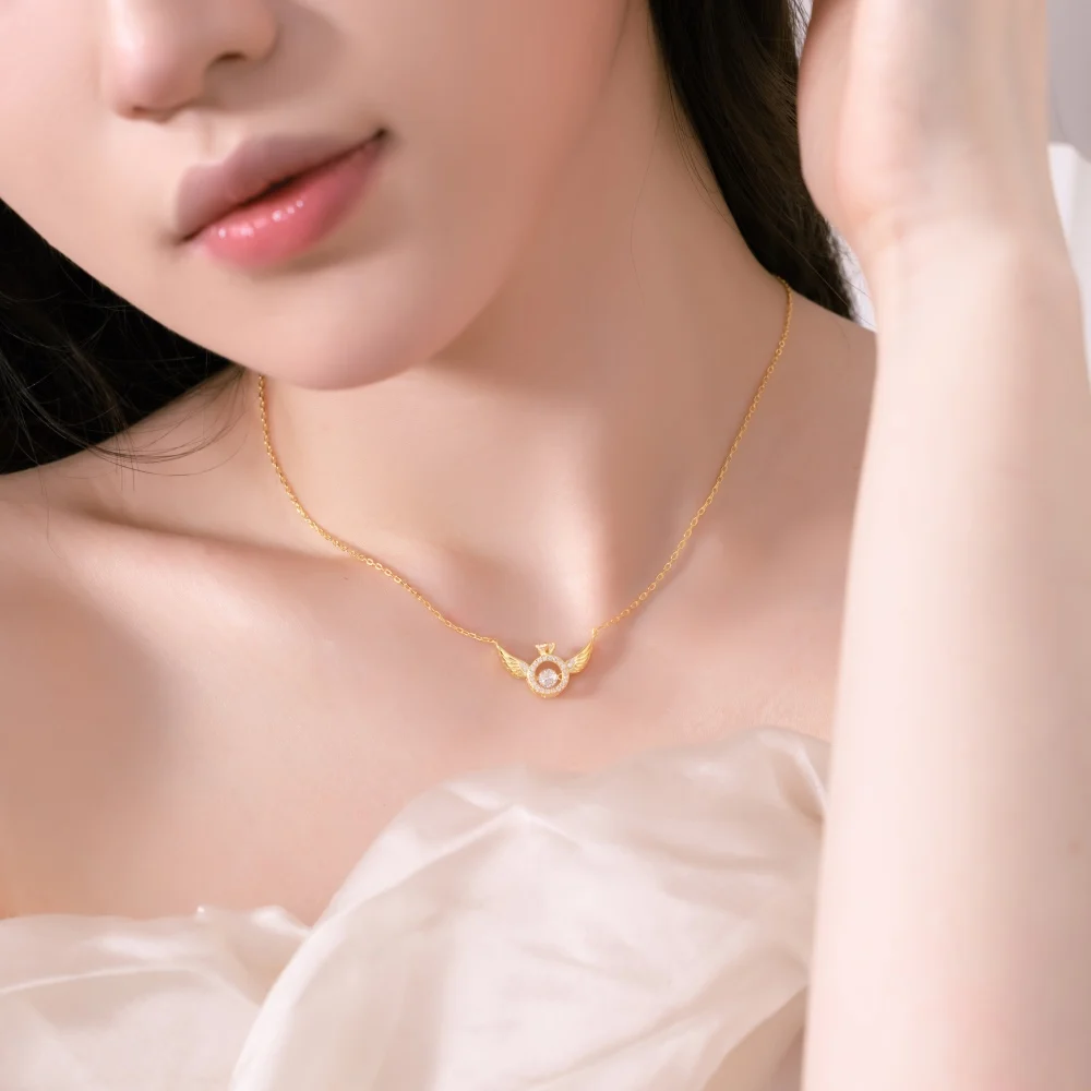 Exquisite Design 925 Sterling Silver Gold Plated Cubic Zircon Necklace Angel Wings Pendant Necklace