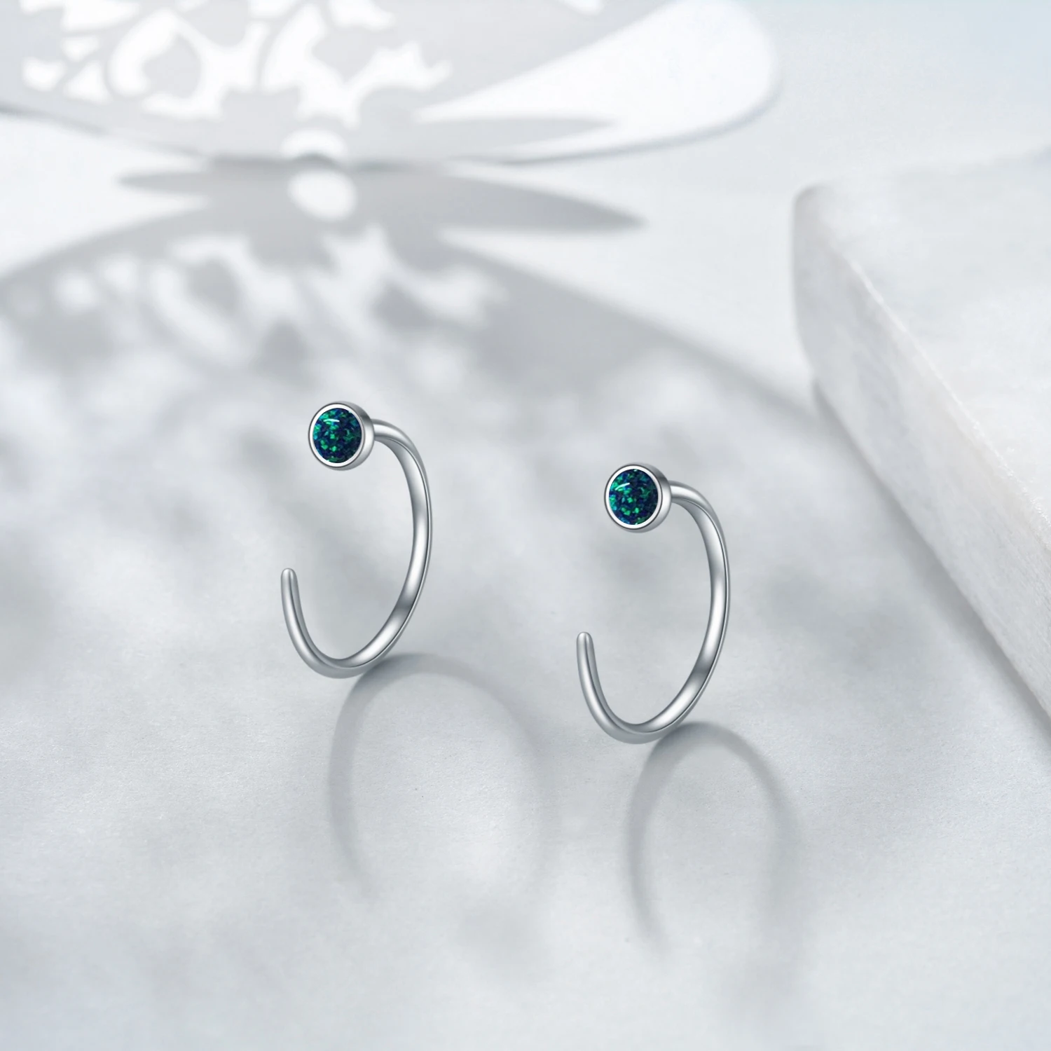 New Arrival 925 Sterling Silver Round Abalone Shell Ear Huggie Half Cuff Earrings For Women