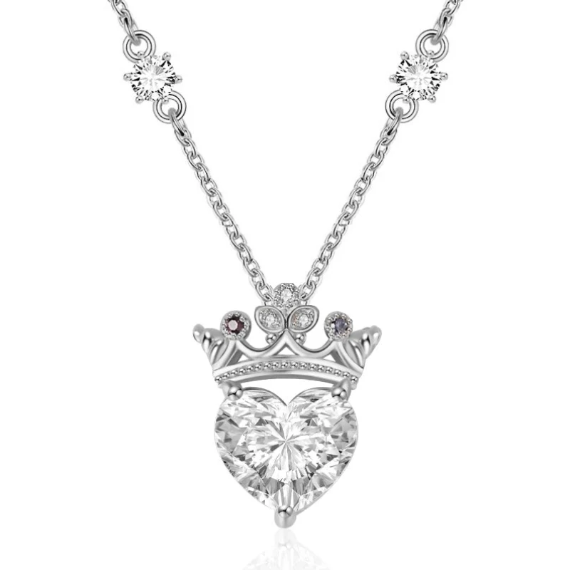 Name | Sterling Silver Sister Crystal Heart Crown Necklace |