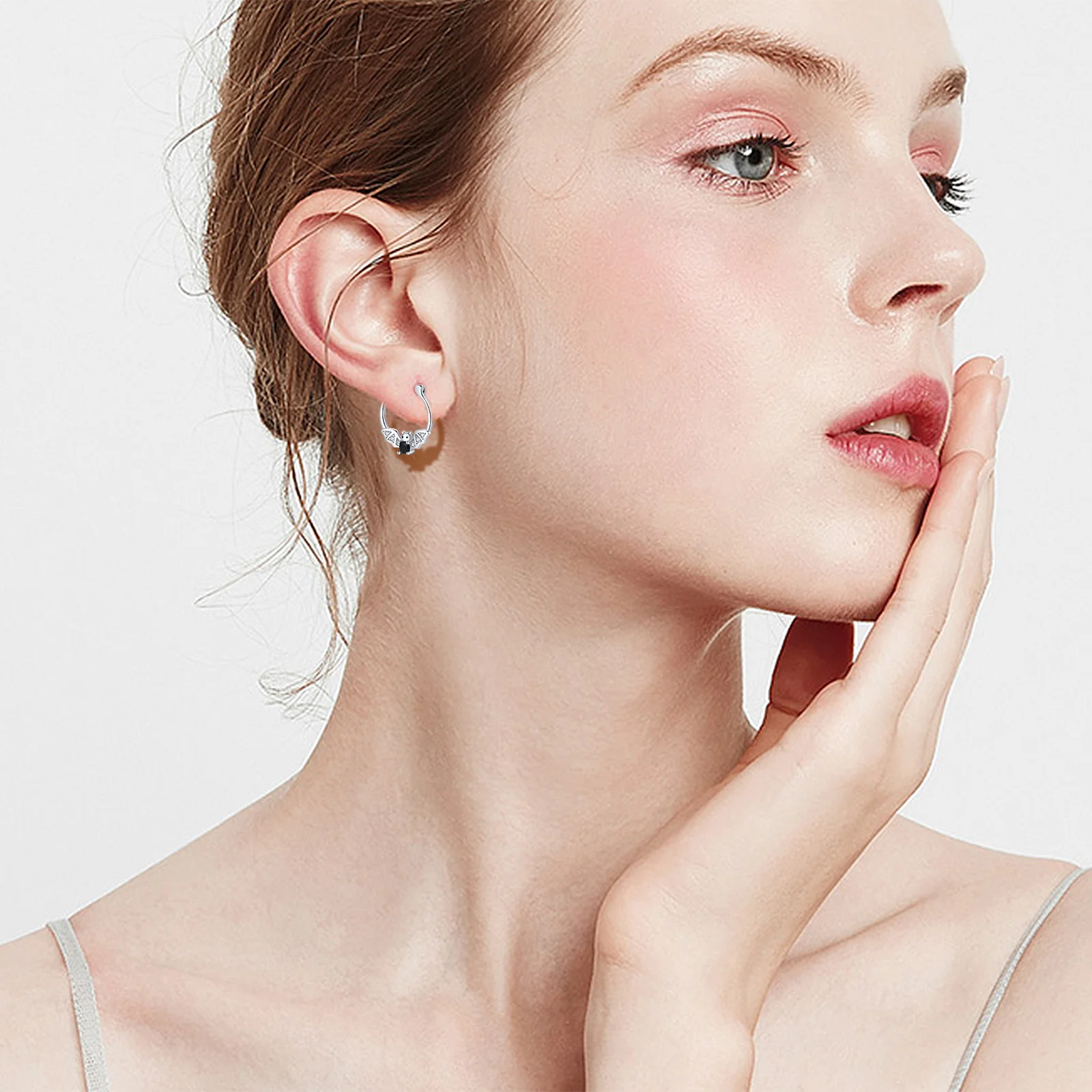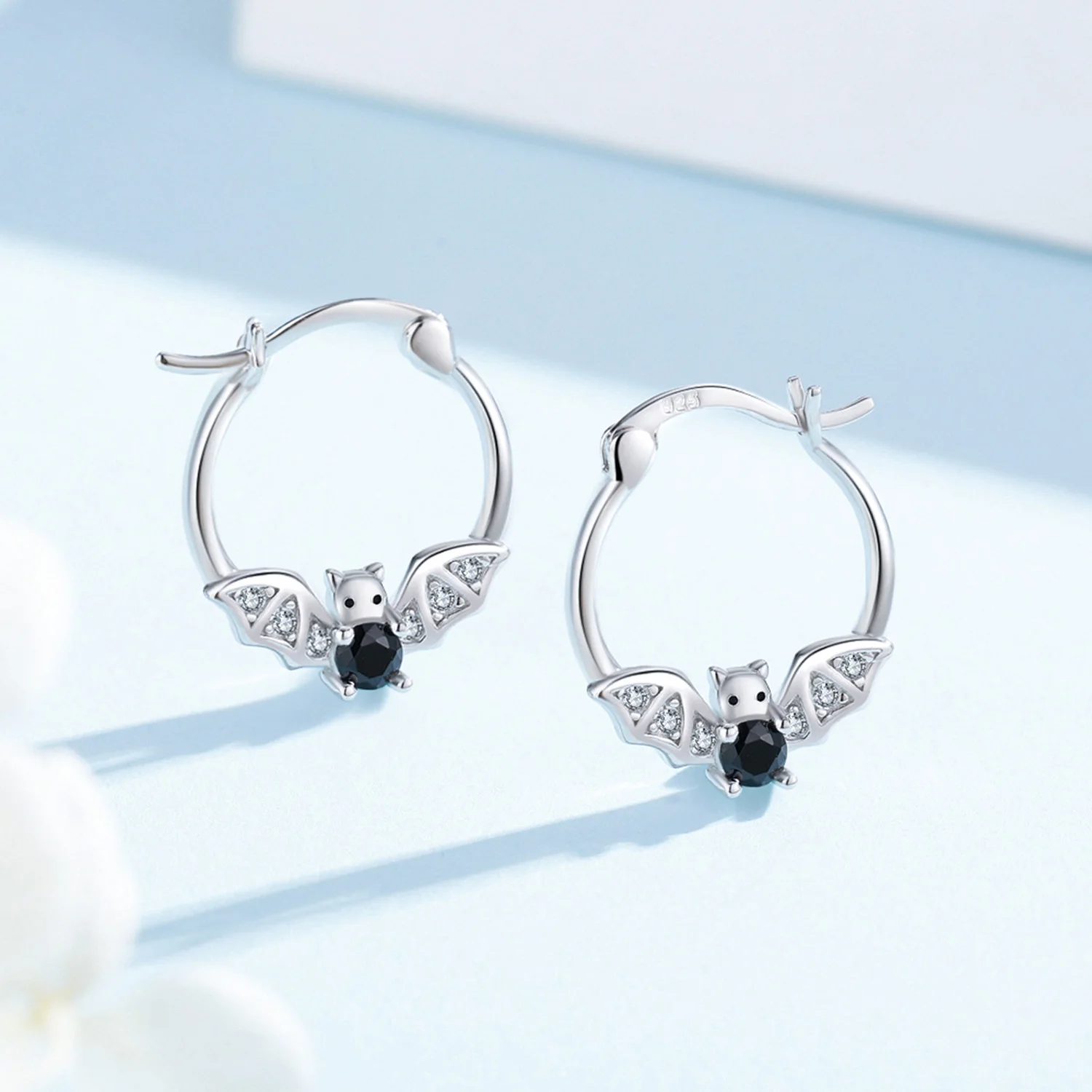 Animal Jewelry Hypoallergenic 925 Sterling Silver Cubic Zircon Bat Hoop Earrings For Women