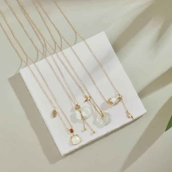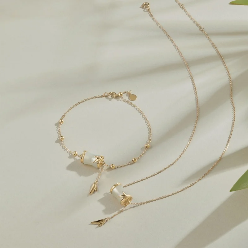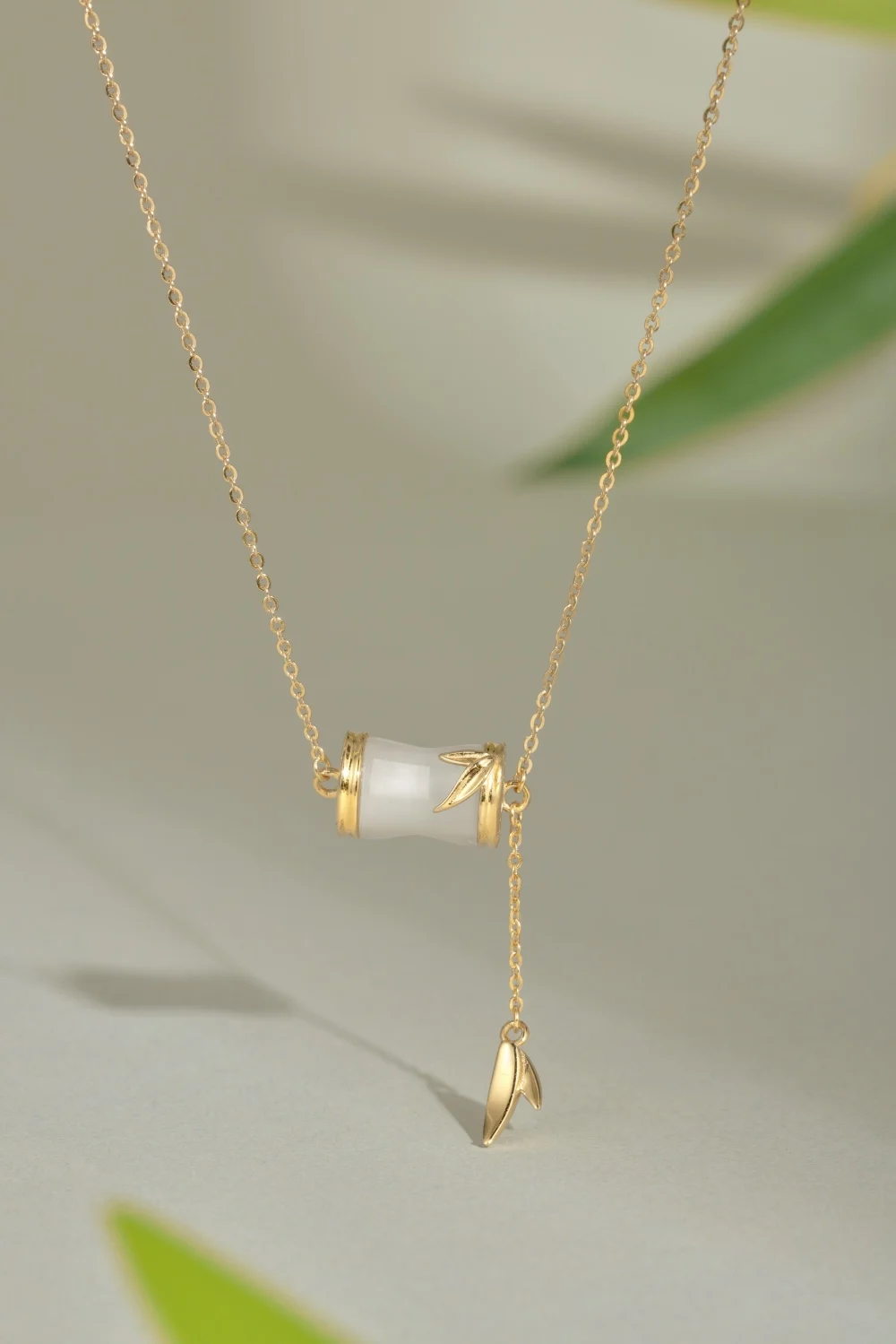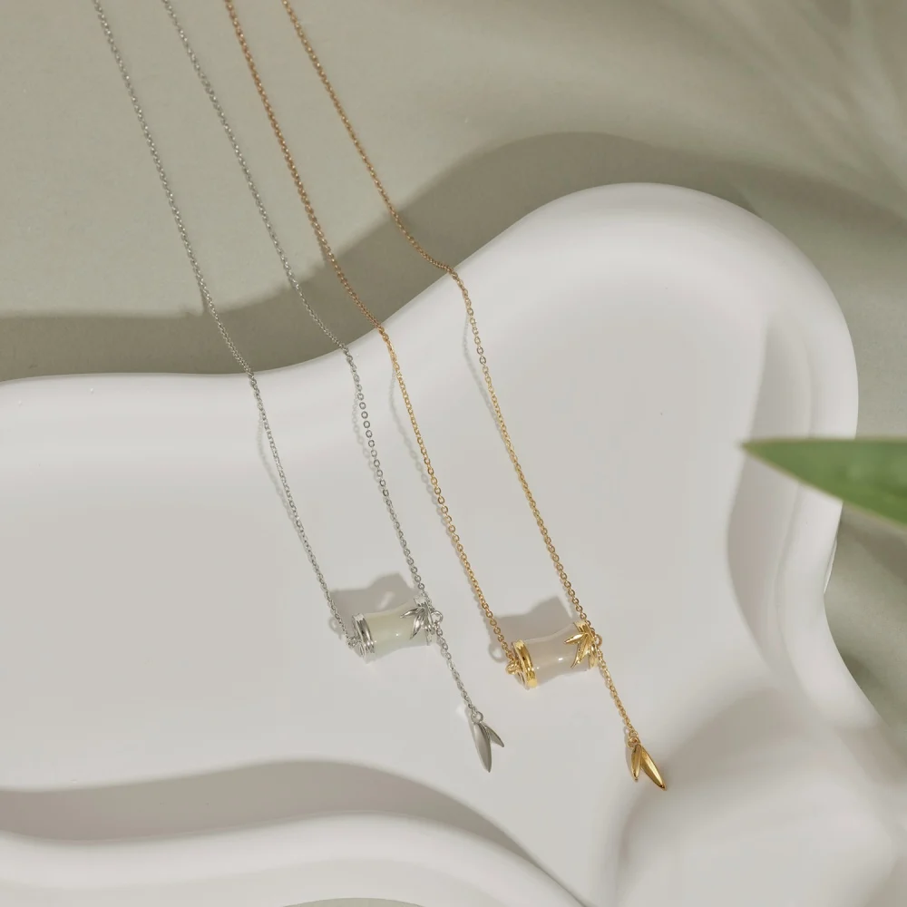 Fine Women Jewelry 925 Sterling Silver Gold Plated Natural Hetian Jade Bamboo Knot Necklace