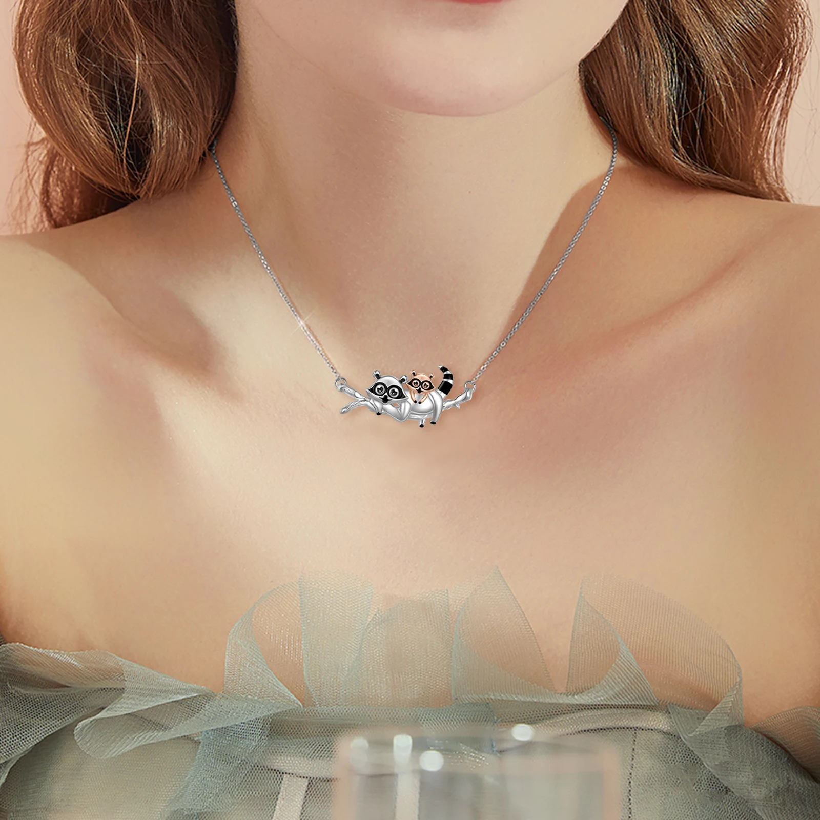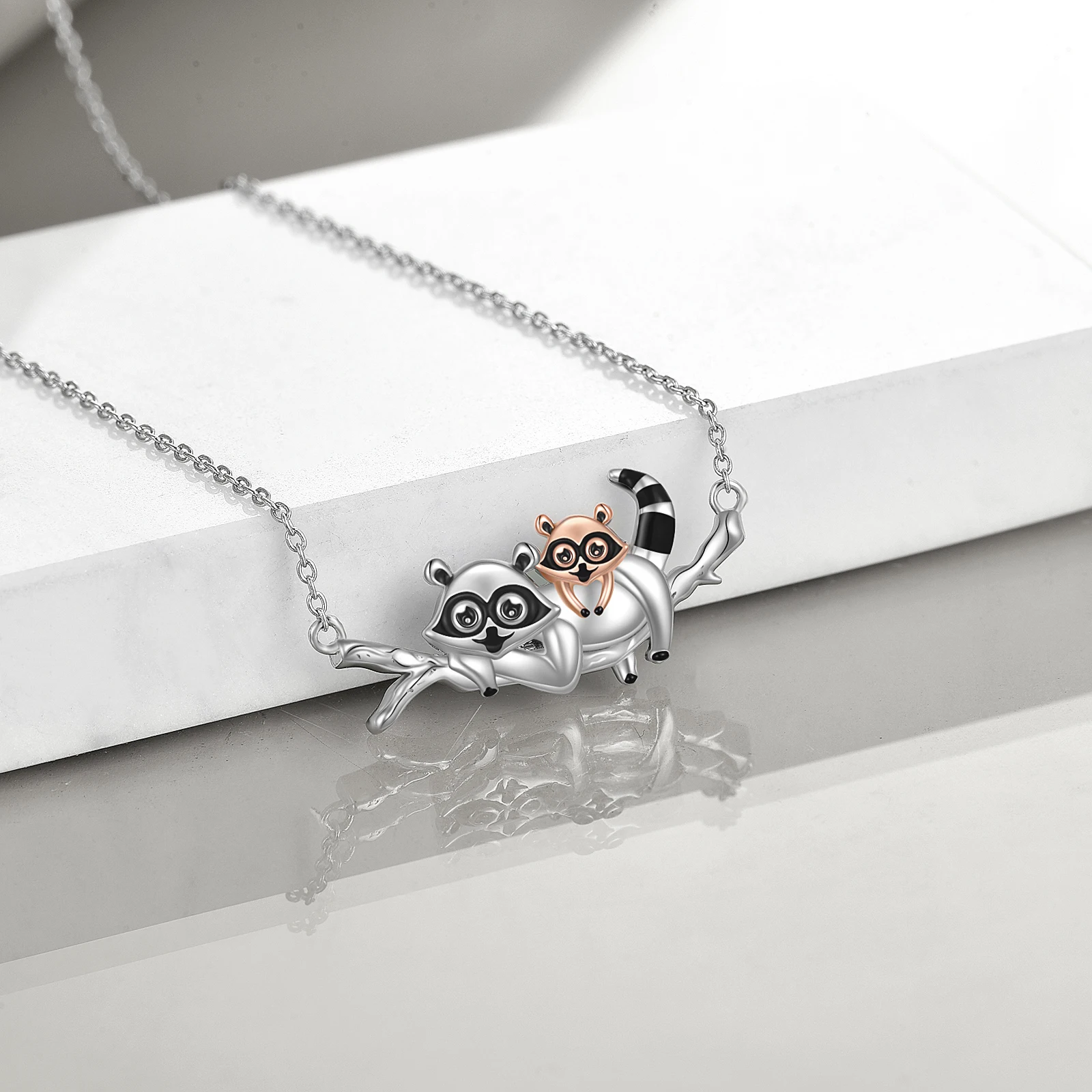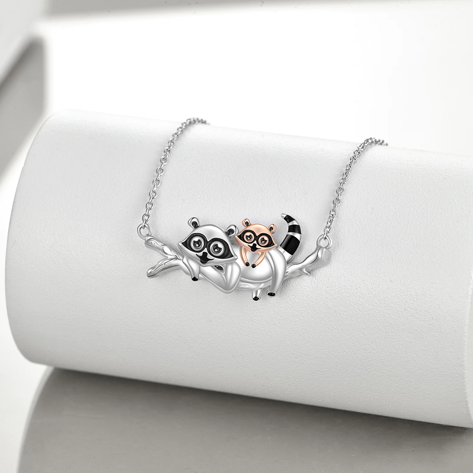 Name | Sterling Silver raccoon mother and baby on tree necklace |
