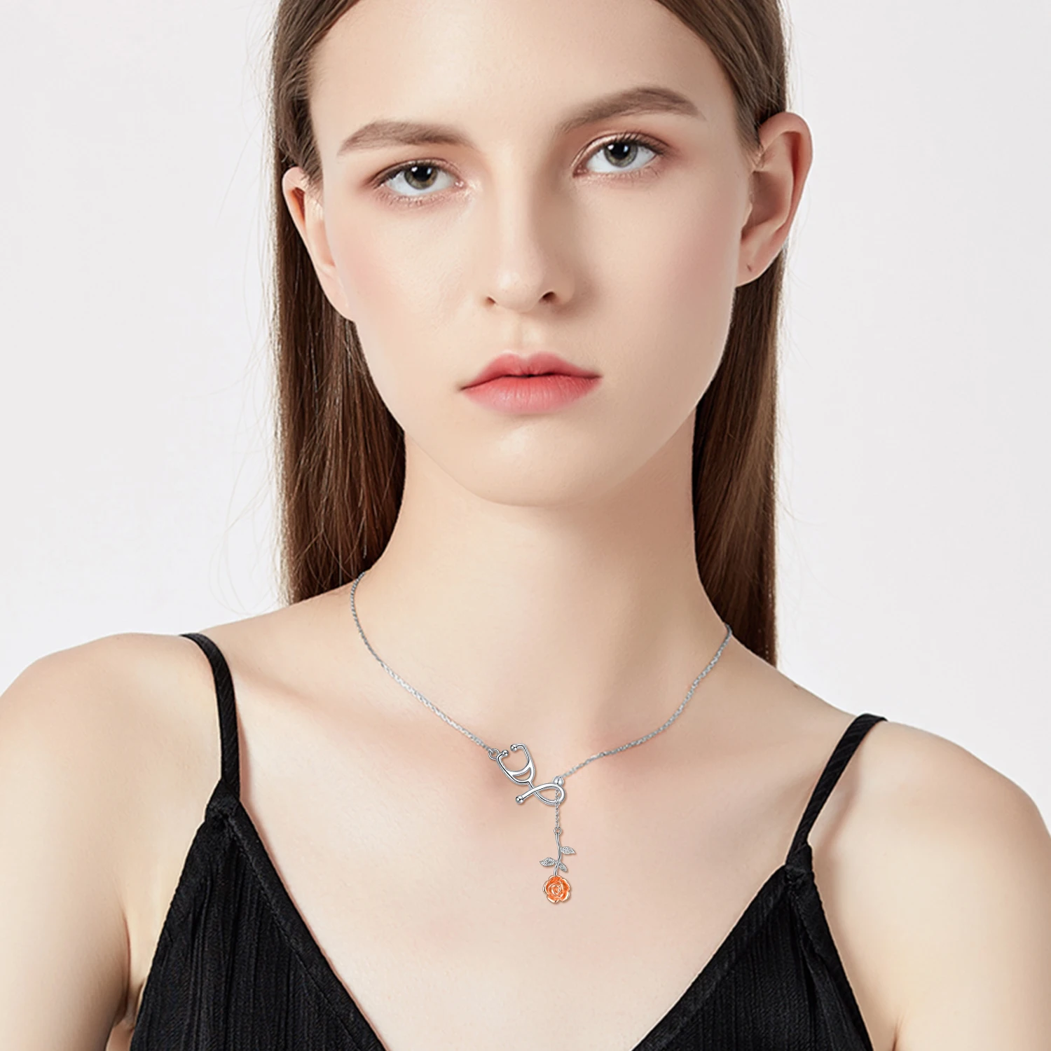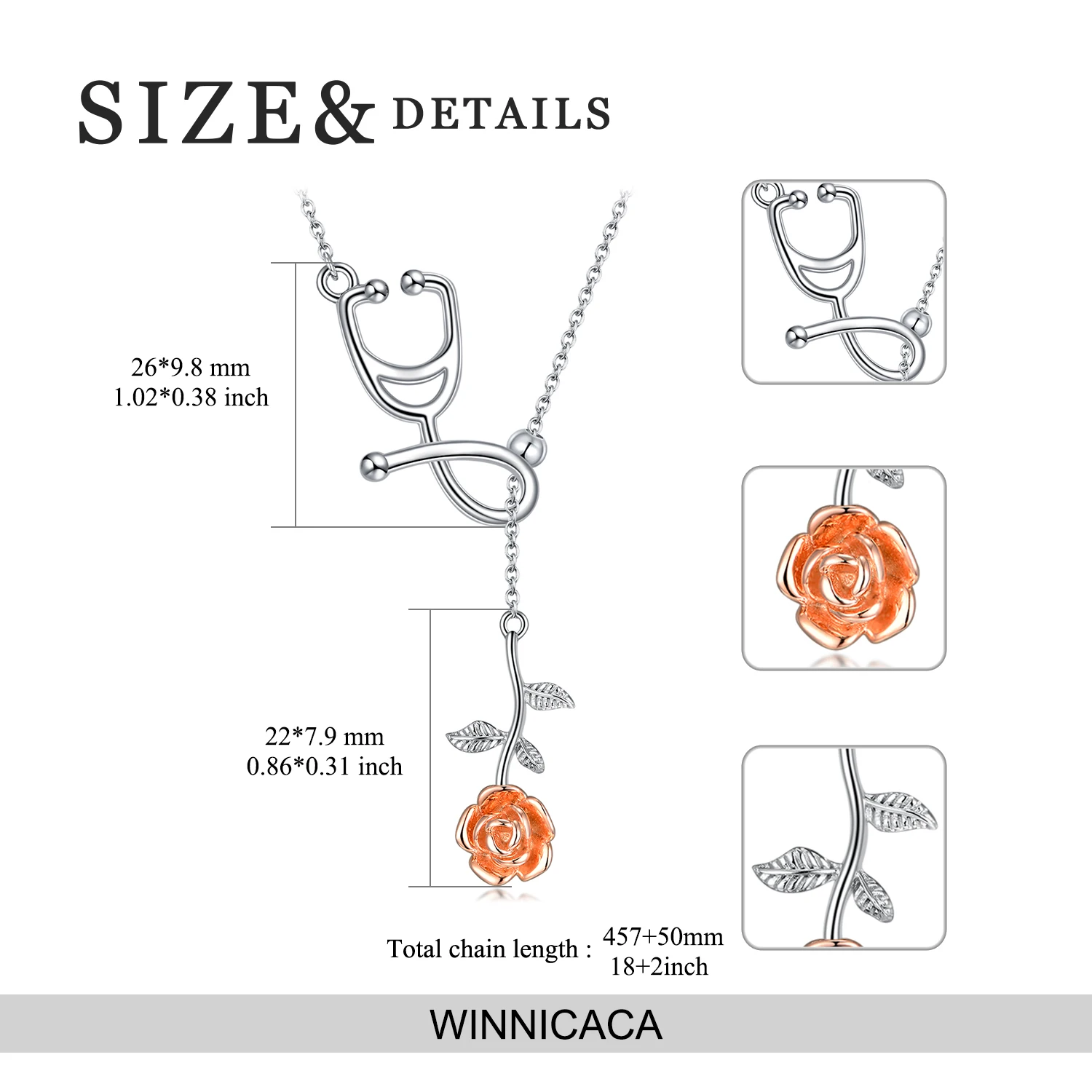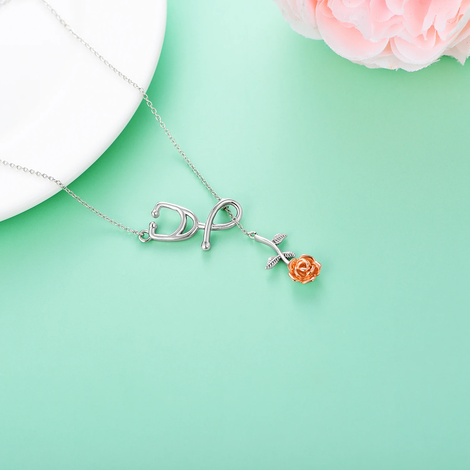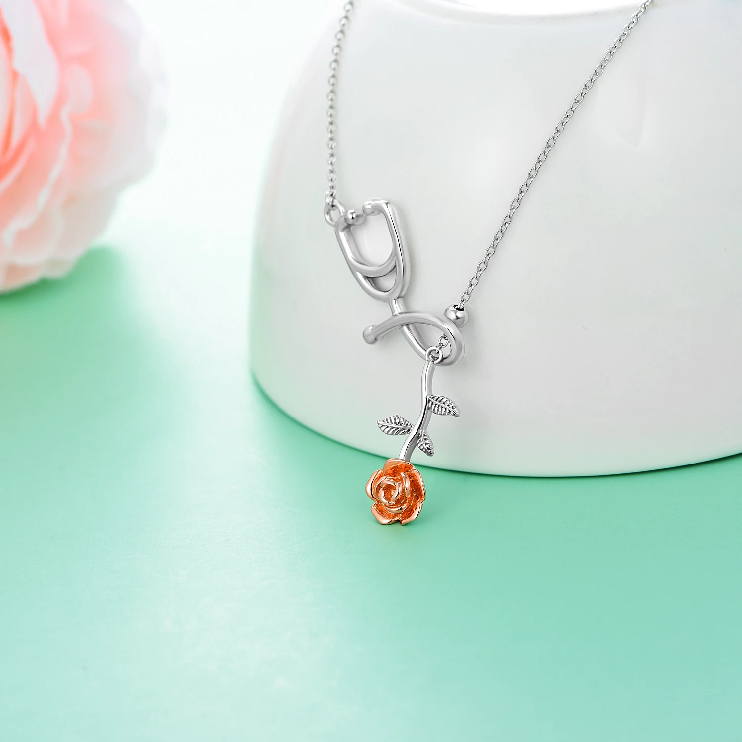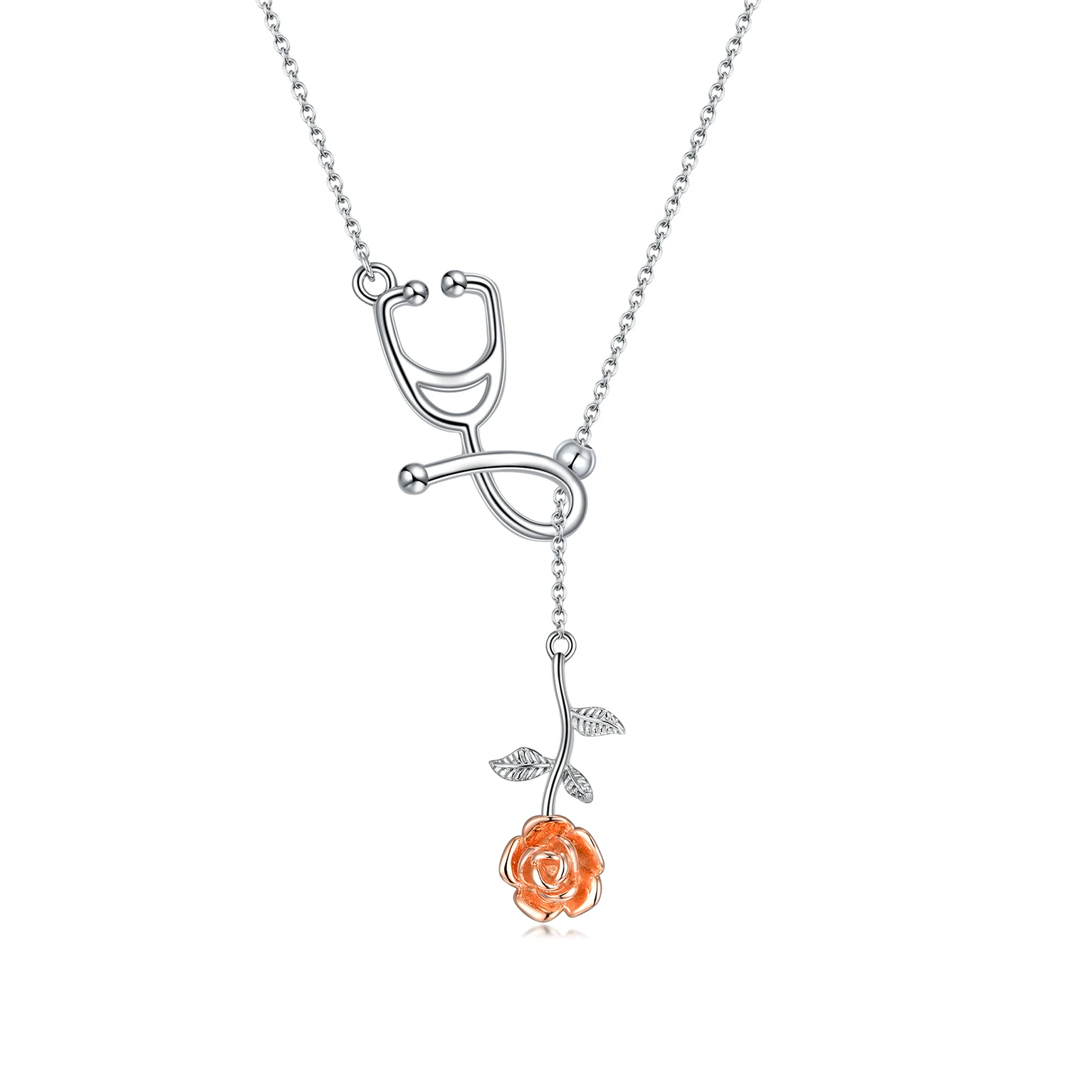 Factory Sale 925 Sterling Silver Jewelry Two Tone Stethoscope Rose Flower Necklace For Women