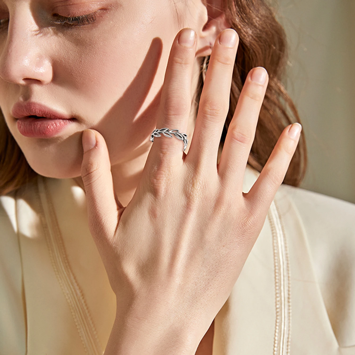 Wholesale High Quality 925 Sterling Silver Jewelry Hollow Leaf Open Ring