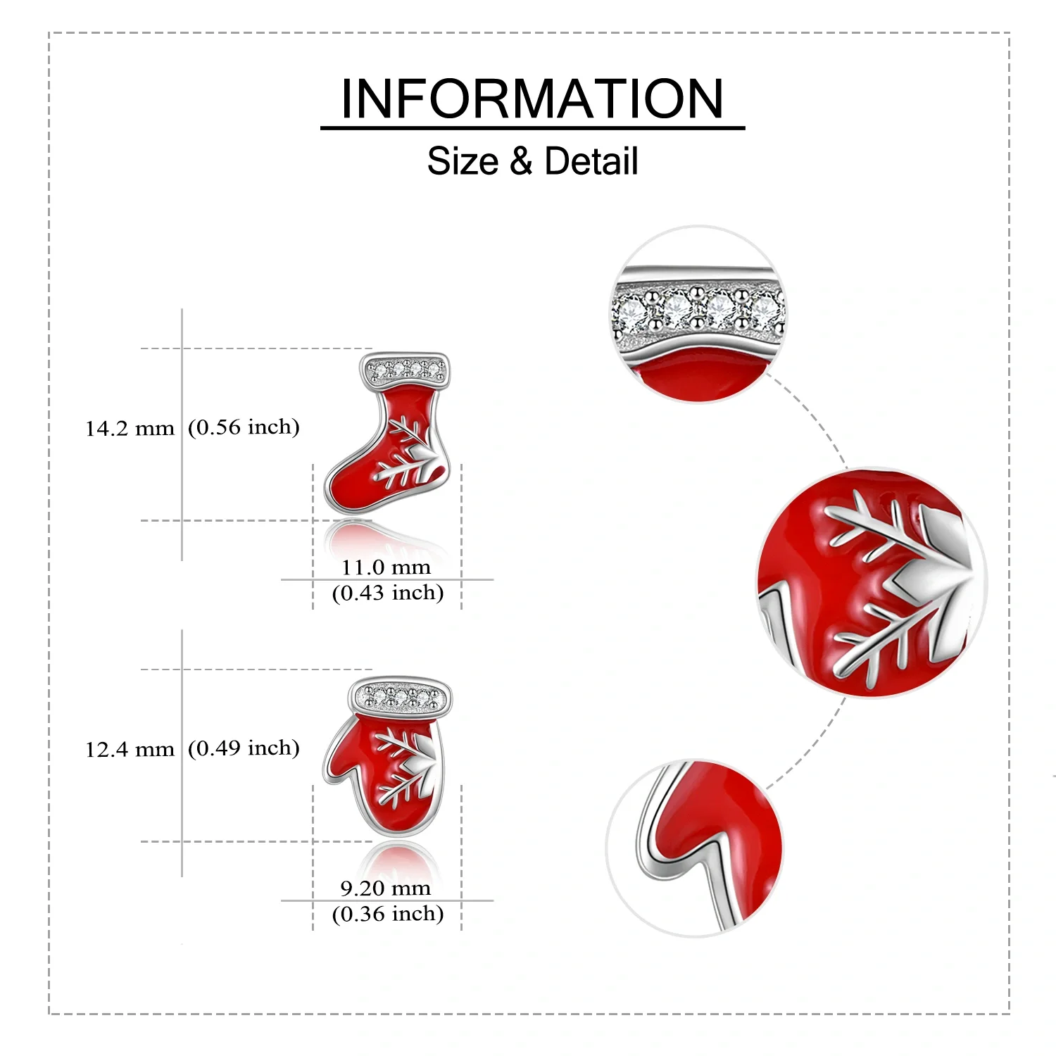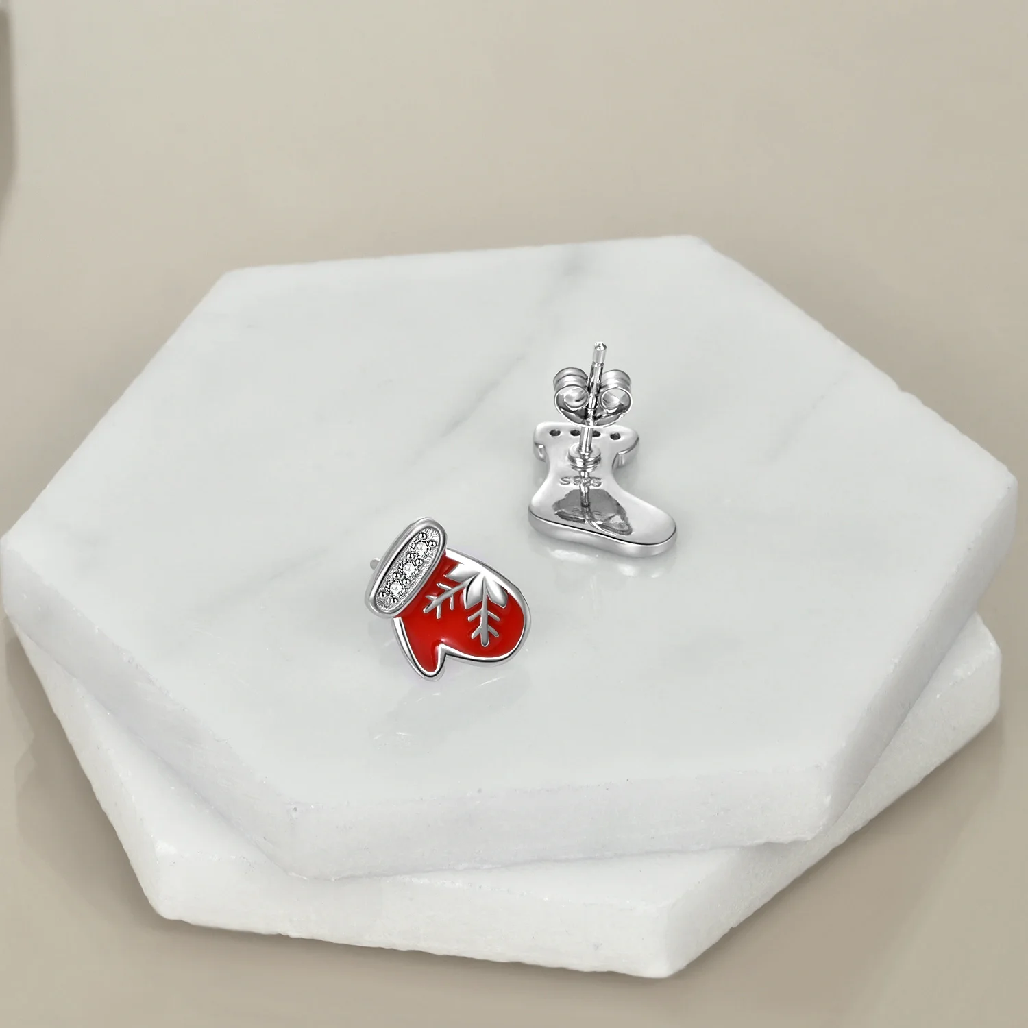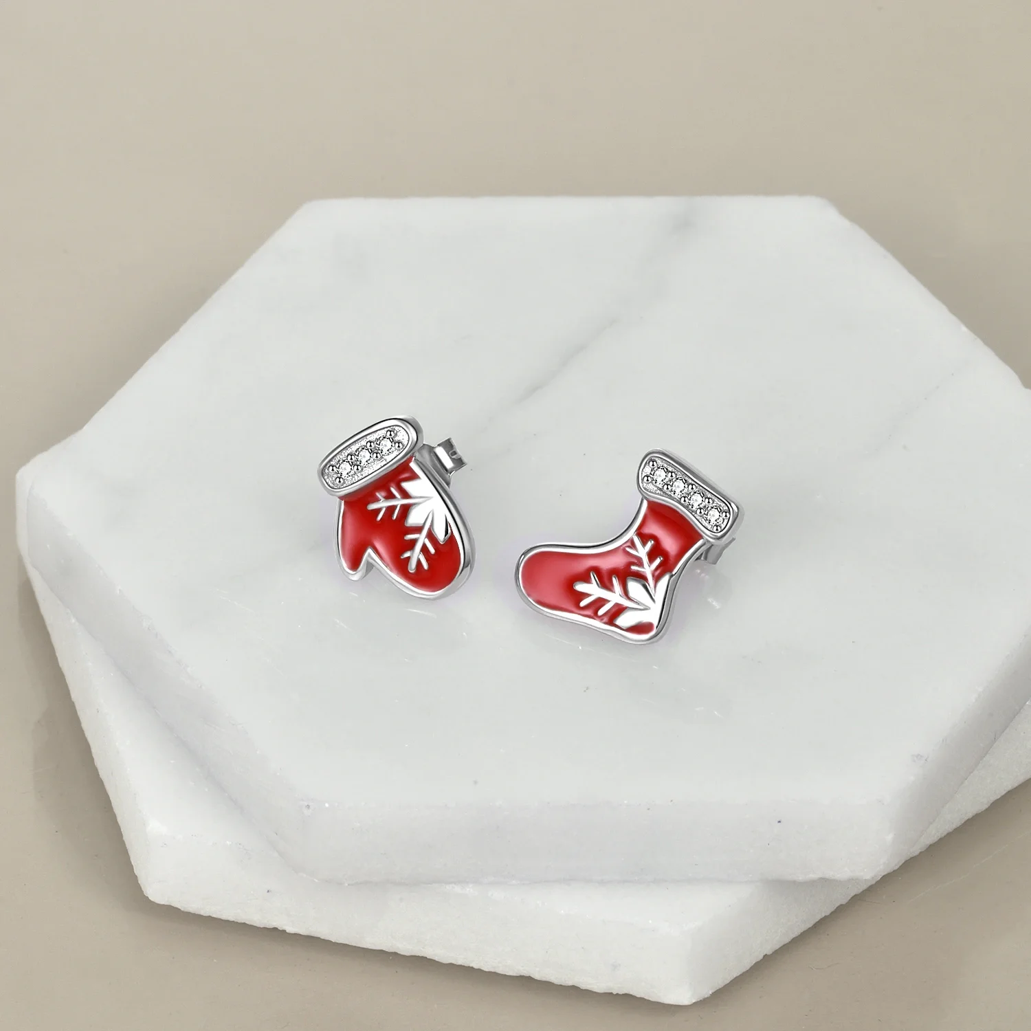 Christmas Jewelry 925 Sterling Silver Enamel Red Gloves And Socks Snowflake Stud Earrings For Women