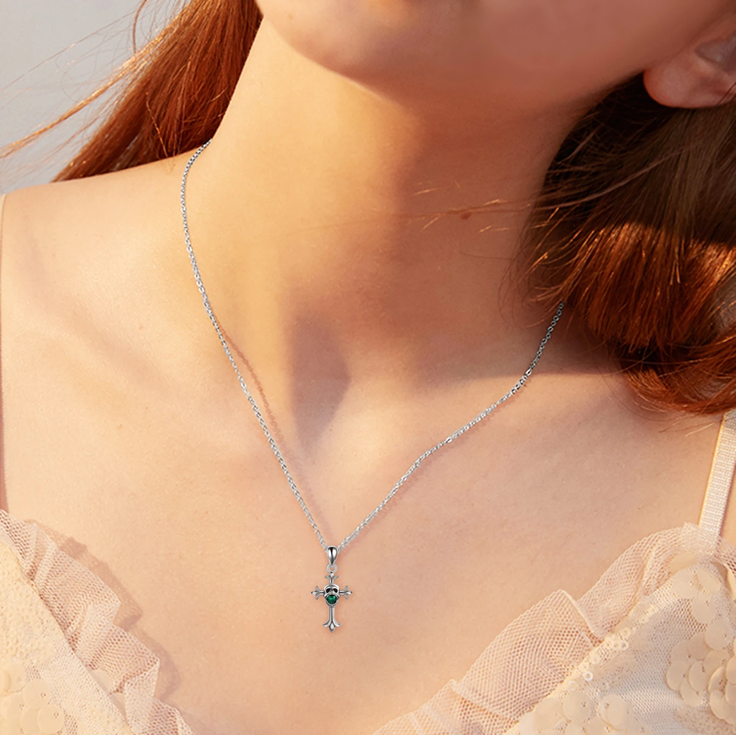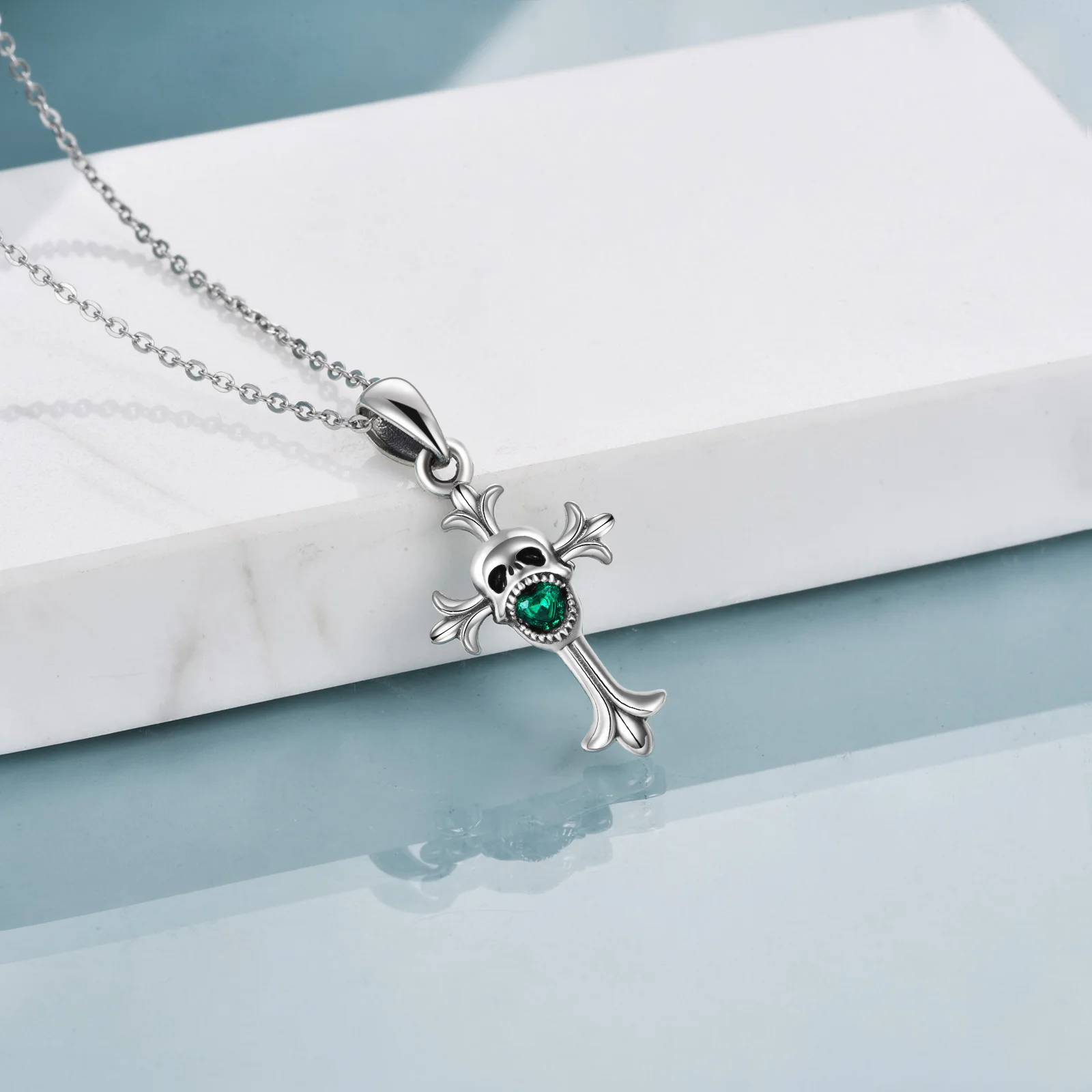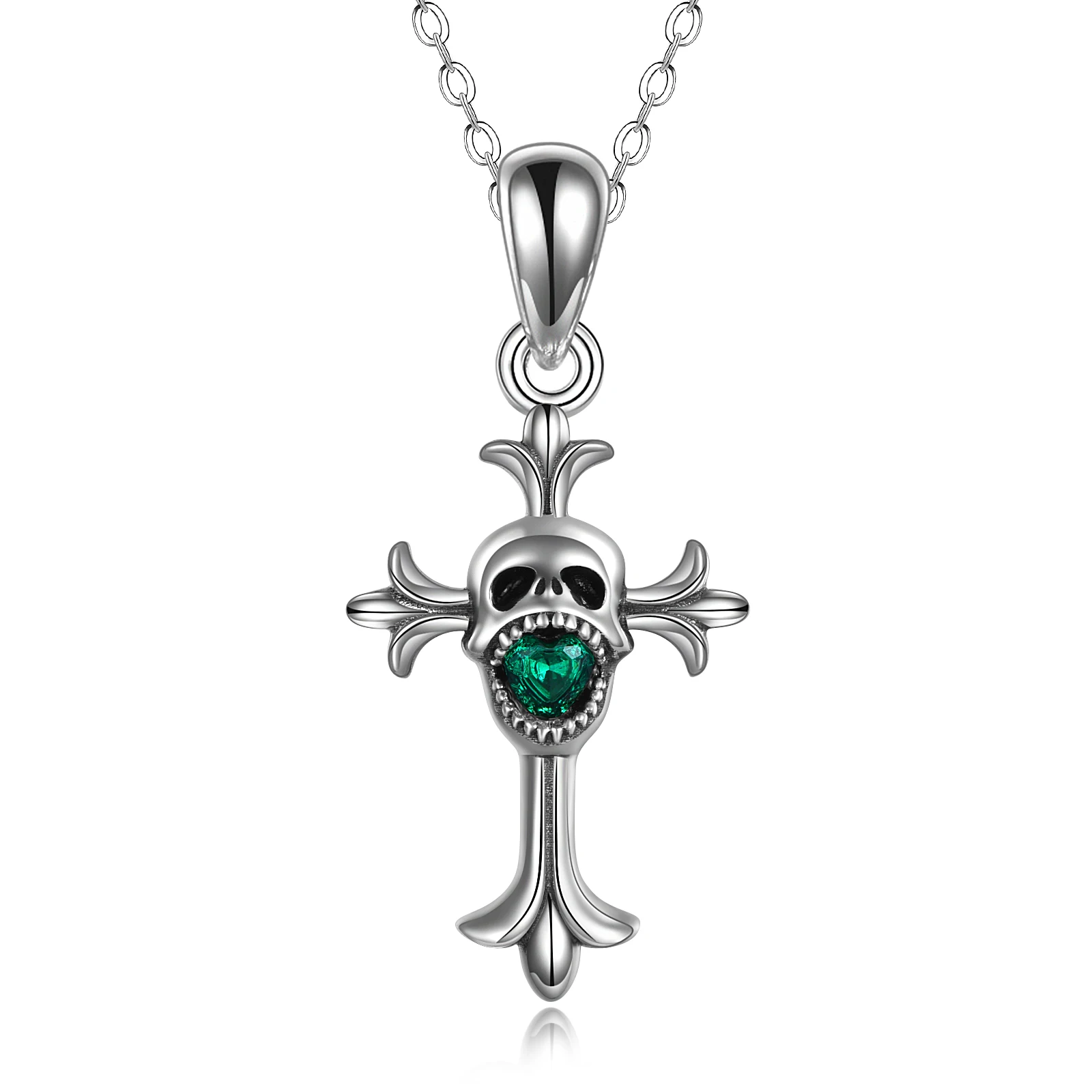 Fine Halloween Jewelry 925 Sterling Silver Rhodium Plated Crystal Cross Skull Necklace For Men